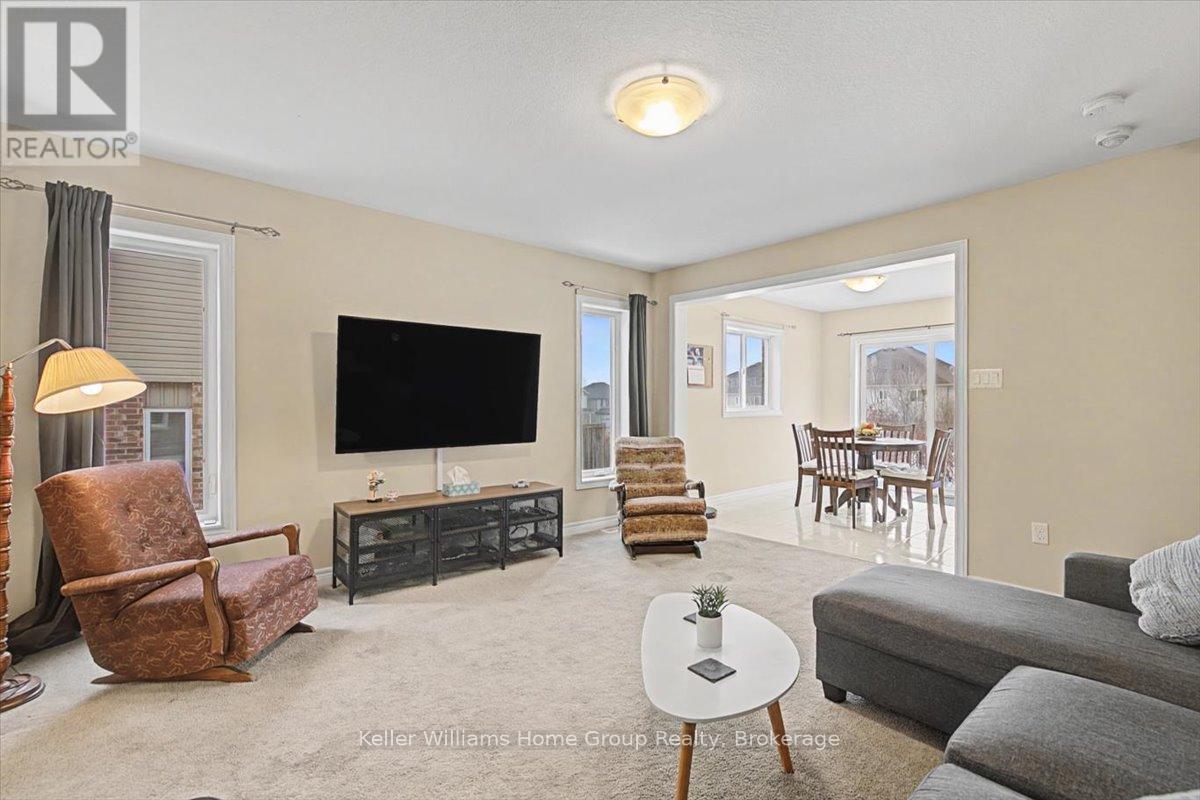 Beautifully designed 1745 Sq ft. modern 9 year old home. Only a 5 min drive to the University of Guelph. Built by the award winning developer Fusion Homes. This home is full of light, the eat-in kitchen walks out to a large back yard looking over green space. The master bedroom features a large ensuite with soaker tub, walk in shower and 2 walk in closets! Additionally, there are two more spacious bedrooms and a full unfinished basement. Main floor laundry with mudroom access to the garage. This freehold home is only linked by the garage on one side. Once you see this one, you will want to call this your next home! (id:64974)