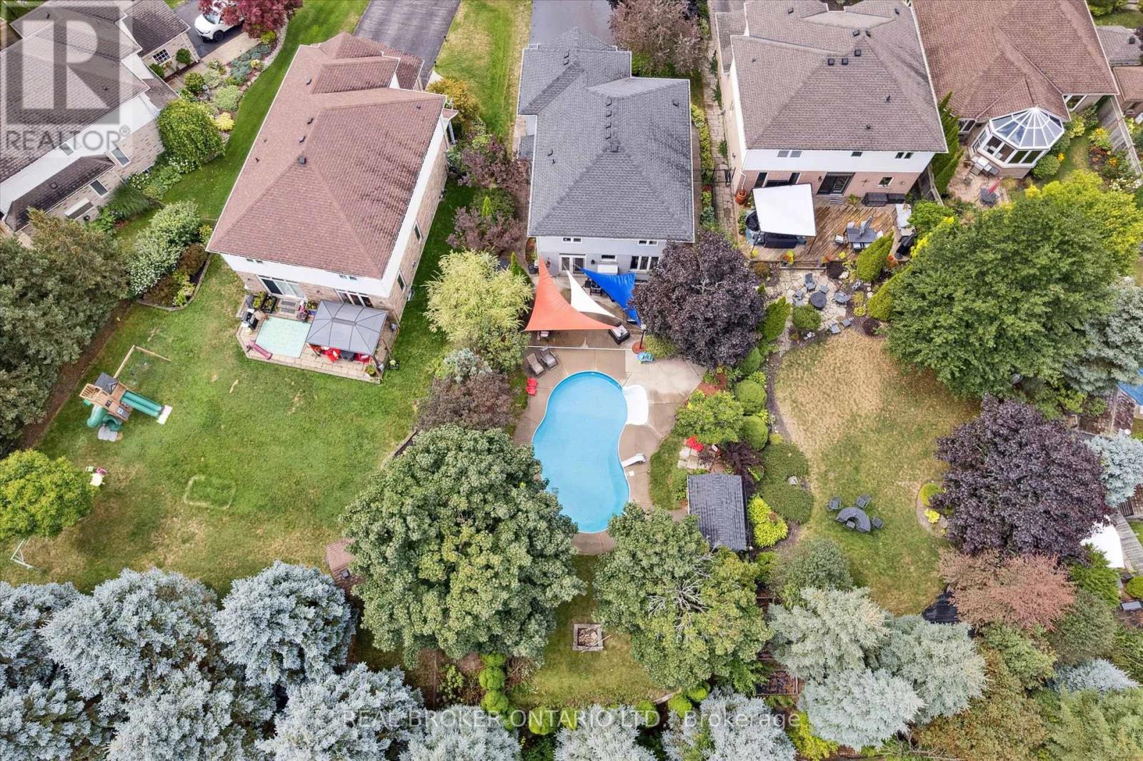 Welcome to this beautifully maintained two storey home, quietly tucked away on a sought after court in Kitchener. From the moment you step inside, you are greeted by a spacious, well designed layout with 9 foot ceilings that enhance the sense of openness on the main floor.The kitchen is both functional and inviting, offering generous counter space, ample cabinetry, and a new stovetop. It is perfectly suited for everyday living as well as hosting family and friends.Upstairs, you will find four well proportioned bedrooms and two full bathrooms. The primary suite features a private ensuite along with a stylish feature wall, creating a comfortable retreat. Two additional bedrooms are equipped with custom closet organizers, adding practical storage and convenience.The finished basement offers excellent flexibility for in law or multi generational living. With a separate entrance, second kitchen complete with a new stove and fridge, a bedroom, and a comfortable living area, it provides a self contained space with strong potential.Step outside to a true backyard retreat. The inground heated saltwater pool has been thoughtfully updated with a new liner in 2025, pump in 2022, heater in 2023, and filter in 2025. A pool house with a brand new roof in 2025 complements the space, while concrete walkways run along both sides of the home. Although the hot tub has been removed, existing wiring remains in place for a future installation. Mature landscaping and well maintained gardens complete this private, resort like setting.Additional upgrades include topped up blown in insulation in 2022, improving comfort and energy efficiency year round. Ideally located close to shopping, schools, and quick access to the 401, this home is well suited for both families and commuters.This property delivers a strong combination of space, thoughtful updates, and exceptional outdoor living, ready for its next owners to move in and enjoy. (id:64974)