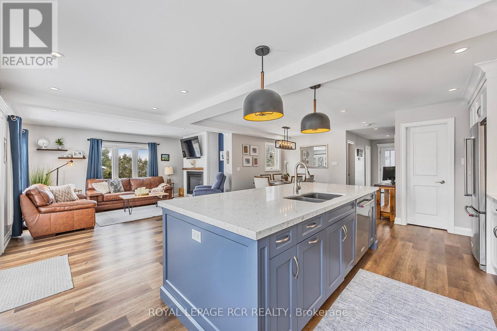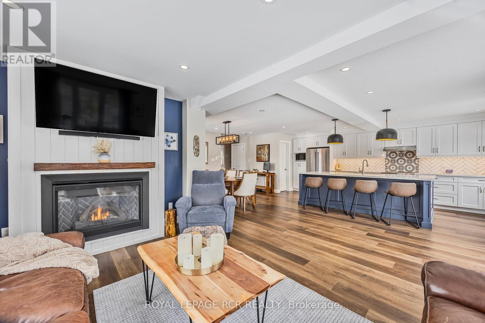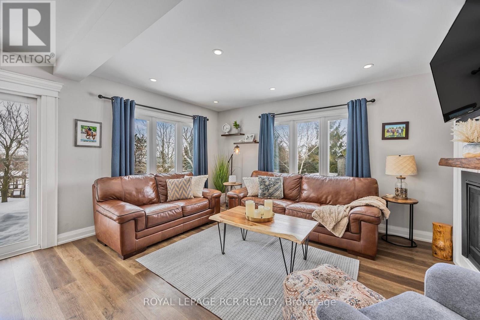 Tucked into the heart of the charming hamlet of Waldemar in the highly sought-after community of Amaranth-just 12 minutes west of Orangeville-this exceptional family home offers the rare combination of space, serenity, and refined living. Set on a pool-size lot just over half an acre, this property invites a lifestyle where comfort, connection, and nature come together effortlessly. Extensively updated with a substantial addition completed in 2024, the home welcomes you with a spacious foyer leading to a convenient laundry room and an elegant 2-piece powder room. The open-concept living and dining area is designed for both relaxed family living At the heart of the home, the chef-inspired kitchen is a true showpiece-anchored by a striking 8-foot quartz island, custom cabinetry, and brand-new KitchenAid stainless steel appliances (2024). With an undermount sink, timeless backsplash, and walk-in pantry, this space was made for everything from quiet morning coffees to lively evenings with friends. and unforgettable gatherings, featuring a cozy gas fireplace, soft pot lighting, and an inviting, airy flow. The primary suite is a peaceful retreat, offering dual closets and a spa-like ensuite complete with heated floors, a glass walk-in shower, double vanity. Two additional generously sized bedrooms and a beautifully renovated main bath complete the upper level, providing space for family and guests alike. The mostly finished basement adds flexible living space for movie nights, a home gym, or play area, while a generous 350-square-foot crawl space ensures exceptional storage. Step outside to your own private outdoor escape-fenced along three-quarters of the perimeter and featuring a professionally installed invisible dog fence system. Whether you envision summer days relaxing or playing corn hole, evening campfires, or watching the Breathtaking sun sets over open skies, this backyard was designed for making memories. (id:64974)