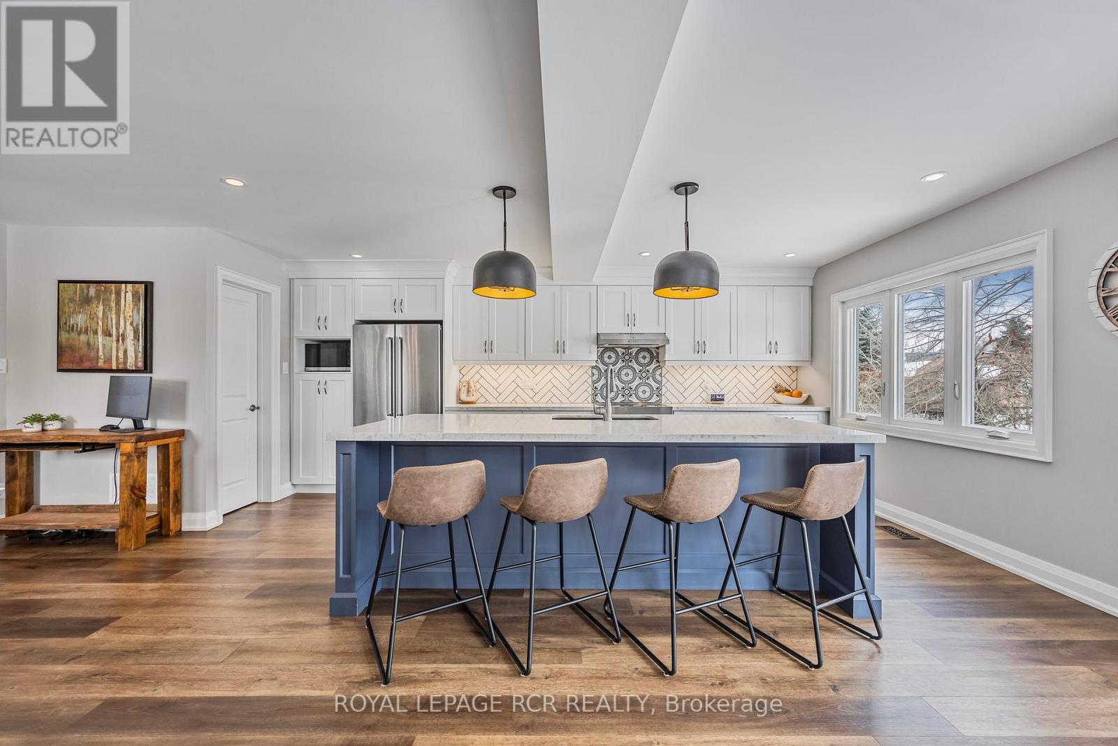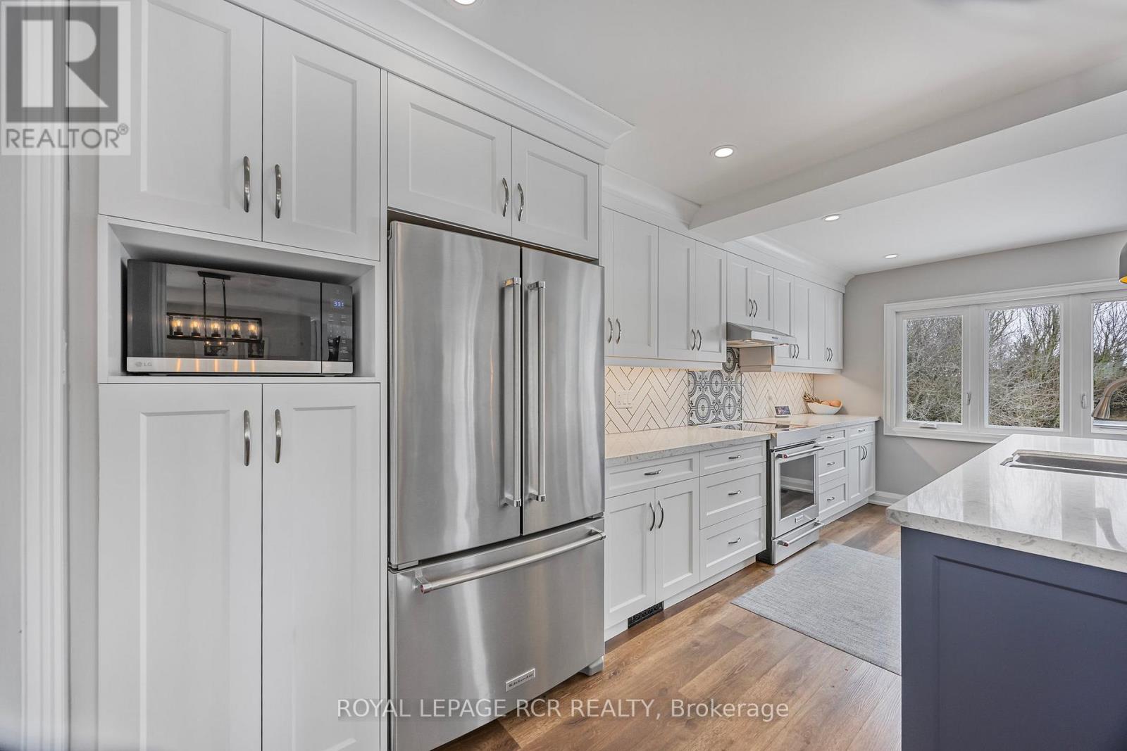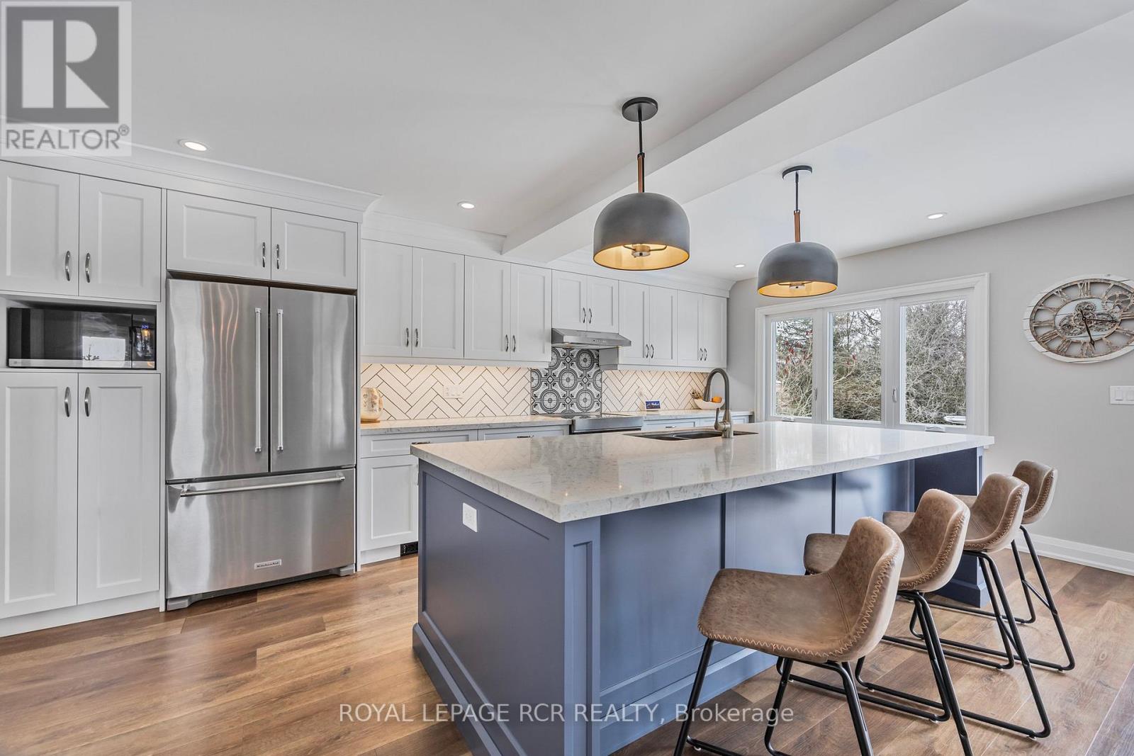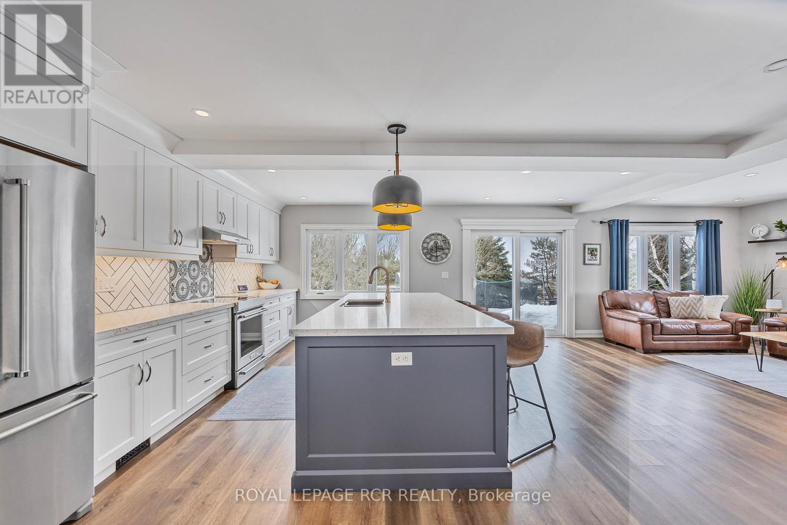 Tucked into the heart of the charming hamlet of Waldemar in the highly sought-after community of Amaranth-just 12 minutes west of Orangeville-this exceptional family home offers the rare combination of space, serenity, and refined living. Set on a pool-size lot just over half an acre, this property invites a lifestyle where comfort, connection, and nature come together effortlessly. Extensively updated with a substantial addition completed in 2024, the home welcomes you with a spacious foyer leading to a convenient laundry room and an elegant 2-piece powder room. The open-concept living and dining area is designed for both relaxed family living At the heart of the home, the chef-inspired kitchen is a true showpiece-anchored by a striking 8-foot quartz island, custom cabinetry, and brand-new KitchenAid stainless steel appliances (2024). With an undermount sink, timeless backsplash, and walk-in pantry, this space was made for everything from quiet morning coffees to lively evenings with friends. and unforgettable gatherings, featuring a cozy gas fireplace, soft pot lighting, and an inviting, airy flow. The primary suite is a peaceful retreat, offering dual closets and a spa-like ensuite complete with heated floors, a glass walk-in shower, double vanity. Two additional generously sized bedrooms and a beautifully renovated main bath complete the upper level, providing space for family and guests alike. The mostly finished basement adds flexible living space for movie nights, a home gym, or play area, while a generous 350-square-foot crawl space ensures exceptional storage. Step outside to your own private outdoor escape-fenced along three-quarters of the perimeter and featuring a professionally installed invisible dog fence system. Whether you envision summer days relaxing or playing corn hole, evening campfires, or watching the Breathtaking sun sets over open skies, this backyard was designed for making memories. (id:64974)