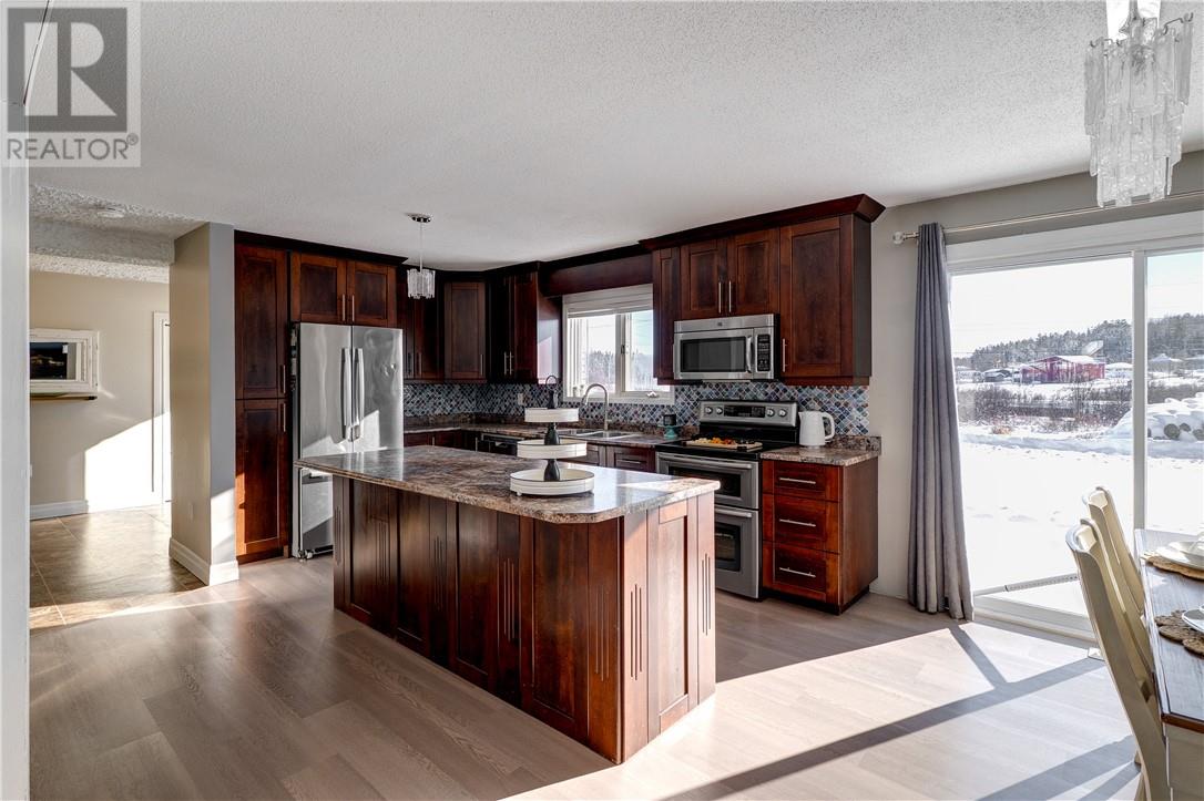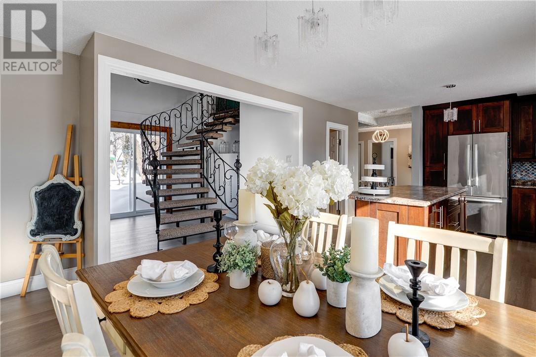 Located in the welcoming community of Hagar, this spacious 5-bedroom, 2-bathroom home offers exceptional living space on a large lot—ideal for families, multi-generational living, or those needing room to grow. The main floor features a generous kitchen that flows into the dining area and cozy living room, along with two bedrooms and a full bathroom. A standout feature of the home is its two grand staircases, custom-built in British Columbia and shipped by train—an impressive and rare architectural detail. Also on the main level is a separate entrance to a flexible space previously used for commercial purposes, offering excellent potential for a bachelor apartment, home business, or work-from-home setup. Up one staircase are three additional bedrooms. The oversized primary bedroom includes dual closets, potential for an ensuite, and patio doors leading to a private balcony—perfect for morning coffee or evening relaxation. The second staircase leads to the spacious lower level with finished exterior walls and ready for completion. Whether you envision a family room, home gym, extra bedrooms, or workshop, this partially finished basement is ready for your ideas. Outside, enjoy a large yard with plenty of space to relax and entertain, a front deck, newer swing set, and a large shed for storage or hobbies. Additional highlights include a new propane furnace and A/C (2023), plus newer flooring and fixtures throughout. A versatile property with space, character, and opportunity—call today for your private viewing. (id:64974)