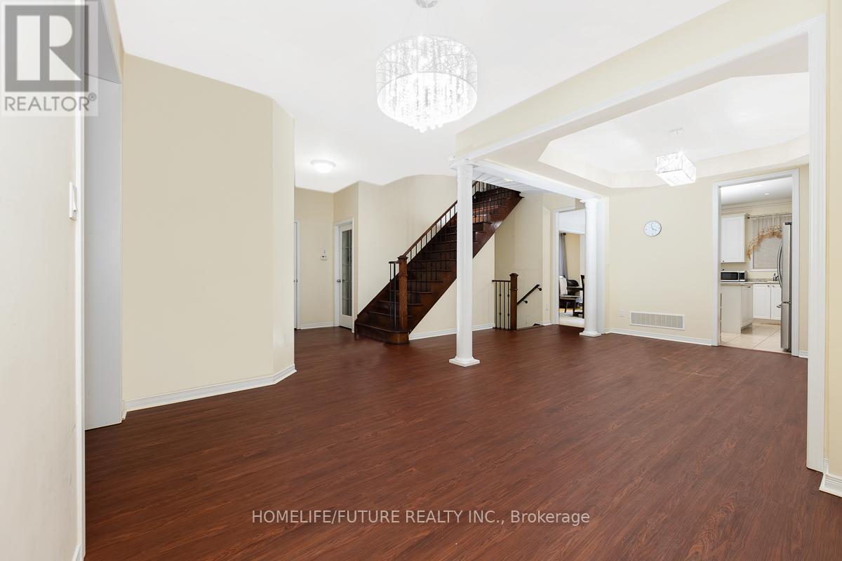 Bright and spacious 4+3 bedroom, 5 bathroom detached home with finished basement and no sidewalk. Main floor features include crown molding and pot lights in the family room and kitchen, stainless steel kitchen appliances, tankless hot water system, nine-foot smooth ceilings, kitchen with breakfast area overlooking the backyard, and a separate main-floor study/office. The home offers two bedrooms with private ensuites and two bedrooms connected by a Jack-and-Jill ensuite. Finished basement includes a kitchen, three bedrooms, and a bathroom. Interior access to the garage. Partially interlocked front driveway with six total parking spaces. Located near schools, parks, transit, and shopping. (id:64974)