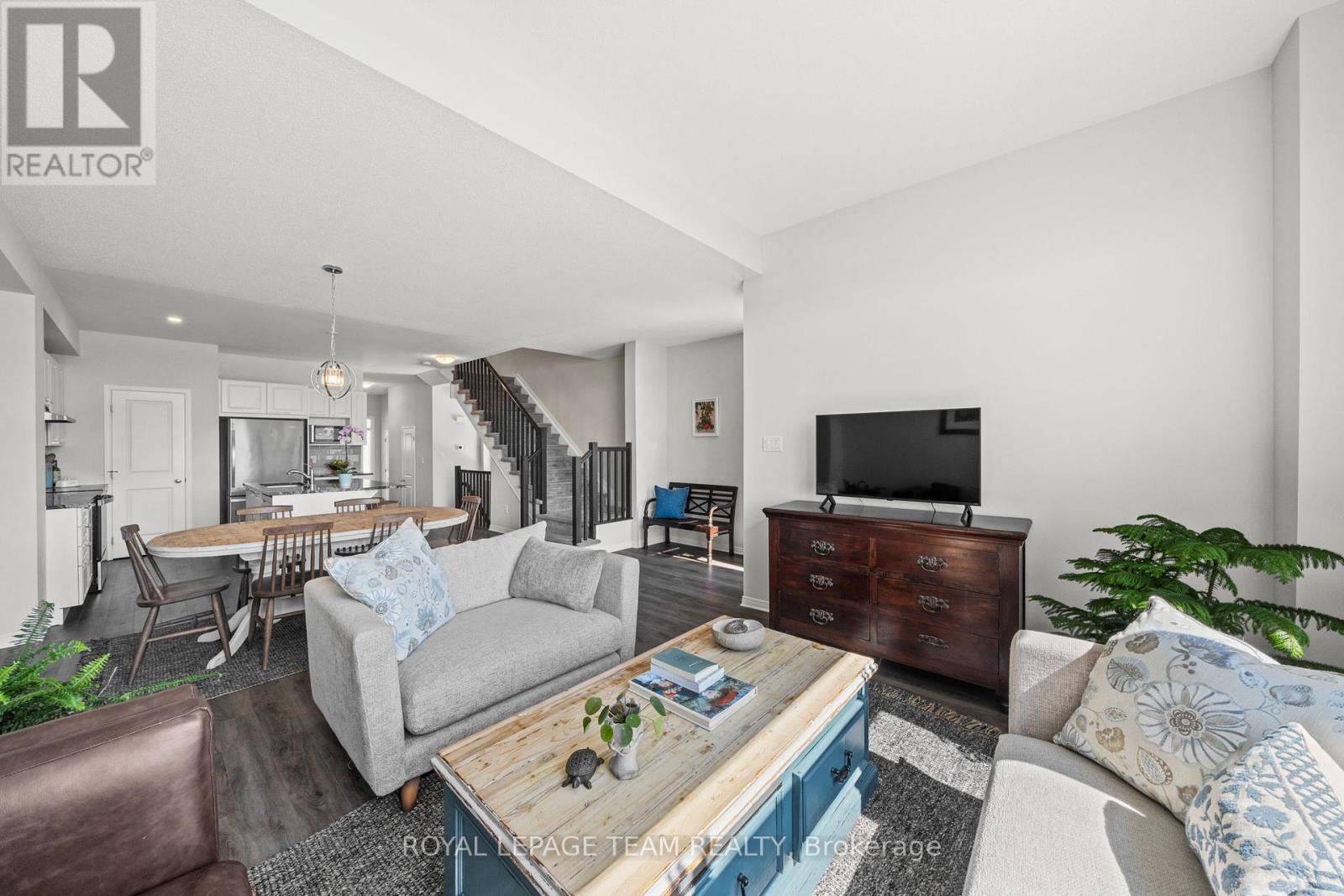 Welcome to this beautifully maintained 2021 end-unit row home, offering 3 bedrooms, 3 bathrooms with a modern design and thoughtful upgrades throughout. From marble countertops to stylish flooring, every detail enhances both function and aesthetic. The kitchen is a standout, featuring a stunning island and a walk-in pantry - perfect for everyday living and entertaining. The primary suite is a true retreat, complete with a walk-in closet and a private 4-piece ensuite. Added convenience comes with upstairs laundry, making daily routines that much easier. The finished basement provides valuable additional living space with a versatile rec area - great space for a media room, home gym, playroom, or home office. Step outside to enjoy the fully fenced backyard, ideal for BBQ season, and letting kids and pets play safely. Located in the Carleton Crossing community with easy highway access and close to everyday amenities, this property offers a turnkey opportunity - simply move in and enjoy. (id:64974)
