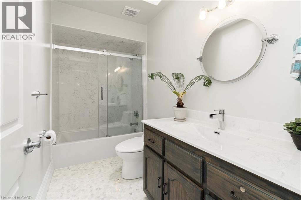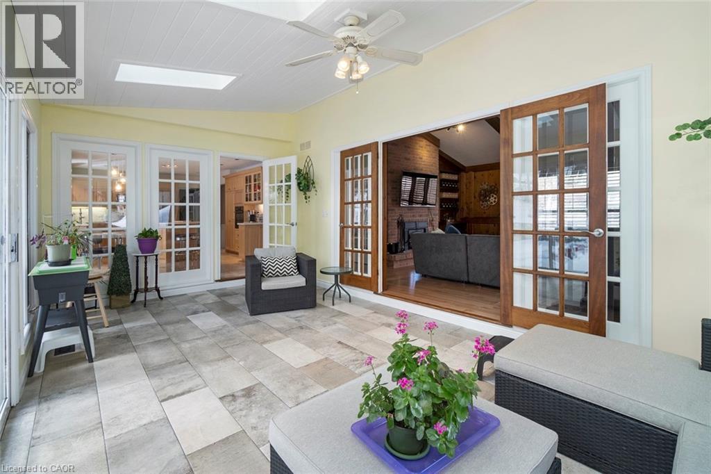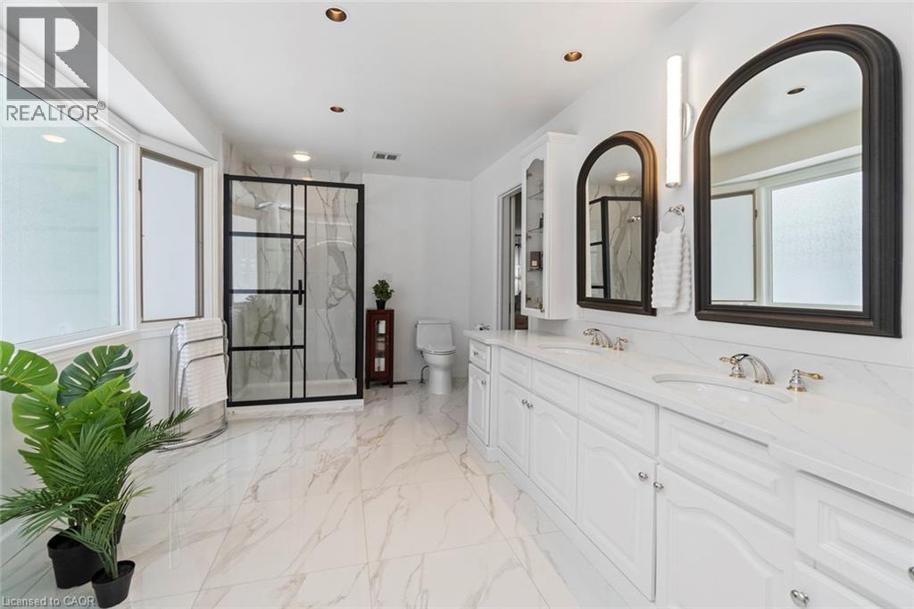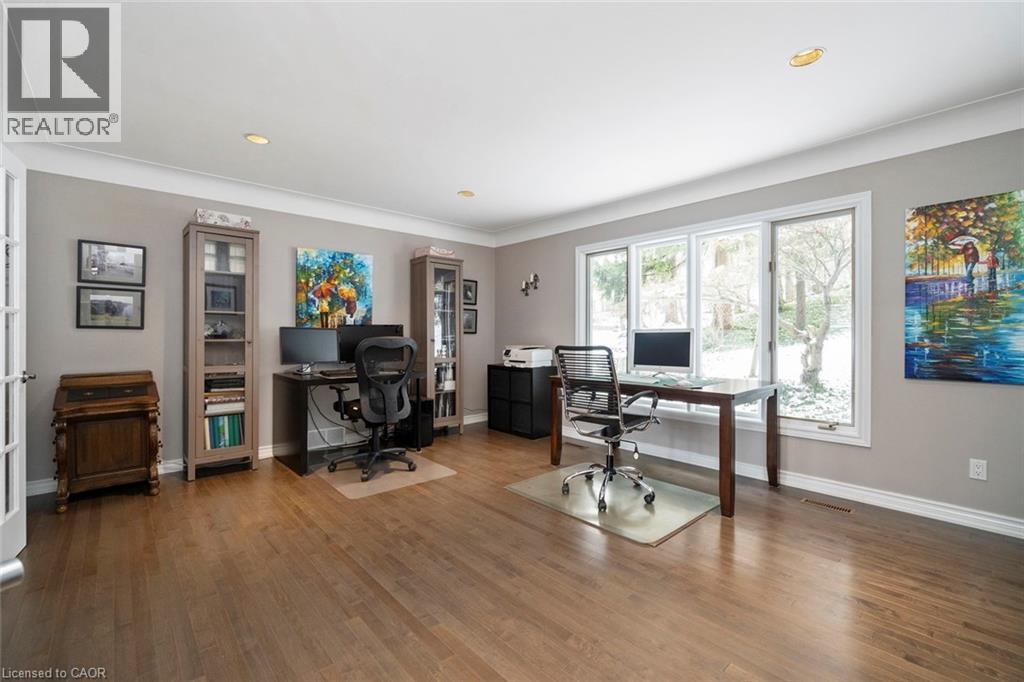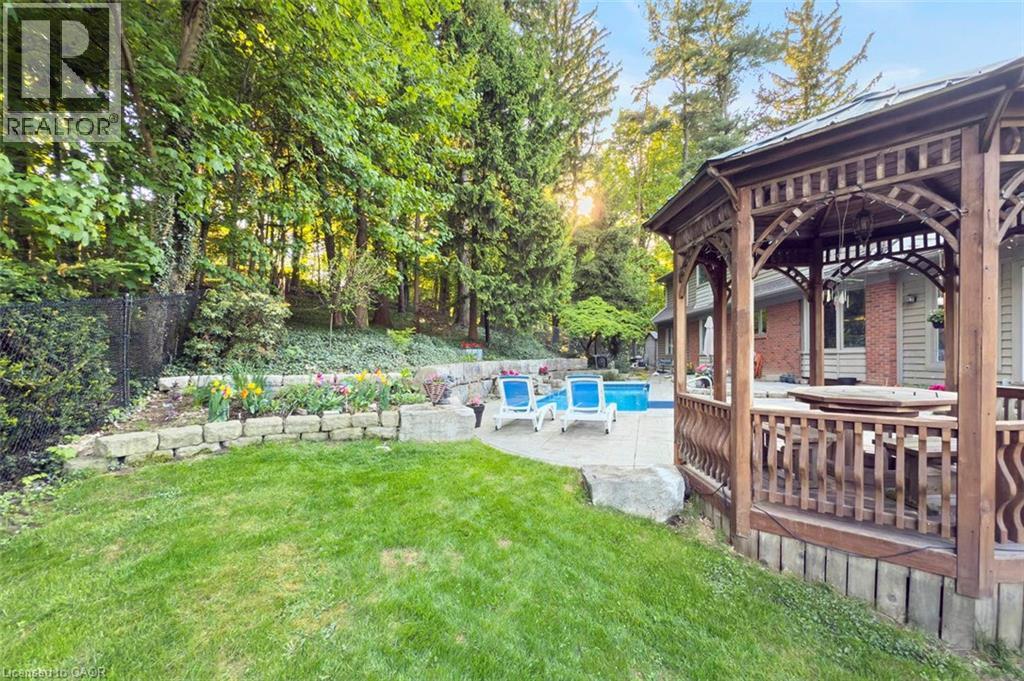 Imagine waking up every morning to your very own cottage-in-the-city, surrounded by the sights and sounds of nature! With almost 4,000 sq. ft. on the main and upper levels plus a finished basement, transform this floor plan to your personal needs. Grand principle rooms and multiple bonus spaces offer much flexibility! Wonderful potential for large families and business-from-home with lower level garage entry and separate side entrance. Travel to the end of this rarely visited cul-de-sac to find #18 Stonegate Drive peacefully perched amongst mature trees. An idyllic setting! Avid outdoor enthusiasts will enjoy the path on Stonegate Drive connecting to Ancaster Heights park and cycling/hiking trails. This stately property with expansive 142FT X 142FT lot comes to life in summer amongst mature gardens, heated salt water pool with waterfall, privacy from neighbours and numerous outdoor zones to enjoy! The main level is a rare find with a sprawling layout that generously separates gathering spaces, with suitability for multigenerational living or avid hosts. Hardwood flooring, two fireplaces, cathedral ceilings, oak accents and classic wainscotting elevate the main level spaces. Embrace views from both the cheery sunroom and eat-in kitchen during meal prep and coffee hour. Read, relax and enjoy your favourite hobby with the great outdoors as your backdrop! The upper level with 3 bedrooms includes primary suite with walk-in closet and bonus dressing room, flexible for potential 4th bedroom transformation. Don’t miss the spa-like ensuite with soaker tub and glass shower. Better yet? Offering an additional bedroom, bathroom, wet bar, fitness room and games room, the lower level creates separation for extended living. While amenities, restaurants and Hwy access are within’ mere minutes, this Ancaster paradise feels like you’re a world away from the hustle and bustle!. Come explore the road less travelled to a hidden gem of a location that exudes serenity, peace & calm! RSA (id:64974)