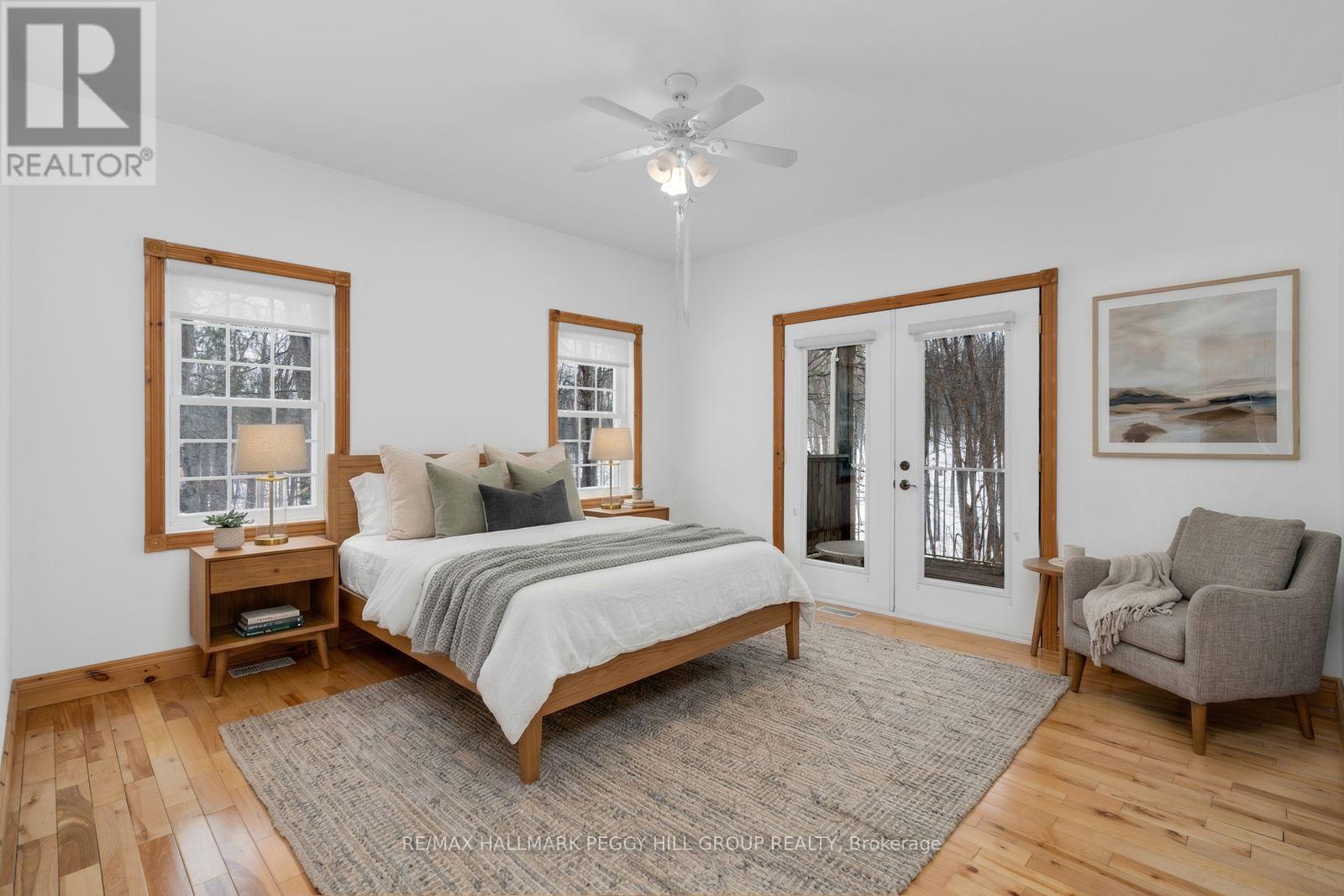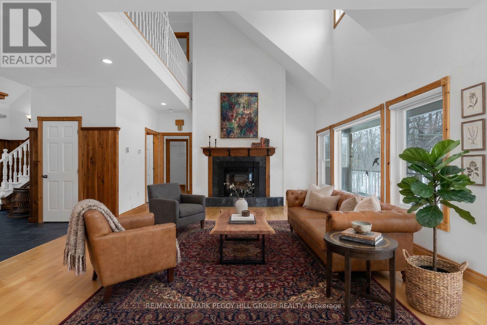 METICULOUSLY KEPT 4000+ SQ FT ESTATE ON 1.33 ACRES WITH A WALKOUT BASEMENT & EXCLUSIVE ACCESS TO 52 ACRES! Set on 1.33 acres in a prestigious estate neighbourhood in sought-after Horseshoe Valley, this well-maintained 2-storey home enjoys a treed setting with no homes directly in front or behind. A peaceful cul-de-sac address, lovely dormer windows, a large covered front porch, and an attached 2-car garage give this home a memorable first impression. Enjoy exclusive access to approximately 52 acres of private land for Trillium Trail residents, featuring nature trails, lookout points, open field space, and shared use of a storage shop. Hardwood flooring carries throughout the main and second level, while the combined living and dining room is defined by a soaring vaulted ceiling, oversized windows, a fireplace, and a double garden door walkout. Beautifully finished, the kitchen features quartz counters, built-in stainless steel appliances, white cabinetry with some glass inserts, a centre island, and breakfast bar seating. Main floor laundry with garage access adds function, while the main floor primary bedroom offers a private walkout to the back deck and a 5-piece ensuite with a soaker tub, separate shower, and water closet. Upstairs, 2 additional bedrooms, a full bathroom, and a loft-style family room with a gas fireplace create an upper level with plenty of character. The fully finished walkout basement with garage access and in-law potential extends the home's living space with a large rec room featuring a fireplace and double garden door walkout, along with a wet bar, bedroom, full bathroom, and large storage area. A new furnace in 2026 adds peace of mind. This exceptional location places you minutes from golf courses, Copeland Forest, ski hills, country clubs, and Vettä Nordic Spa, while the new Horseshoe Heights Public School is within walking distance, and Orillia and downtown Barrie are both under 25 minutes away. (id:64974)