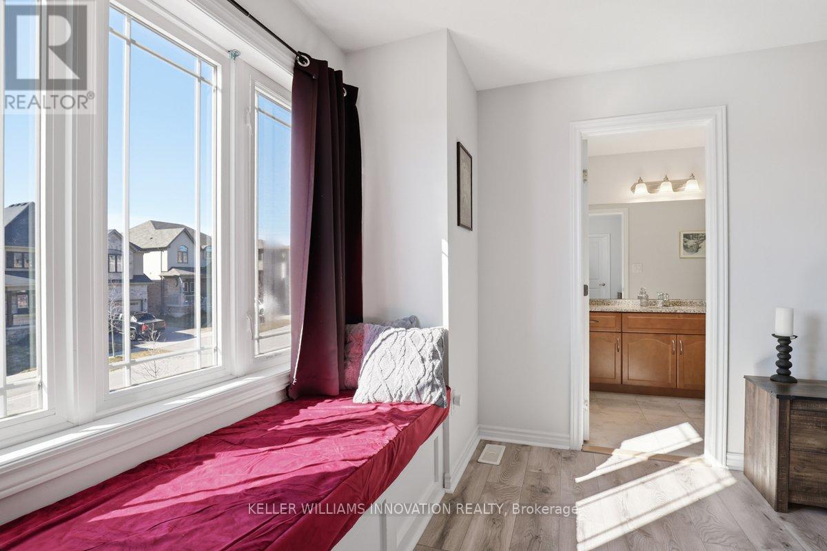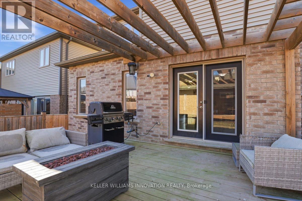 Just minutes to the 403, this bright, open-concept home offers the perfect blend of comfort and everyday convenience. The main floor features chocolate brown hardwood and white ceramic flooring, and an upgraded kitchen with maple cabinetry, granite countertops, and an eat-up island is truly the heart of the home where family and friends naturally gather. Main floor laundry with a mudroom keeps life organized and running smoothly. Upstairs, the primary bedroom is your personal retreat, complete with a walk-in closet, private ensuite with an upgraded 6' soaker tub/shower and a built-in window seat-perfect for quiet mornings with a coffee or unwinding at the end of the day. The finished basement adds even more flexible living space to suit your needs. Step outside to a fully fenced backyard featuring a 14' x 14' deck with pergola-an ideal space for summer evenings and entertaining. There's also an outbuilding in progress intended to be a 10' x 14' shed with an 18' x 14' covered sitting area, offering future potential for storage or outdoor enjoyment. An insulated double car garage with an 8' high door, ideal for larger vehicle and a 50-year Timberline Ultra Patriot roof adds peace of mind. Close to parks, trails, shopping and commuter routes, this home is move-in ready and waiting for you to make it your own. (id:64974)