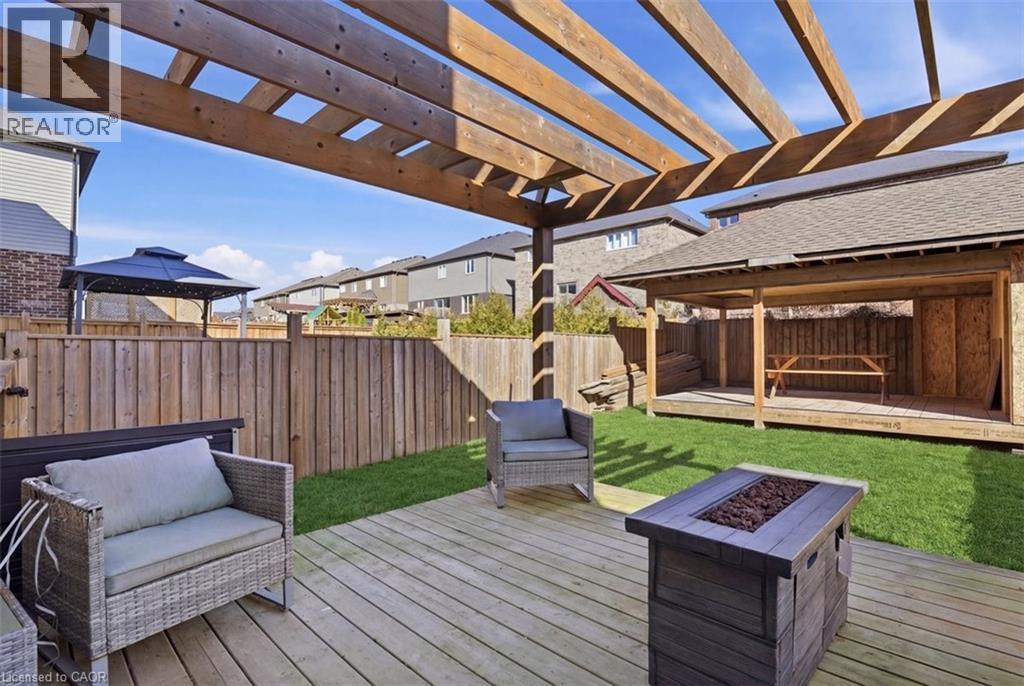 Just minutes to the 403, this bright, open-concept home offers the perfect blend of comfort and everyday convenience. The main floor features chocolate brown hardwood and white ceramic flooring, and an upgraded kitchen with maple cabinetry, granite countertops, and an eat-up island is truly the heart of the home where family and friends naturally gather. Main floor laundry with a mudroom keeps life organized and running smoothly. Upstairs, the primary bedroom is your personal retreat, complete with a walk-in closet, private ensuite with an upgraded 6’ soaker tub/shower and a built-in window seat—perfect for quiet mornings with a coffee or unwinding at the end of the day. The finished basement adds even more flexible living space to suit your needs. Step outside to a fully fenced backyard featuring a 14’ x 14’ deck with pergola—an ideal space for summer evenings and entertaining. There’s also an outbuilding in progress intended to be a 10’ x 14’ shed with an 18’ x 14’ covered sitting area, offering future potential for storage or outdoor enjoyment. An insulated double car garage with an 8’ high door, ideal for larger vehicle and a 50-year Timberline Ultra Patriot roof adds peace of mind. Close to parks, trails, shopping and commuter routes, this home is move-in ready and waiting for you to make it your own. (id:64974)