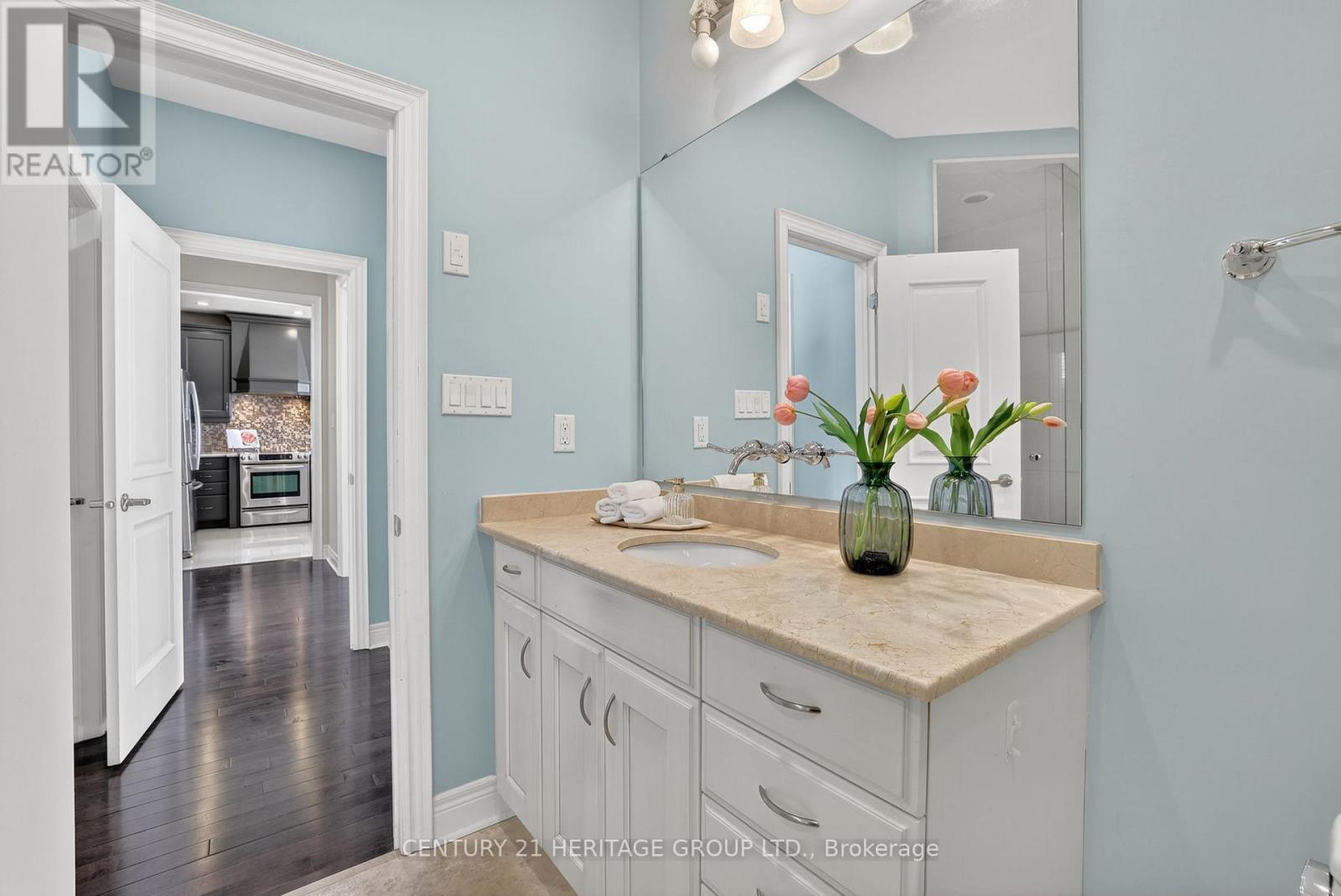 Rare Opportunity to own this Stunning bungalow that was builders model home! Gorgeous Curb appeal with Stone and brick Combo Complete with Exterior Pot Lights. The Main floor features over 1600 square feet of elegantly designed space. Upon entry you are greeted with a spacious living/dining room With Rich Hardwood Floors. Chefs Kitchen with High end Cabinetry, Quartz Counters and Stainless Steel Appliances. Oversized Family Room With Vaulted ceilings and Gas Fireplace. Large Primary bedroom with walk in Closet and 4 pc Ensuite. Upgraded open Staircase with wrought iron pickets leads you to the lower level. The Walkout Basement is Finished with Hardwood Floors and has unique 8 Ft 10in ceiling Height. Includes an open concept Great Room and Versatile Space that could easily be Converted to add a Kitchen plus a bedroom or two. Also has a luxurious 3pc bath, Storage room and Large cantina. The 43 x 118 ft lot gives you a great backyard space with unlimited potential. Wont last! (id:64974)