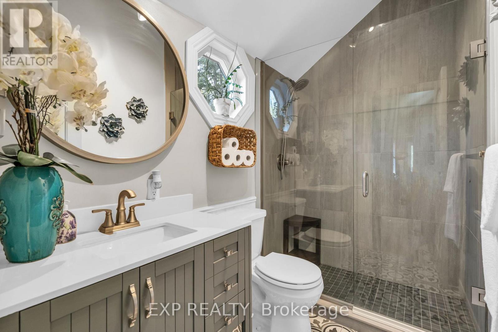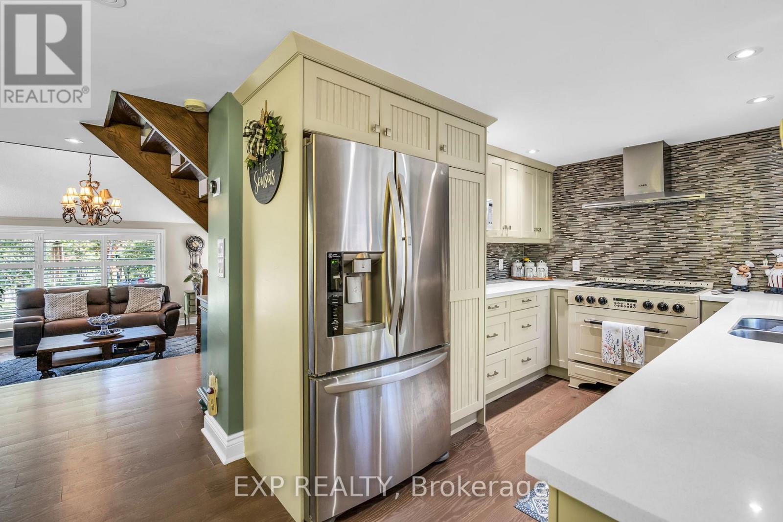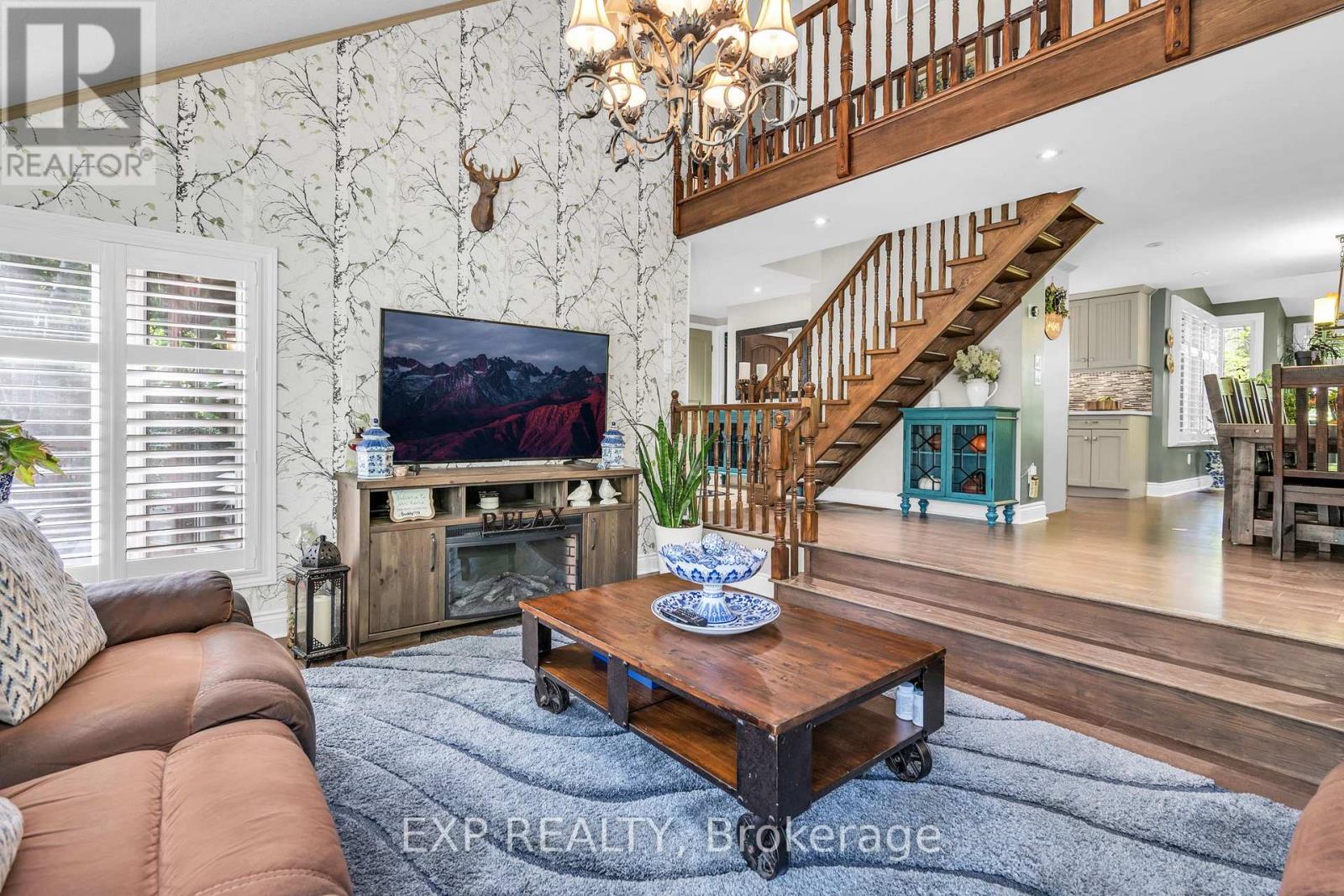 Welcome to 180 Brophy's Lane. This well-loved chalet-style home offers the perfect balance of cozy charm and functional space, making it ideal for full-time living or a weekend getaway. Perfectly located just a short stroll from the shores of Georgian Bay and only minutes from the vibrant slopes and year-round attractions of Blue Mountains. With ample parking space for up to 10 vehicles, there's plenty of room for guests, recreational toys and family gatherings. The inviting family room features a dramatic open design above, which enhances the true chalet aesthetic, creating a bright and spacious atmosphere. Recent upgrades include a chef-inspired kitchen with high-end quality finishes and appliances, hardwood floor throughout the main floor, upstairs hallway and second bedroom, newly renovated washrooms with glass shower, a durable metal roof, furnace, hot water tank and A/C all under 5 years old. The large main floor primary bedroom offers convenience and privacy, complete with direct walkout access to the deck - perfect for enjoying your morning coffee or unwinding in the evening. Step outside to a spacious backyard featuring a separate deck and pergola, creating a charming retreat for gatherings. Home also features a bonus workshop, a storage shed with an additional summer entertainment retreat. (id:64974)
