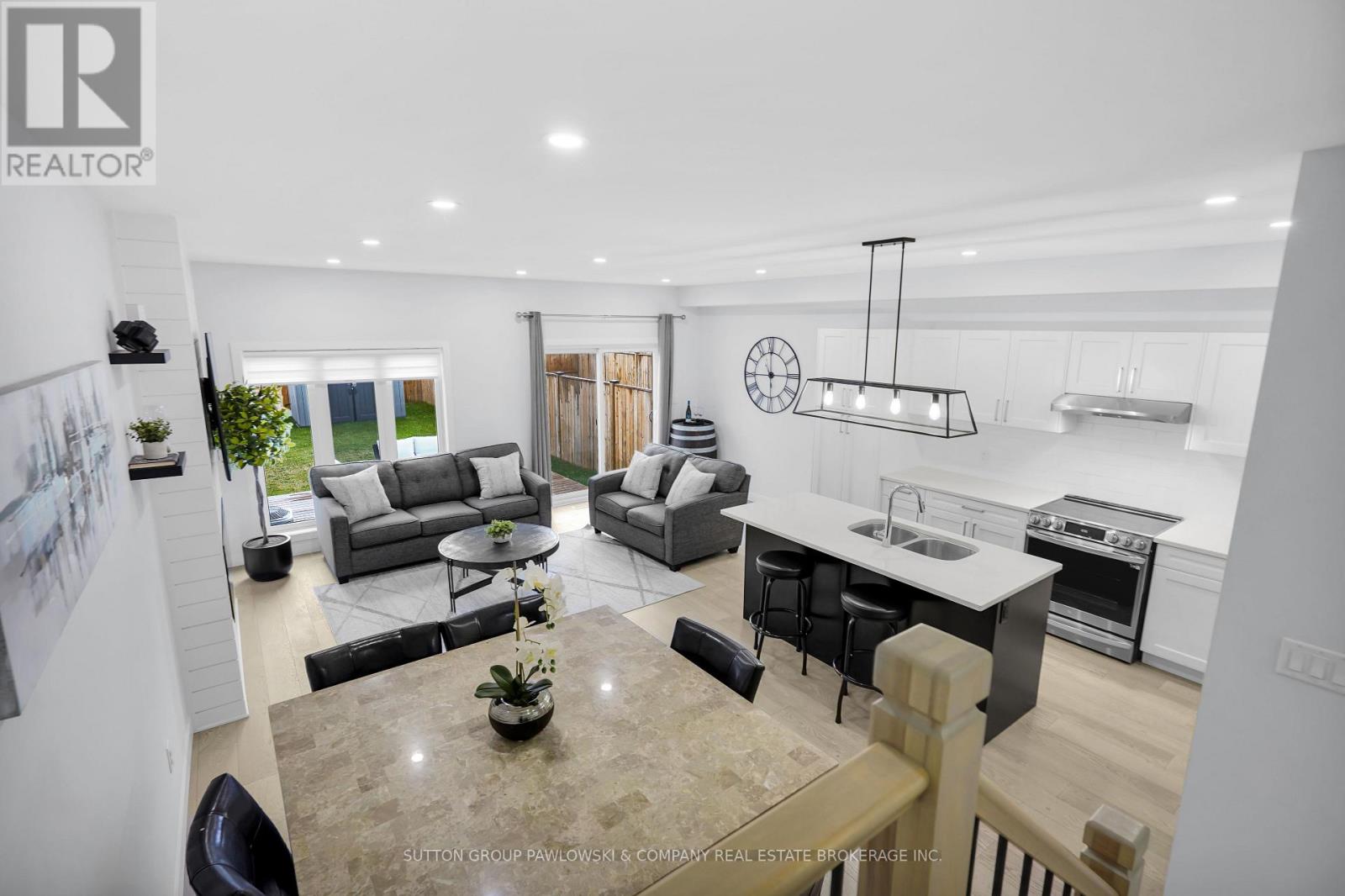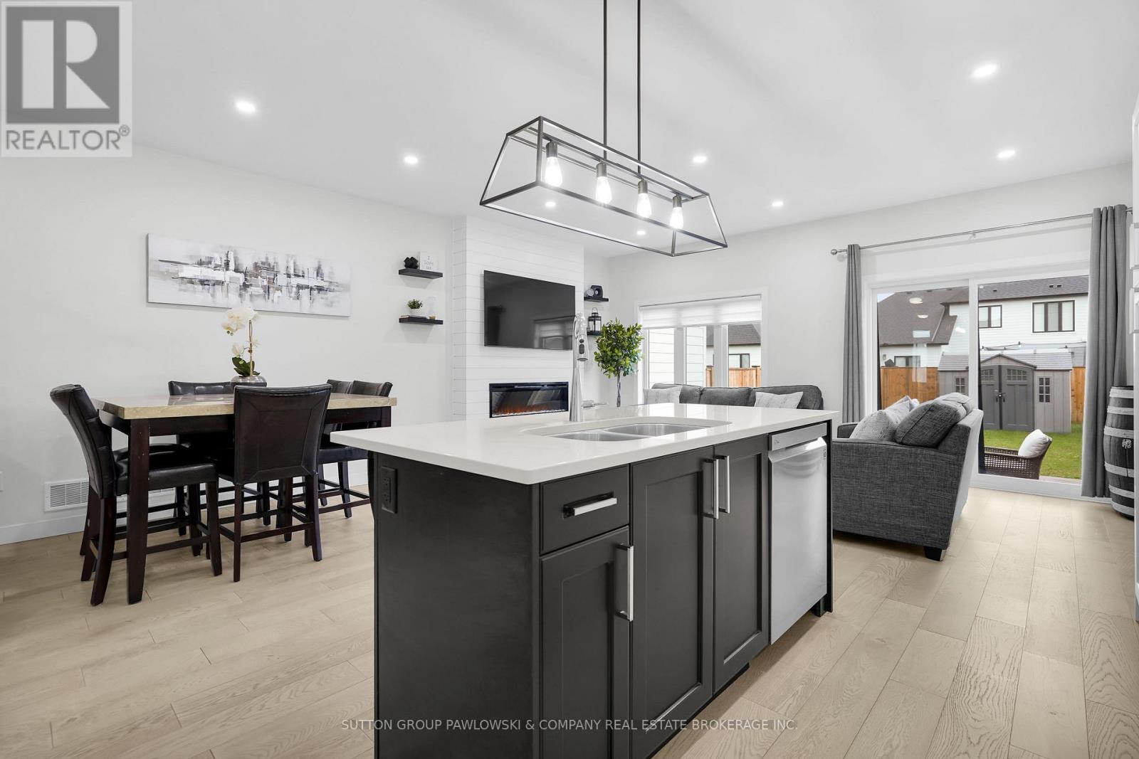 Welcome to this stylish freehold townhome in the highly sought-after Kilworth Heights West community. Offering approximately 1,745 sq ft of well-designed living space, this modern 2-storey home features 3 bedrooms, 2.5 bathrooms, and an attached single-car garage with inside entry - all with no condo fees. The bright, open-concept main floor is ideal for everyday living and entertaining, showcasing wide-plank flooring, a spacious living area with contemporary electric fireplace, and large windows that flood the space with natural light. The sleek kitchen is the heart of the home, complete with quartz countertops, modern cabinetry, stainless steel appliances, and a large island with seating. Patio doors lead to a private, fully fenced backyard with deck - perfect for outdoor dining and relaxation. Upstairs, the generous primary bedroom offers a walk-in closet and a beautifully finished ensuite with double vanity and glass shower. Two additional bedrooms, a full bathroom, and convenient upper-level laundry complete the second floor. The unfinished lower level provides excellent potential for future living space or storage. Located in a family-friendly neighbourhood close to parks, schools, shopping, and amenities, with quick access to Highways 401 and 402. A move-in-ready opportunity in one of Kilworth's most desirable communities. (id:64974)