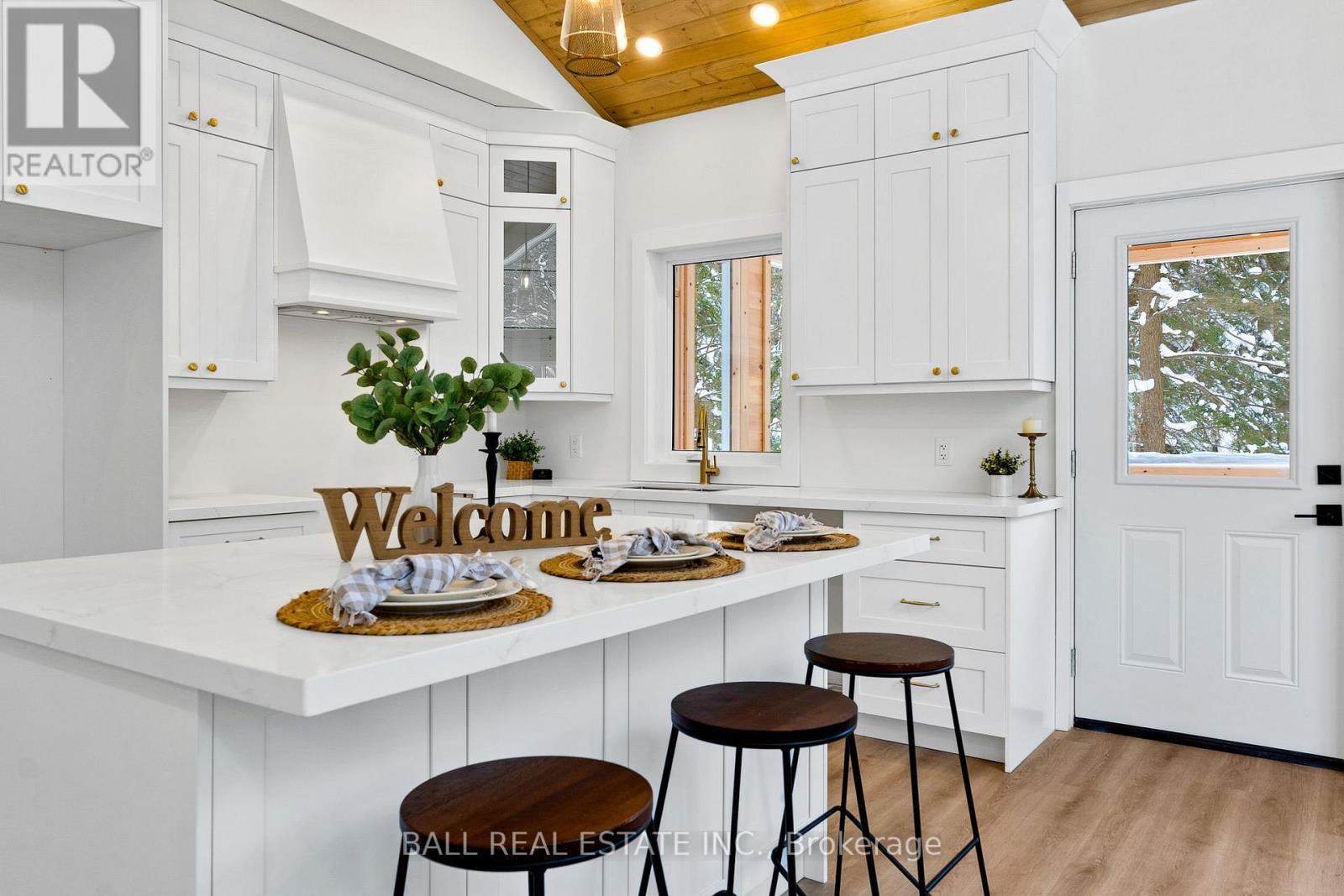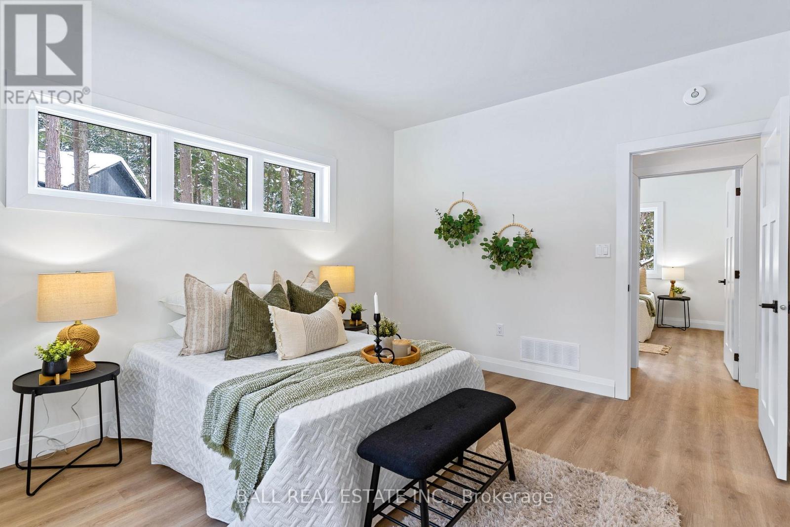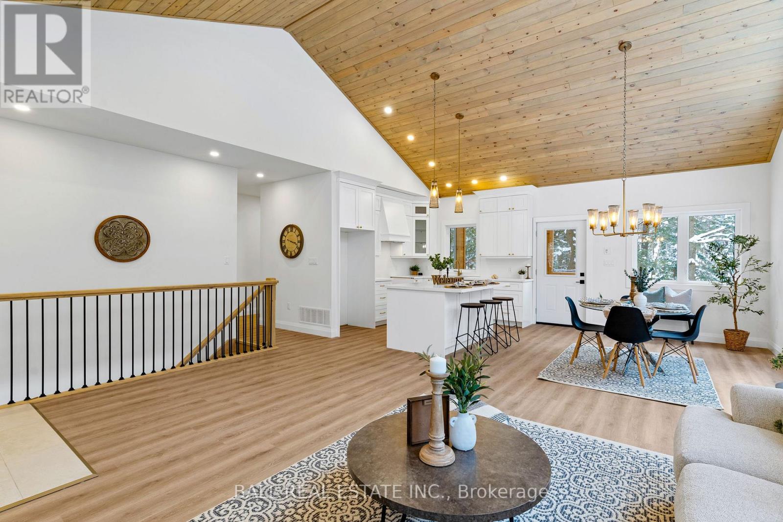 Welcome to this thoughtfully designed 2025 custom bungalow, offering approximately 1,200 sq.ft. of well-planned living space and the perfect blend of modern comfort with an in-town rural feel. The main floor features a bright, open-concept living, dining, kitchen area, highlighted by vaulted pine ceilings and abundant natural light. The custom kitchen is finished with quartz countertops and quality cabinetry, flowing seamlessly into the main living space-ideal for everyday living and entertaining. Durable luxury vinyl flooring runs throughout the main level, complemented by spacious bedrooms with large closets. The primary bedroom offers a walk-in closet and a private 4-piece ensuite, while a second 4-piece bathroom and convenient main-floor laundry complete the level. Additional quality finishes include North Star windows, an asphalt shingle roof, and a welcoming front deck. At the rear, enjoy a 12' x 12' pine screened-in room with direct access to the backyard-perfect for relaxing and enjoying the natural surroundings. Full ICF foundation and features a bright walk out basement with oversized windows and a patio door, allowing for excellent future living potential. The basement is partially finished, with electrical completed, partial drywall installed, and rough-in for a third bathroom already in place. Mechanical systems include a propane furnace, owned hot water tank, 200 AMP panel and HRV system. Set on a beautifully treed lot, the property backs onto a natural escarpment, creating a private & peaceful backyard. Located on a municipally maintained road with underground hydro, phone, and internet, and accented by stylish street lanterns, this quiet dead-end cul-de-sac offers minimal traffic and a strong sense of community. All within walking distance to Haliburton Village, surrounded by custom homes, and designed to preserve a true rural atmosphere while still enjoying the convenience of town amenities. (id:64974)