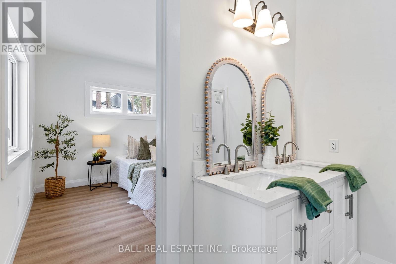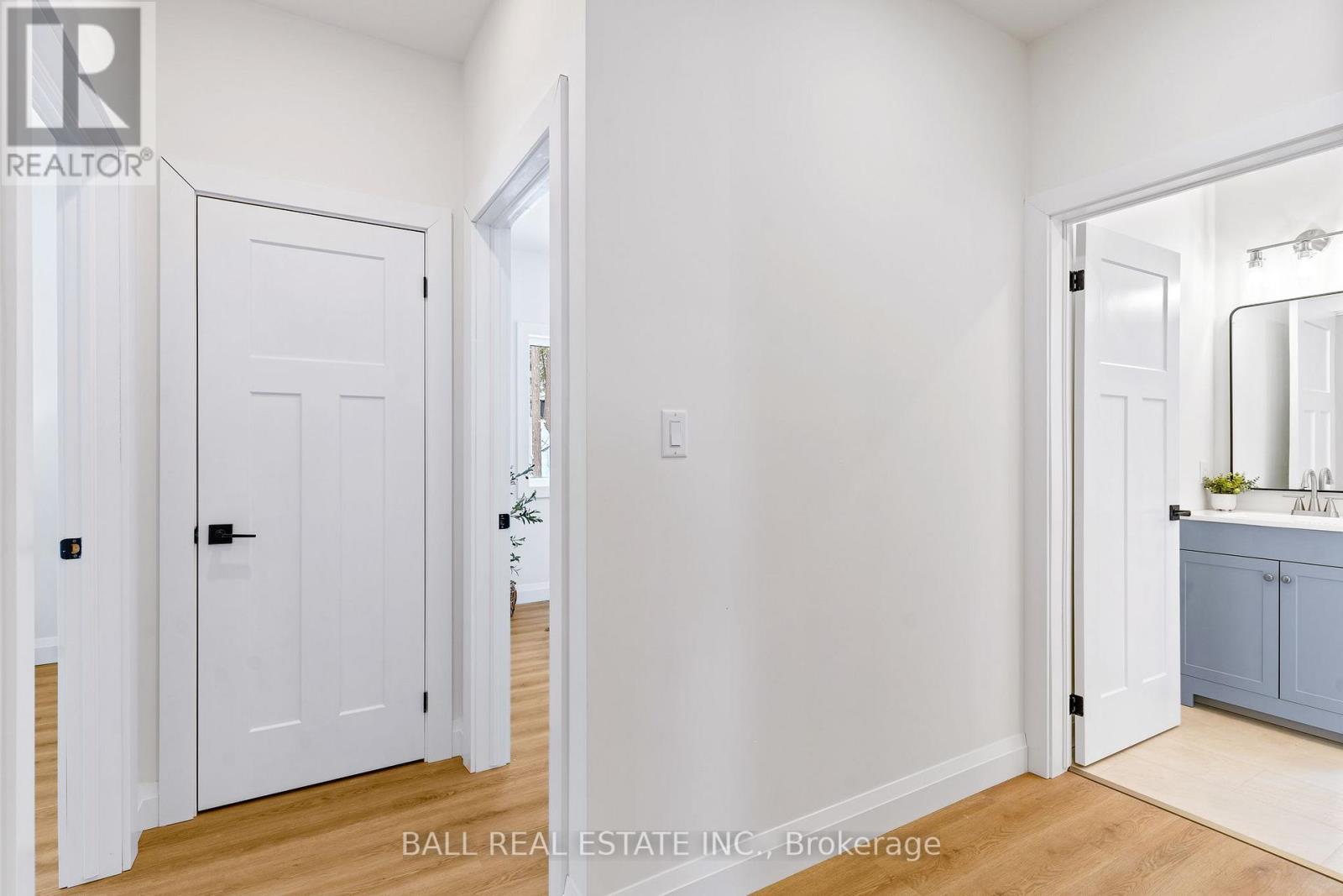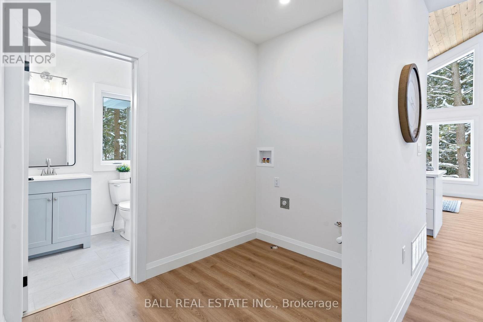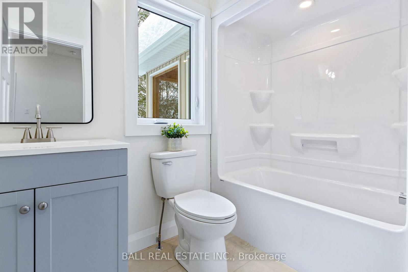 Welcome to this thoughtfully designed 2025 custom bungalow, offering approximately 1,200 sq.ft. of well-planned living space and the perfect blend of modern comfort with an in-town rural feel. The main floor features a bright, open-concept living, dining, kitchen area, highlighted by vaulted pine ceilings and abundant natural light. The custom kitchen is finished with quartz countertops and quality cabinetry, flowing seamlessly into the main living space-ideal for everyday living and entertaining. Durable luxury vinyl flooring runs throughout the main level, complemented by spacious bedrooms with large closets. The primary bedroom offers a walk-in closet and a private 4-piece ensuite, while a second 4-piece bathroom and convenient main-floor laundry complete the level. Additional quality finishes include North Star windows, an asphalt shingle roof, and a welcoming front deck. At the rear, enjoy a 12' x 12' pine screened-in room with direct access to the backyard-perfect for relaxing and enjoying the natural surroundings. Full ICF foundation and features a bright walk out basement with oversized windows and a patio door, allowing for excellent future living potential. The basement is partially finished, with electrical completed, partial drywall installed, and rough-in for a third bathroom already in place. Mechanical systems include a propane furnace, owned hot water tank, 200 AMP panel and HRV system. Set on a beautifully treed lot, the property backs onto a natural escarpment, creating a private & peaceful backyard. Located on a municipally maintained road with underground hydro, phone, and internet, and accented by stylish street lanterns, this quiet dead-end cul-de-sac offers minimal traffic and a strong sense of community. All within walking distance to Haliburton Village, surrounded by custom homes, and designed to preserve a true rural atmosphere while still enjoying the convenience of town amenities. (id:64974)