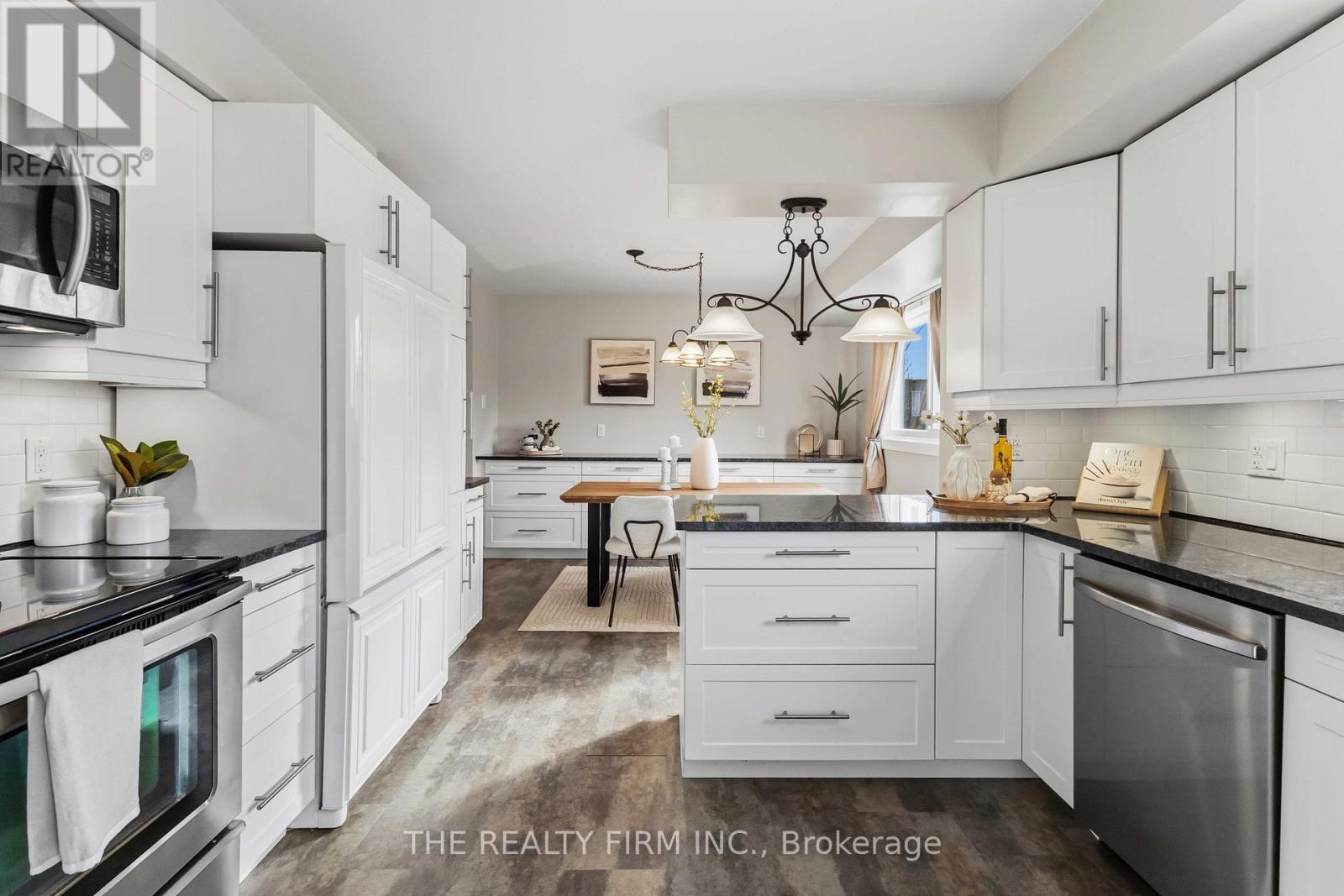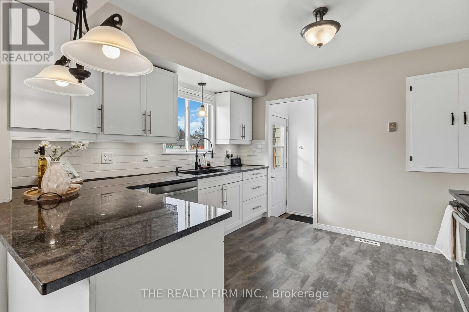 Welcome to this beautifully maintained four-level side split, ideally located in the heart of Aylmer. Step inside to a spacious living room highlighted by a charming bay window that fills the space with natural light. The main level flows effortlessly into a bright, updated eat-in kitchen featuring granite countertops and classic white cabinetry-perfect for everyday living and entertaining. The upper level offers three comfortable bedrooms and full bathroom with double sinks, while the lower level provides a generous family room complete with a new gas fireplace insert and custom built-in cabinetry. Large above-grade windows bring in plenty of natural light, creating a warm and inviting atmosphere. This level also includes a fourth bedroom and a full bathroom, offering flexible space for guests, a home office, or growing families. Step outside to your own private backyard retreat featuring an in-ground saltwater pool (salt cell 2024, new pump 2025)-the perfect setting to relax, entertain, and enjoy endless summer days. (id:64974)
