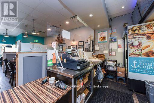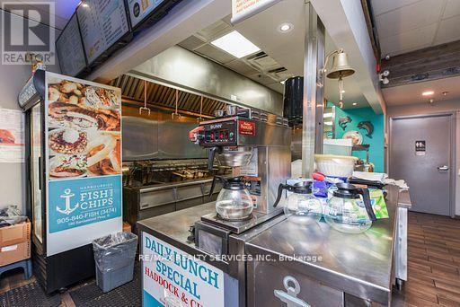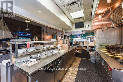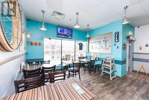 Exceptional Turnkey Opportunity Award-Winning Fish & Chips Restaurant in Brampton! No Franchise restrictions, No royalty fees!. Own your own Brand Discover one of Brampton's highest-rated fish & chips restaurants on Google, boasting a diamond and platinum award from the Brampton Guardian for outstanding seafood and fish & chips. This beautifully designed, professionally built-out restaurant features a charming nautical-themed dining area and is LLBO licensed, offering a warm and inviting ambiance with a stunning 100-year-old barn board accent wall. Offers full dine-in & takeout service, plus a famous dessert menu featuring the best funnel cakes in town. Located in a high foot traffic plaza, this restaurant enjoys a loyal and abundant customer base with strong repeat business and excellent community presence. Option to extend business hours for increased revenue. The commercial kitchen is professionally and efficiently designed for optimal workflow and productivity ideal for busy service times. Don't miss this rare opportunity to own a thriving, reputable restaurant with proven success and strong brand recognition, successful business with room to grow! . This is Fantastic opportunity to take over a thriving. Fully operational Restaurant. (id:64974)