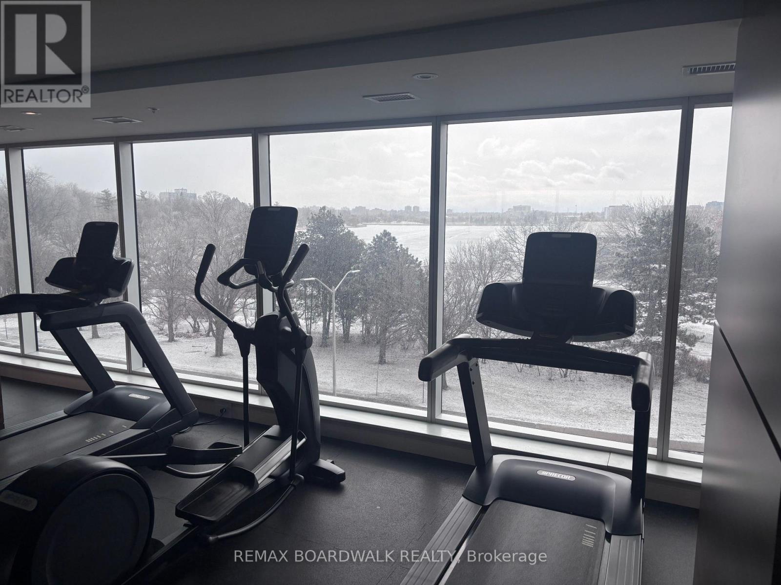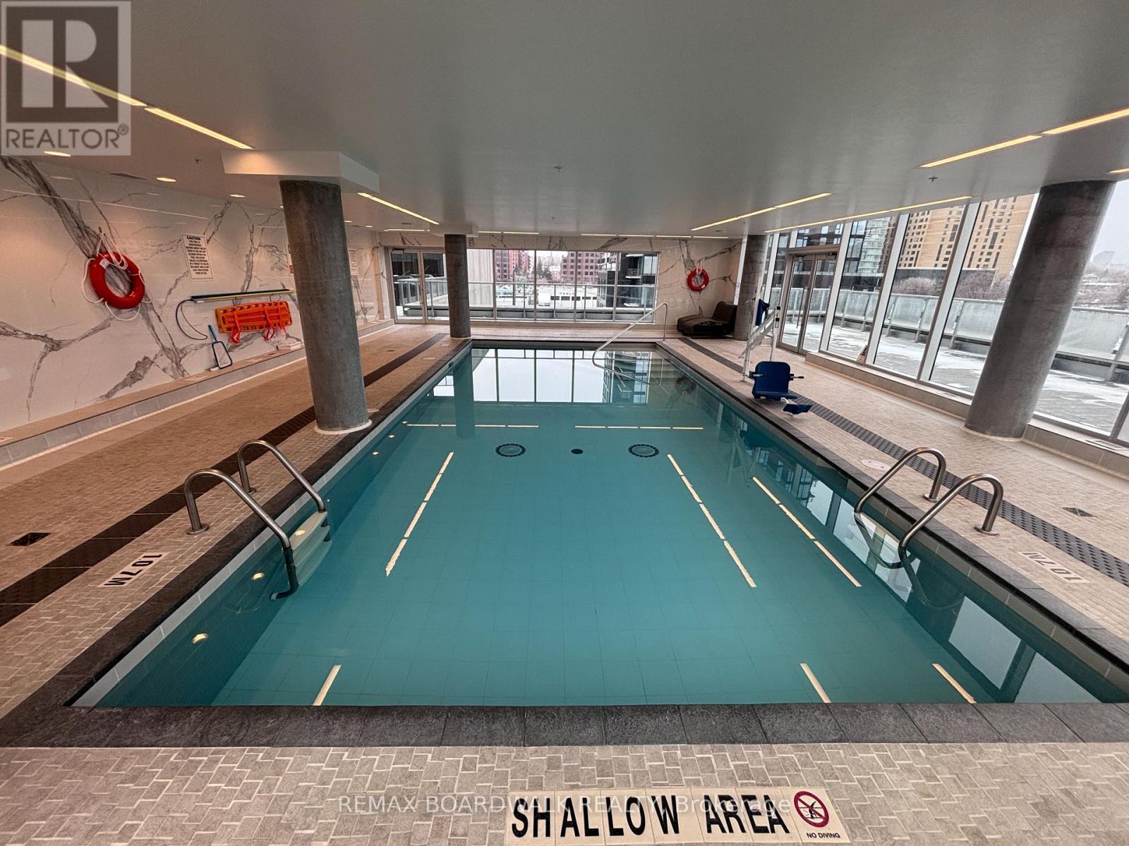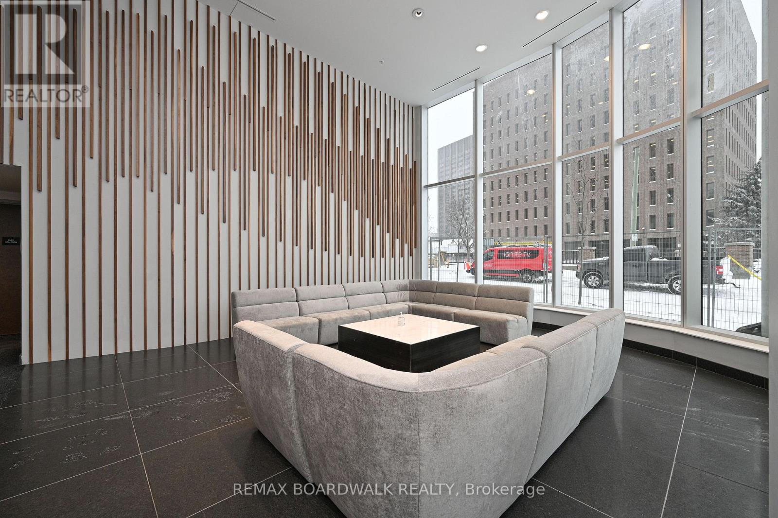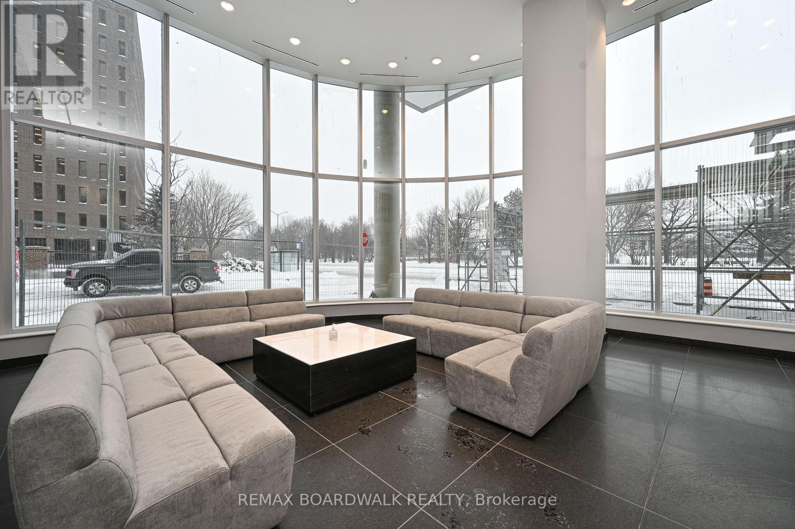 1 bedroom + den with western sunset views located steps away from Dow's Lake, transit, and some of the city's best restaurants in Little Italy. Welcome to the Claridge Icon. You will be greeted by the concierge in this modern building. Tile front entrance. Chic kitchen with black cabinets with modern hardware, white quartz countertops perfectly accented by the grey tile backsplash + stainless steel appliances. Living room with floor-to-ceiling windows and patio door to balcony with expansive city views from the 18th floor. Primary bedroom with sliding door closet, and large window. Den is perfect for a home office or flex space to suit your needs. This unit also offers in-unit laundry with a stacking washer and dryer. Main bathroom with quartz counters, full shower/tub. Building amenities that you will love and actually use, including an indoor pool, sauna, gym, yoga studio, movie theatre, 4th floor terrace with barbecues, bike room, games room and guest suites available, plus 24h concierge service, and more! 1 Underground parking spot and storage locker included in rent. 48-hour irrevocable on all offers. (id:64974)