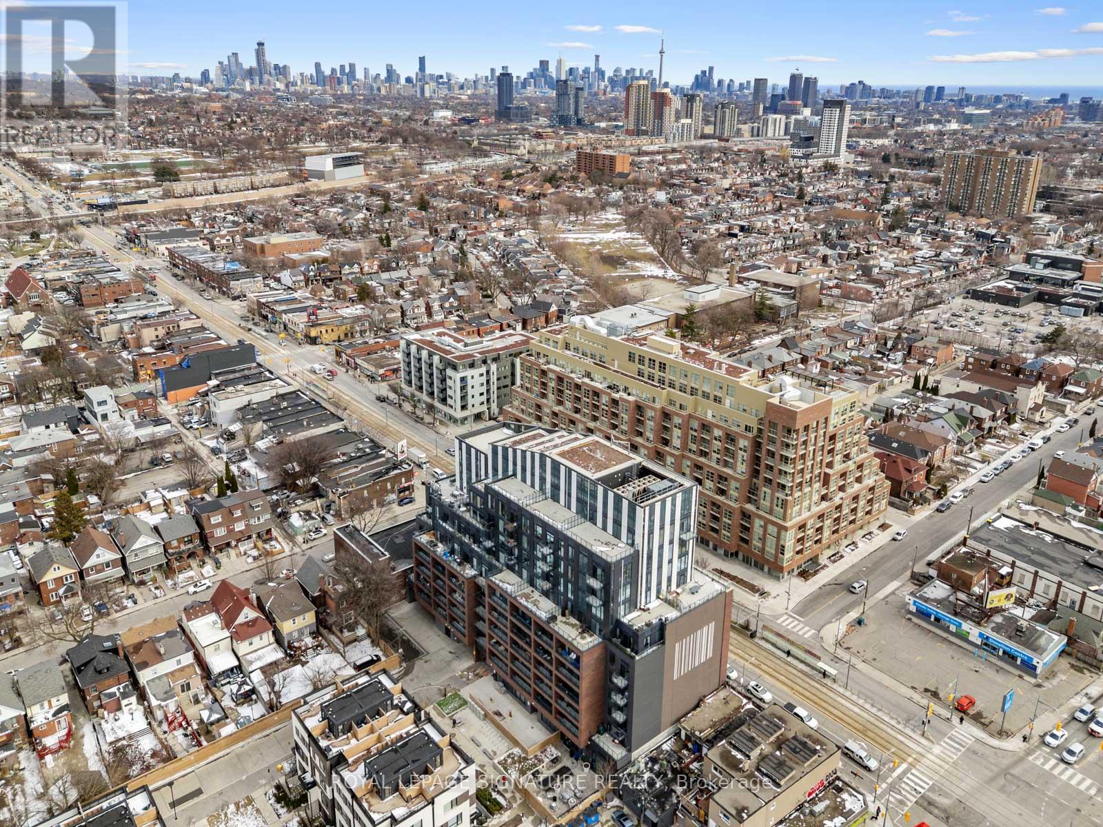 Welcome to this stunning loft-style suite in the heart of St. Clair West. Bright, spacious, and Scandinavian-inspired, this beautifully designed home features approximately 800 sq ft + balcony, a concrete loft-style 9'3" Ceiling, 2 bedrooms, and 2 bathrooms, highlighted by windows showcasing panoramic & quiet north views. The spacious balcony is perfect for everyday enjoyment, offering unobstructed views of the residential area. This exceptional outdoor retreat is ideal for morning coffee, gardening, entertaining, or simply relaxing, creating your own private outdoor oasis in the city. Located in an intimate boutique building with contemporary architecture and sophisticated design. Residents enjoy premium building amenities, including a fitness center, a community lounge with co-working space, an urban garage for bike repair or creative projects, a party room, a common BBQ area, EV Chargers, and a bike repair room. Direct access to St. Clair streetcar, mins to the subway, GO train, UP express and future Old Weston SmartTrack line. An exceptional opportunity for professionals, downsizers, investors, or first-time homebuyers seeking a move-in-ready home in a thriving urban community. Just a short stroll to Stockyards Village, grocery stores, schools, and popular local spots such as Geladona, Wallace Espresso, Tavora Foods, Earl's Court Park, the Toronto Public Library, and the Junction Farmers' Market. Commuting is effortless with convenient access to transit, Keele Street, Black Creek, Highways 401 and 400, and a new GO FastTrack station coming soon. Steps from the vibrant shops, cafés, Portuguese bakeries, and culture of St. Clair Ave West and The Junction, yet minutes to downtown Toronto - this is elevated city living in one of Toronto's trendy midtown neighbourhoods and exceptional value in a growing west-end pocket* (id:64974)