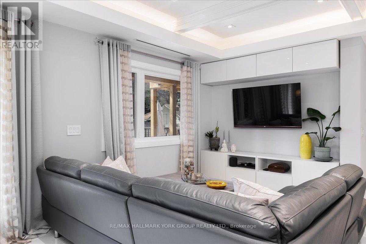 Pristine, one of a kind Custom Contemporary home built in 2021 is located in the Historical Lakeside Community of Orchard Beach and just steps to Lake Simcoe. Beautiful private and fully landscaped, the home overlooks the beautiful sunsets of Cooks Bay and an exclusive neighbourhood parkette. Offering luxury and rich finishings throughout this 2300 Sq. Ft. 3 bedroom, 4 bath home has a pot lit covered porch entry to an exceptional open main level design featuring in-floor radiant heat, pot lights and coffered ceilings throughout. The stunning kitchen with Quartz Counters, Stainless Steel Appliances and large center island is open to the Dining/Living Combo with a floor to ceiling marble gas fireplace, built-in entertainment unit and a walkout to a covered deck featuring a built-in outdoor kitchen and fully fenced yard. The oversized Oak staircase leads to the sky-lit 2nd floor with hardwood floors and a huge primary retreat with 3 piece heated floor ensuite, walk-in closet, marble fireplace and a walkout balcony overlooking the lake. The 2 additional bedrooms feature their very own full ensuites and the 2nd bedroom walks out to a balcony overlooking the parkette. There is also a conveniently located 2nd Floor Laundry. Detached garage and inground sprinkler system. Close to all amenities and perfect for daily walks along the lake this home also offers lake access to 2 private community beaches. Lakeside lifestyle at its best and not one you will want to miss, come see it today! (id:64974)