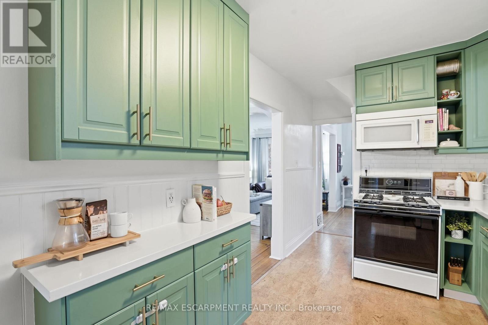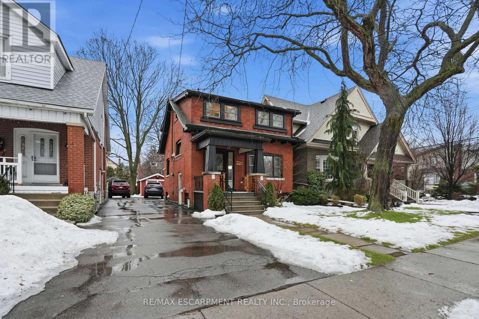 Welcome to this bright, character-filled 3-bedroom home in an unbeatable location just steps to Gage Park and vibrant Ottawa Street! Offering a beautiful blend of charm and function, this spacious home features original inlay hardwood floors on the main level, updated exterior stained glass windows throughout, and a full dining room perfect for hosting family and friends. The cozy sunroom just off the kitchen is the ideal morning coffee spot, and the vintage gas stove works like a charm for your baking and cooking needs! Downstairs you'll find a fully finished basement (2022) providing additional living space/work space/gym or a cozy hang out spot along with 2pc powder room and laundry for convenience & ample storage. Step outside to a generously sized backyard made for entertaining, complete with a HUGE detached shed/workshop with hydro - perfect for hobbyists, storage, or creative projects. Additional updates include furnace (approx. 2023), updated waterline, back flow valve, and private parking for one vehicle via mutual drive with wonderful neighbouring homes on either side.This home is full of charm, warmth, and opportunity in one of Hamilton's most sought-after neighbourhoods. (id:64974)