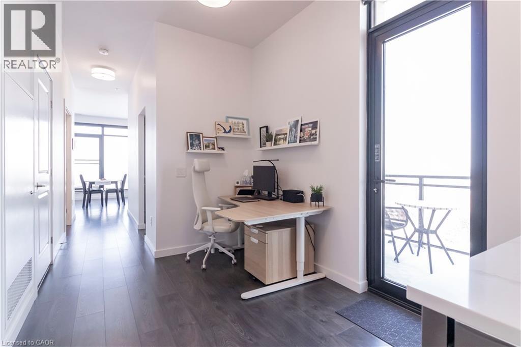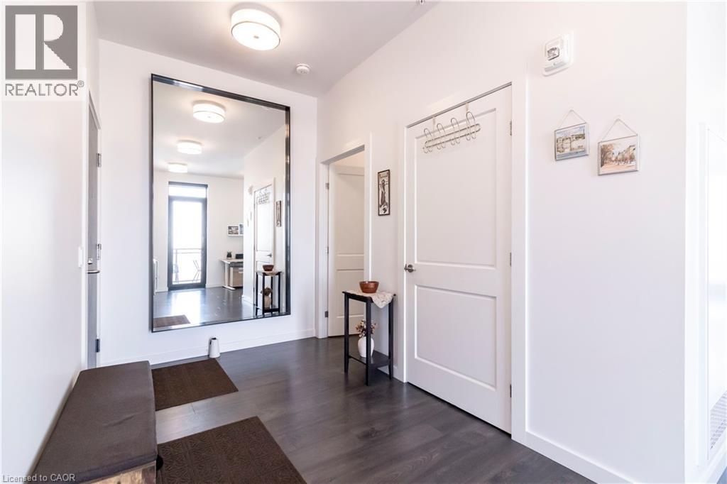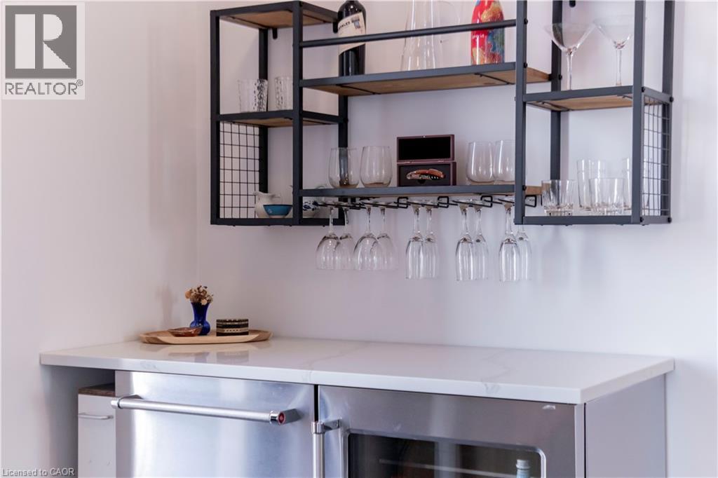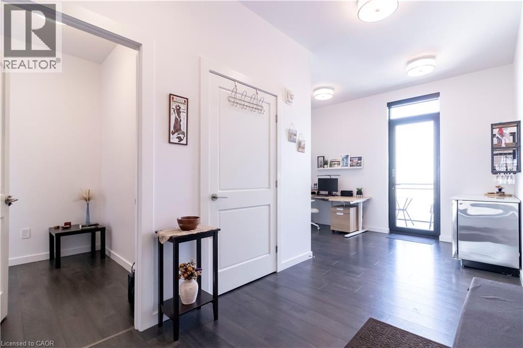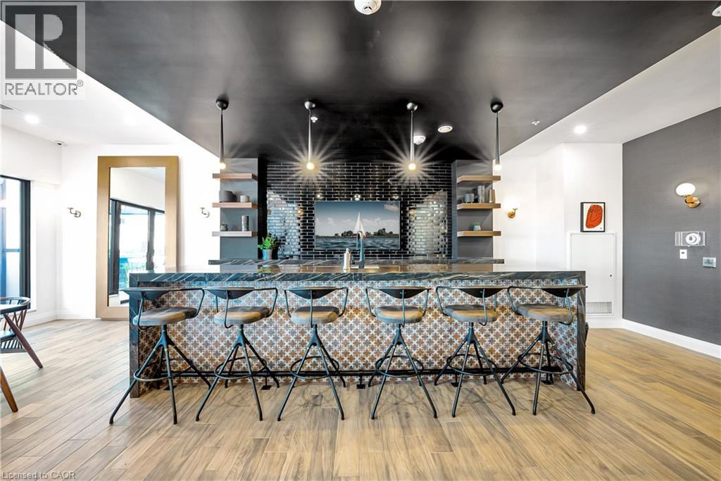 One of Uptown Waterloo's most prestigious condominium residences, Circa 1877 offers refined urban living at its best. A perfect blend of thoughtfully appointed luxurious interior living space with the convenience of 2 dedicated underground parking spaces, suite 1513 at 181 King St Waterloo checks all of the boxes. Immediately upon entry, the soaring 10 foot ceilings let you know this is not your typical 2 bedroom 2 bathroom condo. Offering 1250 square feet of interior living space, plus 2 private balconies, the north western panoramic views of the cityscape and nightly sunsets are impressive. Designed for both style and functionality, the expansive open-concept layout is filled with natural light and ideal for sophisticated entertaining. The chef-inspired kitchen features European built in appliances, quartz counters, and large kitchen island with ample seating. Flowing seamlessly into the living room and additional dining area, you are surrounded by floor to ceiling windows and premium carpet free flooring throughout the suite. Both bright and spacious bedrooms offer built-in wardrobes, commercial-grade automatic silver-screen roller sheers (throughout condo), offering additional blackout options in the bedrooms, and the primary bedroom features a 3 piece ensuite bath. Bonuses include a dedicated den space, bar area with KitchenAid beverage cooler/freezer plus wine fridge, WIFI thermostats and lighting controls for your convenience, insuite laundry, and private storage locker. Circa 1877 features unparalleled amenities including outdoor saltwater pool with cabanas and bbq, fitness centre, yoga space, co working space, and social lounge. You are able to enjoy one of Waterloo’s newest fine dining restaurants at your doorstep Lala Social House. Enjoy being steps from grocery stores including Vincenzo’s, upscale restaurants and bakeries, public transportation including the LRT, Waterloo Park, highway access, and Waterloo Town Square. (id:64974)