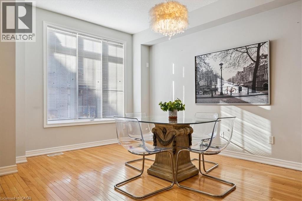 Beautifully Located Old Dawn Victoria Townhouse Located In Burlington's Sought After Aldershot Community. Close To Schools, Shopping, Mcmaster University, Walking Trails, R.B.G. Major Highways And Aldershot Go Station. Enjoy carefree condo style living with very low condo fees. Sun drenched open concept main level with sliding doors to a 10'.4 X 8' covered terrace off the living/dining room boasting 9 foot ceilings. Step saving Kitchen with plenty of cabinets and ample counter top space, for ease of cooking prep work. Breakfast bar countertop. Oak hardwood flooring throughout the townhouse, including an oak hardwood staircase with landing up to the bedroom level. Good size primary bedroom, ceiling fan and large walk-in closet. 2nd bedroom good size as well. Inside garage door entry to main level ceramic tile foyer. So, what are you waiting for? Elevate your life and enjoy virtually maintenance free living with a low condo fee. Common area Playground For Kids, a generous amount of Visitor Parking and a Pet Relief area. (id:64974)