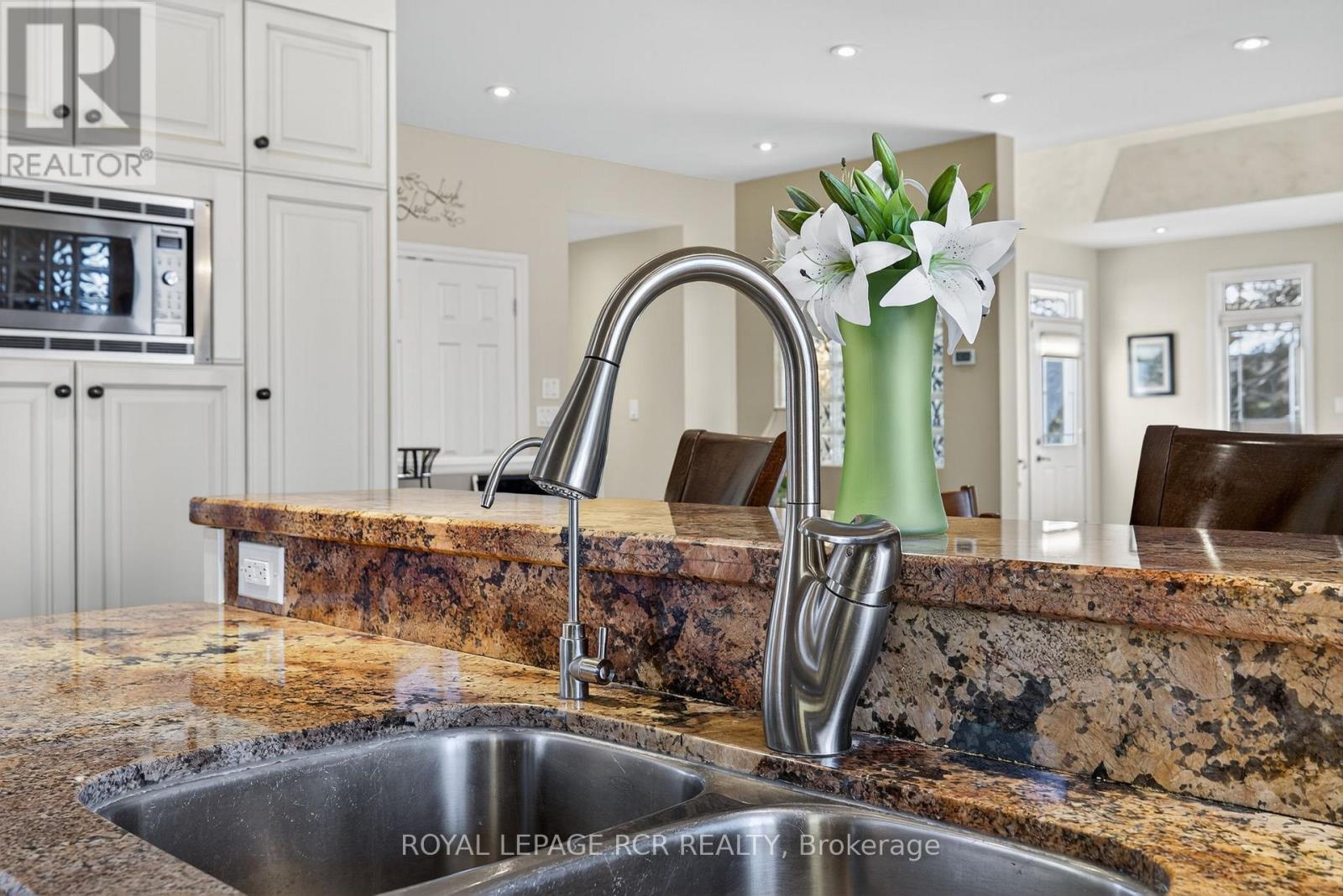 Executive bungalow on nearly an acre in town ! Welcome to unparalleled luxury in this custom stone and stucco bungalow boasting over 5000 sq ft of total finished living space on a rare, almost one acre lot right in town with an oversized triple attached garage-approx 1350 sq ft ! The main floor features an impressive foyer leading to an open concept layout. The gourmet kitchen is an entertainers dream, featuring a breakfast bar, pot and pendant lighting, a cozy window seat with hidden storage, pullout shelves in pantry, and a cleverly hidden TV. The space flows seamlessly into the living room, highlighted by a four sided gas fireplace and beautiful hardwood flooring. The primary suite is a private retreat with a walkout to the side yard, a large walk in closet & stunning ensuite with heated floors. A separate walk-down from the mudroom leads to the fully finished lower level, which features a possible in-law setup. It includes 2 bedrooms 1 & 1/2 bathrooms, a second kitchen and a huge rec room with unique colour changing in-ceiling rope lighting & pot lights. The basement also includes an additional hookup for laundry + 3 cold cellars. Recent mechanical updates include 2 new furnaces (2021), 2 new AC (2021) and a UV air filtration system, whole home water treatment system and reverse osmosis system (2021) as well as leaf gutter protection (2021) with lifetime transferable warranty. A spacious, fully fenced backyard gives privacy and outdoor enjoyment! This truly unique and stunning property offers space, luxury and convenience that is second to none! (id:64974)