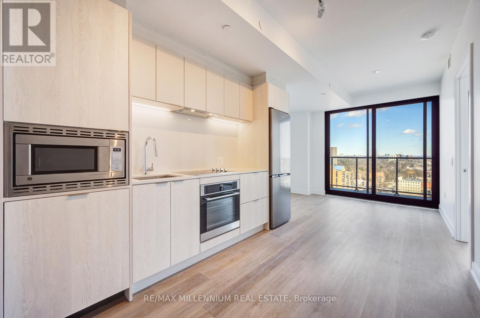 Take advantage of this well-designed 1+den suite featuring a functional layout and a versatile den that can easily serve as a second bedroom, nursery, or private home office. The contemporary kitchen is equipped with stainless steel appliances and elegant stone countertops, offering both style and practicality. Floor-to-ceiling windows fill the living space with natural light and lead to a private balcony. The suite includes two full bathrooms, along with convenient in-suite stacked laundry. Ideally located just minutes from Square One Shopping Centre, Cooksville GO Station, and Trillium Health Partners - Mississauga Hospital, with quick access to major highways including Queen Elizabeth Way and Highway 403. Enjoy upscale building amenities including 24-hour concierge, a state-of-the-art fitness center, and rooftop terrace with BBQs. Includes 1 parking space and 1 locker. An exceptional opportunity to enjoy sophisticated urban living in one of Mississauga's most connected neighborhoods. (id:64974)