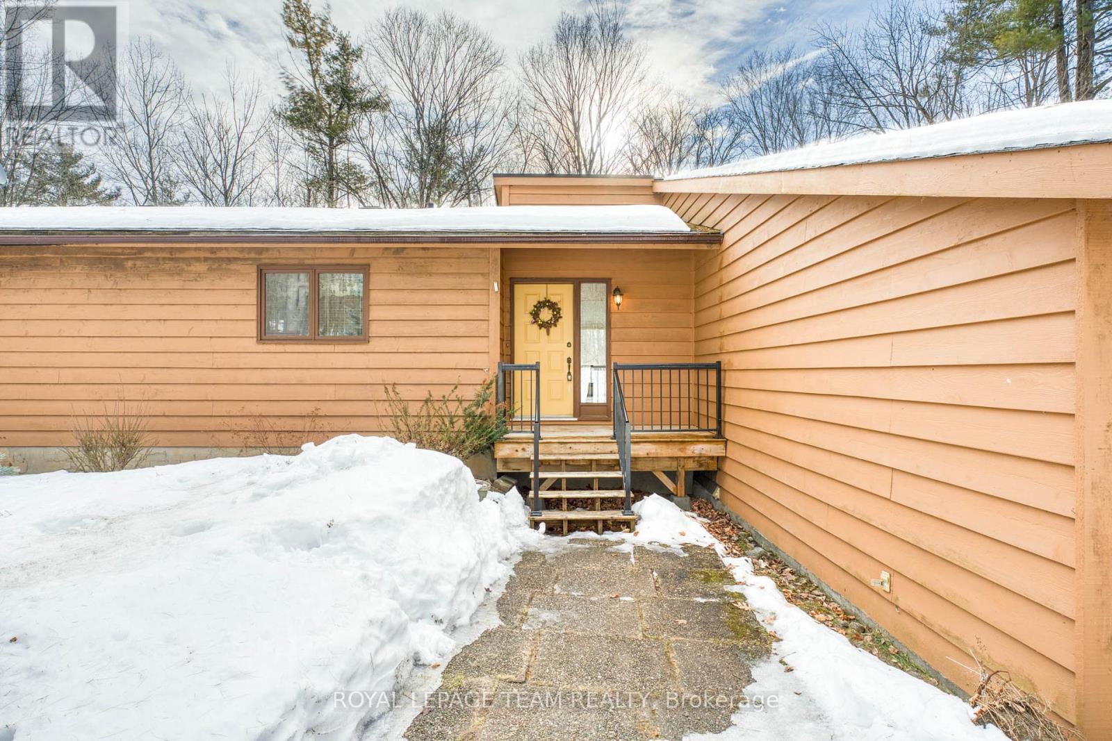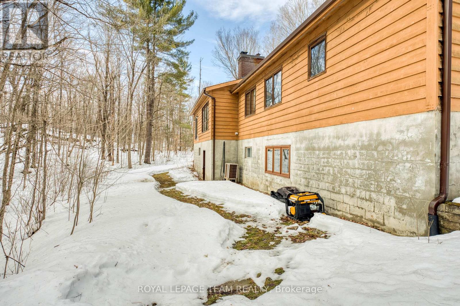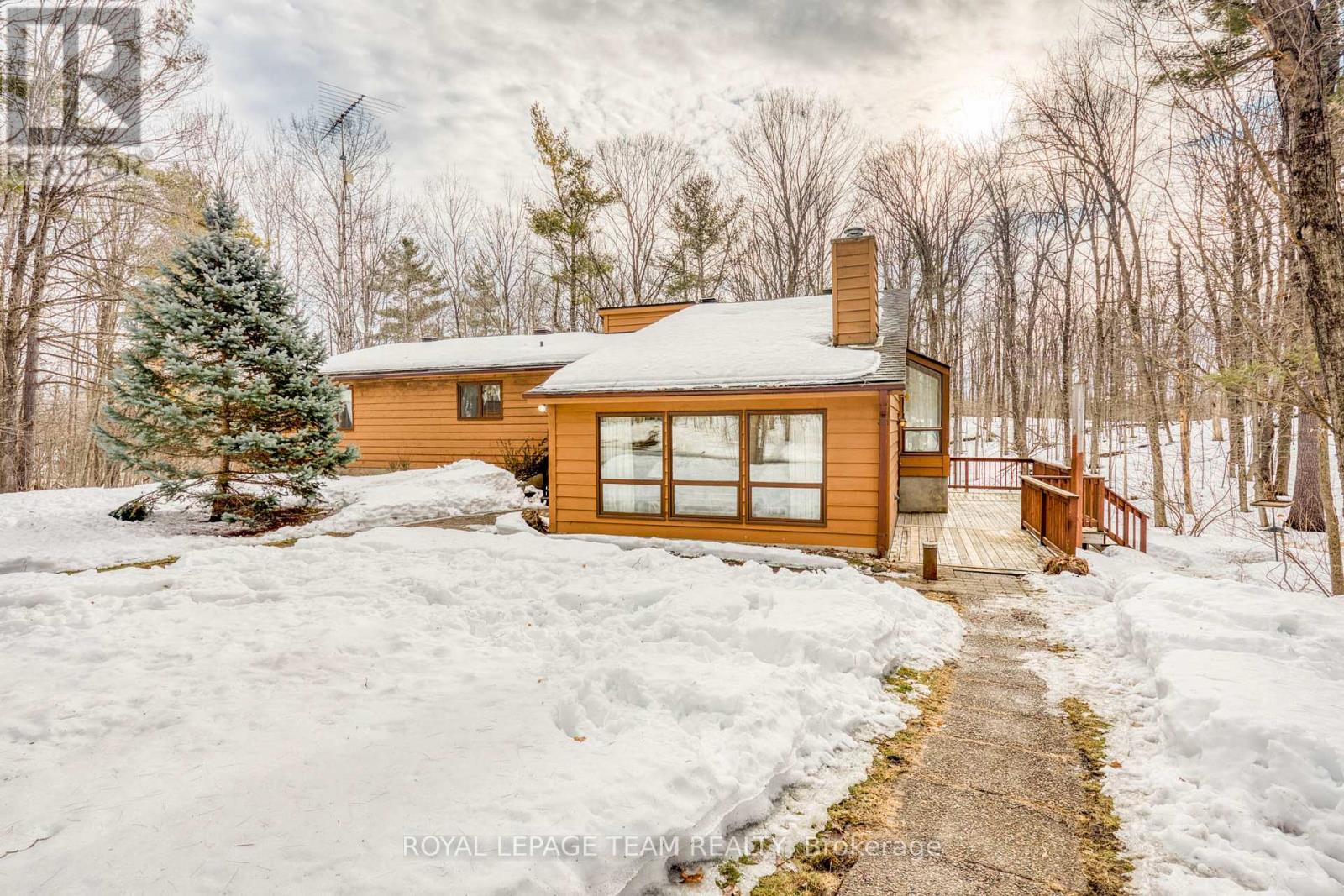 PEACE AND QUIET!! Impressive family home located on a beautifully treed 3.78 acre corner lot with loads of road frontage. Efficient kitchen with a sun filled eating area. The dining room with hard wood floors is conveniently located next to the kitchen. From the dining room you have access to a spacious living room with vaulted ceilings and a stone fireplace!!. The sunken family room also has vaulted ceilings, a fireplace and access to a private deck. A prefect spot for your next BBQ!! Three well sized bedrooms and the primary bedroom is complete with a walk in closet and a three piece ensuite. The laundry room is conveniently located on the main floor. The HUGE unspoiled lower level has plenty of room for a future games room or hobby room + loads of space for a workshop for your special hobbies. Plus it has a direct walk out to the back yard!! Located on a quiet country road with easy access. Early possession!! (id:64974)