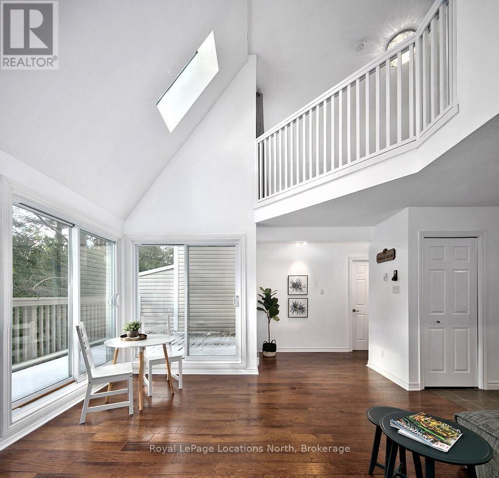 Client RemarksBright & Private Condo Near The Blue Mountains! Discover this well appointed 2-bedroom, 2-bathroom condo ideally located just minutes from the ski hills of The Blue Mountains, downtown Collingwood, and the shores of Georgian Bay. Surrounded by mature pine and spruce trees, this home offers the perfect blend of natural light and privacy. Inside, large windows fill the open-concept living space with sunlight, while the natural gas fireplace adds warmth and charm. The kitchen and living room flow seamlessly, creating an inviting space for entertaining or relaxing after a day on the slopes. Two updated sliding glass doors lead to a spacious upper-level patio - perfect for enjoying outdoor living in the warmer months. The upper level is dedicated to a serene primary suite, featuring a bright 4-piece ensuite, oversized windows, and a skylight that bathes the room in natural light. The convenient laundry room includes a brand new stackable washer and dryer. Whether you're looking for a full-time home, weekend getaway, or investment property, this condo offers the ideal Collingwood lifestyle - close to nature, recreation, and everything the area has to offer. Reach out to Maggie or myself today to book your personal viewing and experience it for yourself! (id:64974)