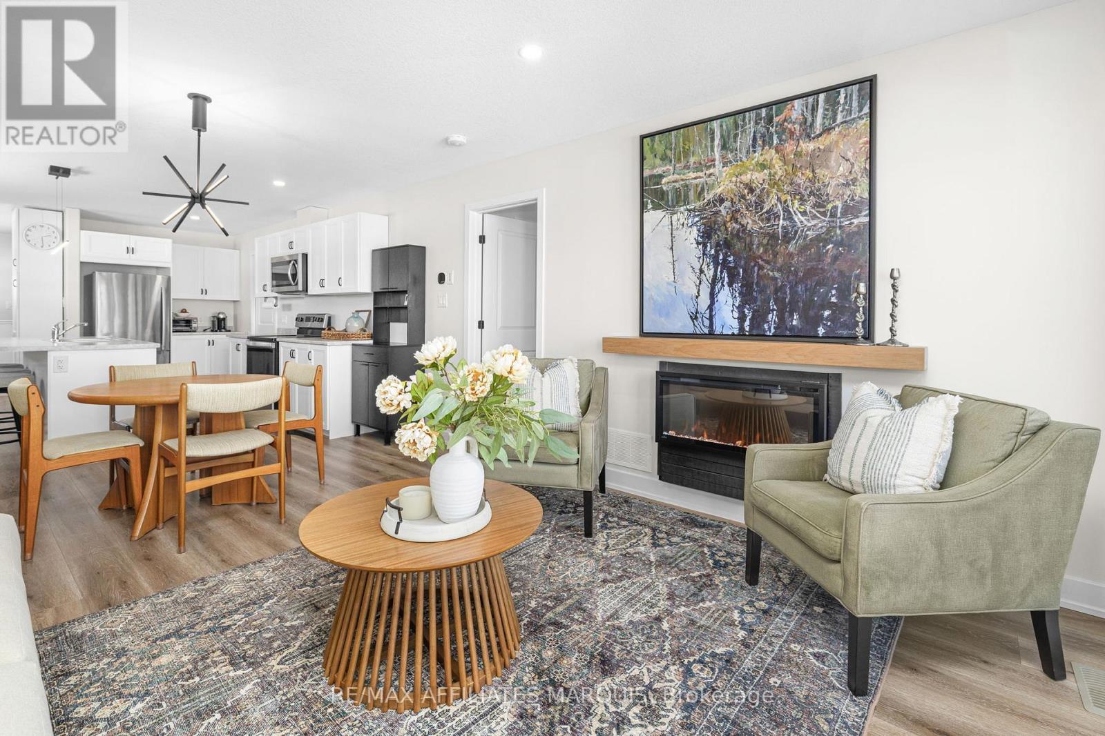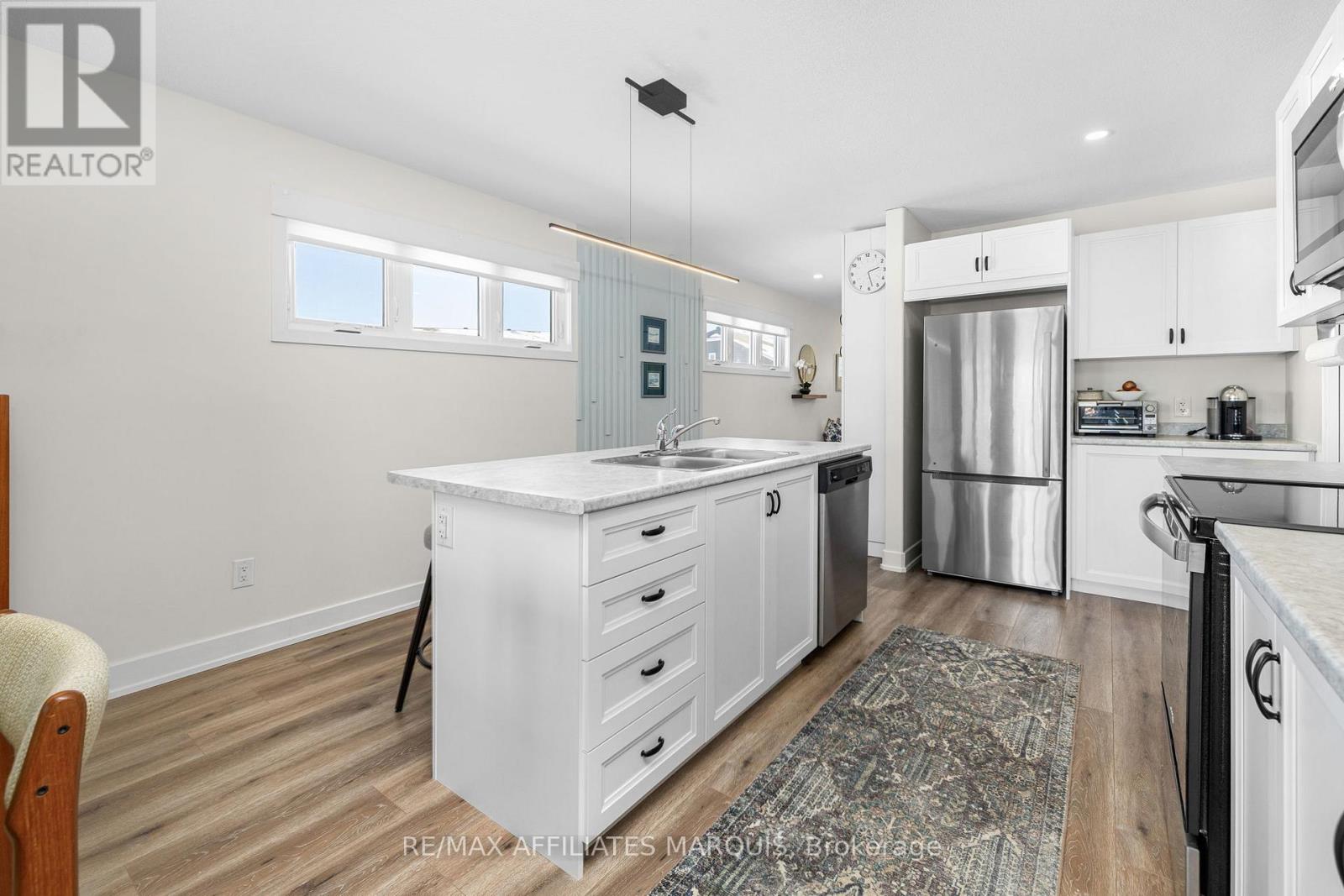 Welcome to 182 Ferrara Drive - a 2021-built bungalow townhome offering the ease of main-floor living on a large pie-shaped lot with valuable side-yard space. Set on a quiet stretch of Ferrara and just steps from the Cataraqui Trail, this home blends low-maintenance living with everyday access to outdoor recreation.The wider lot provides additional breathing room between neighbours, more natural light, and a fully fenced yard with flexibility for pets, gardening, or relaxing outdoors - an uncommon feature in bungalow townhome living. Inside, the bright open-concept main floor is designed for comfort and functionality. The kitchen flows seamlessly into the dining and living areas, creating a welcoming space for both daily living and entertaining. Two well-proportioned bedrooms are located on the main level, including a primary suite with a walk-in closet and private three-piece ensuite. A dedicated mudroom with main-floor laundry - complete with washer, dryer, and laundry tub - adds practical convenience, while a stylish powder room is thoughtfully positioned just off this space. The lower level expands the home with a generous family room, ample storage, and a beautifully finished full bathroom featuring a tub and heated floors - a comfort-forward upgrade that adds lasting value. With an attached garage, modern systems from its 2021 construction, and a layout well suited to down-sizers, professionals, or small families, 182 Ferrara Drive offers strong value in an established Smiths Falls neighbourhood close to parks, shopping, and amenities. (id:64974)