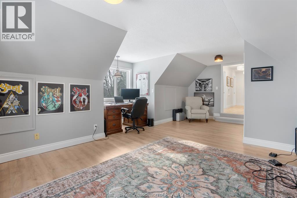 This well-maintained 2.5-storey home, built in 1985, offers an impressive 6 bedrooms and 3.5 bathrooms, with a bathroom conveniently located on every level. Thoughtfully updated throughout, the home features a modernized kitchen, updated bathrooms, and refreshed flooring, all complemented by high ceilings and plenty of natural light. A formal dining room provides the perfect setting for hosting and family gatherings. The spacious primary bedroom includes a private ensuite and a walk-up bonus room, ideal for a home office. A second kitchen in the basement adds flexibility for extended family or in-law potential. Set on a nearly half-acre lot, the property also boasts a durable metal roof, circular driveway, and double attached garage, delivering both functionality and standout curb appeal. Short walk to the Lake as well, desirable location. Even better in person, call today to book your private showing! (id:64974)