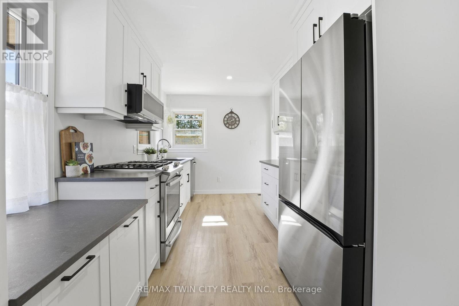 Country properties of this calibre are rarely offered. Welcome to 1822 Spragues Road - a beautifully upgraded red brick bungalow set on 1.56 acre lot. From the moment you arrive, the circular drive, landscaped front yard, and large detached garage create exceptional curb appeal. Step inside to find luxury vinyl plank flooring and recessed lighting throughout the main level, setting the tone for a bright, modern interior. The open-concept living and dining area features a large front-facing window and flows seamlessly into the fully renovated custom kitchen. Designed for both style and function, it showcases leathered quartz countertops, a propane stove, new dishwasher, and a sleek slim rangehood/microwave combination. Three well-sized bedrooms with closets are located on the main floor, along with an updated 4-piece bathroom. The finished basement expands your living space with an oversized bedroom, a 2-piece bathroom (with room to add a shower), and a versatile recreation area ideal for a home office, games room, or family retreat. Ample storage throughout - including coat closets, linen closets, and pantry space - ensures practical day-to-day living. Outdoors, privacy is paramount. Towering cedars frame the property, while the heated in-ground saltwater pool is surrounded by multiple lounging areas - perfect for entertaining, relaxing in the sun, or enjoying evenings beside the fire bowl. For those seeking a touch of country living, the property also features a chicken coop and multiple fruit trees. The location is exceptional: situated on the Ayr school bus route, directly across from Sudden Tract Nature Trail, just 3 minutes to Cambridge, 6 minutes to Ayr, 8 minutes to Paris, and 10 minutes to Highway 401. Major updates include: Furnace & A/C (2020), Attic Insulation (2020), Windows & Doors (2021), Well (2021), Septic (2021), Pool (2021), and more. Full upgrade list available upon request. (id:64974)