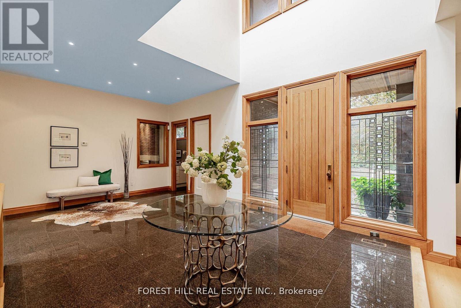 **Architectural**------- BOLD & SOLID & MODERN & UNIQUE ------- meticulously designed by Toronto's premier residential architect, "Lorne Rose", Inspired by Frank Lloyd Wright's iconic Prairie Style, this architectural gem blends seamlessly into its strong horizontal lines, open floor plans, and connection to nature, and this Prairie-Style Home was built for its owner--has been loved by its owner for many years. This executive home residence boasts an elegant circular driveway with 3cars garage, resort-style patio wrapped both E.S sides of yard. Inside, a breathtaking 20ft cathedral ceiling with skylights entrance foyer, the living room showcases a stunning floor-to ceiling stone gas fireplace, generous principal room with hi ceiling, perfect for entertaining. The dining room offers a stunning-lush garden views with natural light, easy access to a terrace for retreat. The spacious-private family room features a wood-burning fireplace with abundant natural sun lights. The chef-inspired kitchen is equipped with premium appliance and a large eat-in area ideal for family gatherings, and private access to a wrap-around terrace complete with a pizza oven. Upstairs, providing airy-atmosphere from multi-skylights & ample windows all around. The luxurious primary suite offers a cathedral ceiling, fireplace including its own private ensuite and walk-in closet. The additional bedrooms have all double closets, lots of windows for natural sunlights, providing comfort and functionality. The fully finished lower level with separate entrance is designed for entertaining and relaxation, featuring a large recreation room, 2 bed rooms, a spacious laundry room, and a full bathroom. (id:64974)