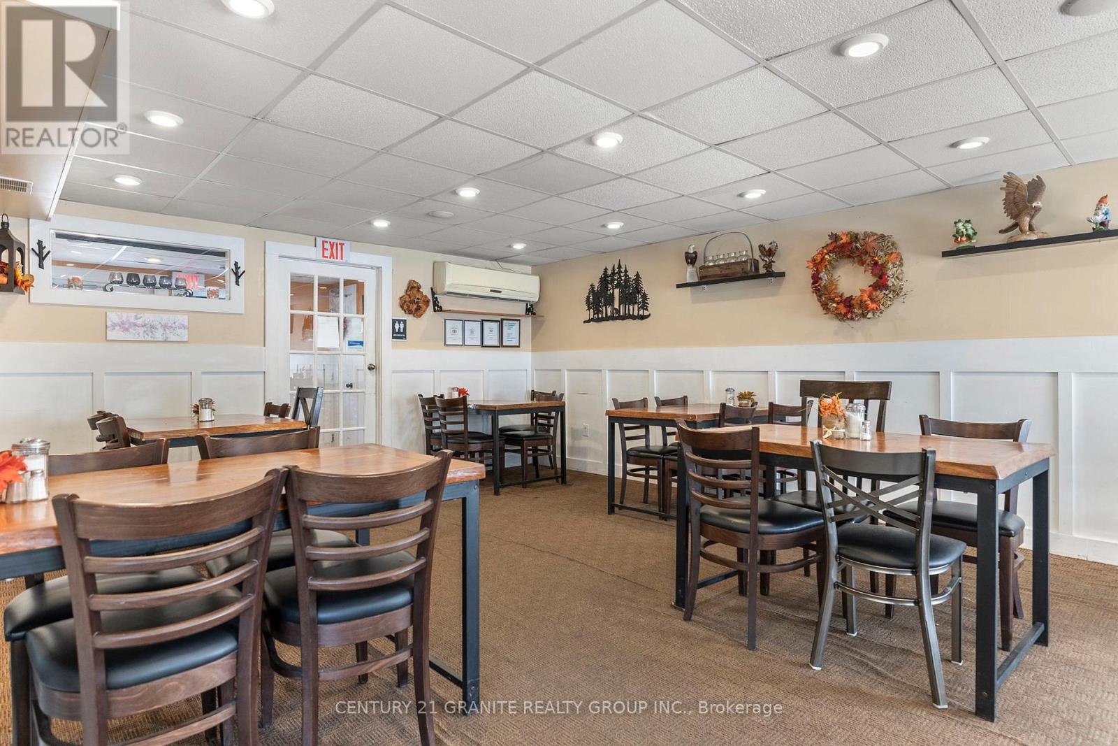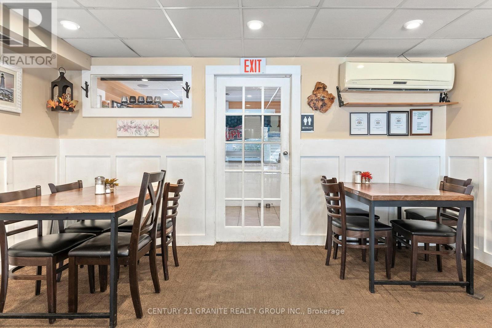 Ready to bring your business dreams to life? This turn-key restaurant comes with a bright and spacious 2-bedroom apartment (574 sq ft) above-perfect for living where you work. The main floor offers a fully equipped restaurant setup with Main Street commercial zoning, giving you the freedom to run a cafe, retail shop, takeover the very successful established restaurant or any venture you've been dreaming of. Enjoy the convenience of municipal water and the affordability of a private septic, plus a private parking lot for 8+ vehicles-a rare find in town! The restaurant is equipped with owned commercial appliances, male and female washrooms, foyer, 15x24 ft dining area with an additional 12.5x14ft flex space to accommodate more diners. Located just steps from downtown Bancroft, you'll benefit from high visibility and steady local traffic, surrounded by other established businesses in one of Ontario's fastest-growing small towns. Whether you're an entrepreneur ready to serve the community or an investor looking for a smart mixed-use opportunity. Live upstairs. Work downstairs. Grow your future-all right here in Bancroft. The restaurant is sold fully equipped. (id:64974)