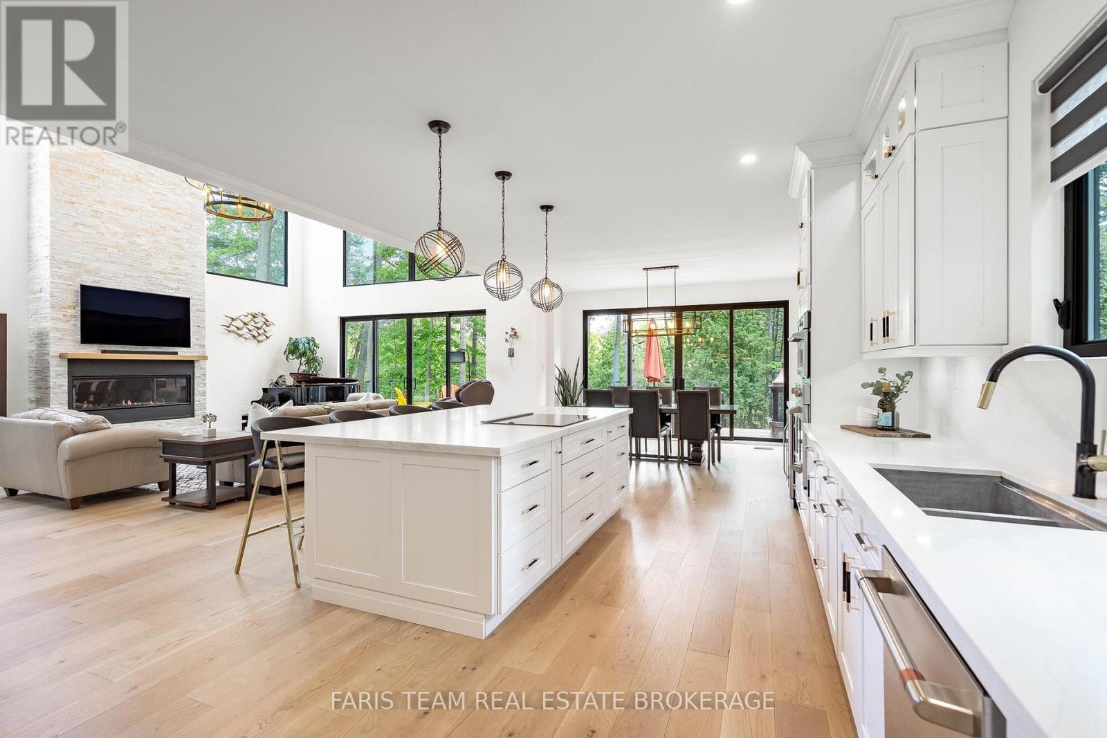 Top 5 Reasons You Will Love This Home: 1) Exceptional waterfront home showcased on the A&E series Lakefront Luxury, a testament to its design, setting, and standout appeal, experience tranquil riverside living with 55' of direct frontage on the scenic Nottawasaga River, set on a deep 290' treed lot, complete with a private 5'x20' dock ideal for kayaking, paddleboarding, or fishing, with Georgian Bay just moments away 2) This newly built custom home is a visual standout from the moment you arrive, featuring 19' ceilings, oversized windows with views of the river and forest, and a striking wood staircase with glass railing creating an unforgettable entrance, along with a double garage and spacious driveway combining convenience with serious curb appeal 3) Designed to impress, the chefs kitchen offers ceiling-height cabinetry, quartz counters, under-cabinet lighting, thoughtful extras like built-in spice racks and garbage organizers, a large island with a built-in cooktop, premium built-in appliances, a coffee station, beverage fridge, and walk-in pantry complete the perfect space for gatherings of any size 4) Enjoy seamless indoor-outdoor living with double 12'x8' patio doors opening onto a glass-railed deck nestled among mature trees, along with a cozy stone gas fireplace, private home office, elegant powder room with heated floors, a practical mudroom, and engineered hardwood flowing throughout the main and upper levels for a cohesive upscale feel 5) The primary suite presents tray ceilings and a luxurious 5-piece ensuite with heated floors, rainfall shower with body jets, soaker tub, smart toilet, and smart mirror, alongside two additional upper level bedrooms, each featuring their own private ensuites, and a finished basement adding more versatility with two bedrooms, a kitchenette, gym/recreation space, and a 5-piece steam shower spa bathroom, with heated floors, for the ultimate in comfort and relaxation. 3,279 above grade sq.ft. plus a finished basement. (id:64974)