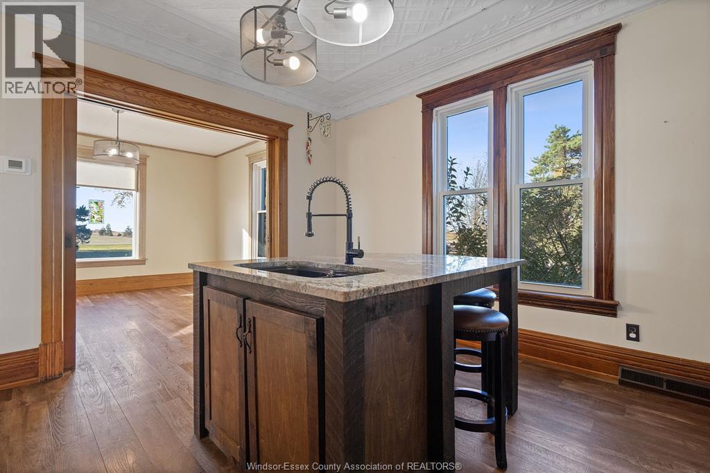 Welcome to this picturesque 2.4-acre country retreat, ideally situated on a paved road between Tilbury and Wheatley. This beautiful brick century home blends timeless charm with thoughtful modern updates—perfect for those seeking peace, space, and character. Step inside and fall in love with the craftsmanship and detail—original trim, stunning hardwood floors, tin ceilings, elegant sliding doors, and built-in features that tell a story of the home’s heritage. With 4 spacious bedrooms and 2.5 updated baths, this home offers room for the whole family to live, work, and play in comfort. Recent updates bring peace of mind, including a new roof, windows, furnace, A/C, plumbing, and electrical, all seamlessly integrated without losing the home’s vintage appeal. The attached garage adds convenience and everyday functionality. Outside, a winding driveway welcomes you home through mature trees, leading to three versatile outbuildings: A 45x80 Quonset shed with cement floor and hydro. An extra large former cow barn, also with cement and hydro—ready for your creative use. A third 32x48 workshop ideal for hobbies, storage, or all your toys! Whether you’re looking to start a hobby farm, garden, or simply enjoy the tranquility of country living, this property offers endless possibilities. Experience the best of rural living—where character, comfort, and opportunity come together. (id:64974)