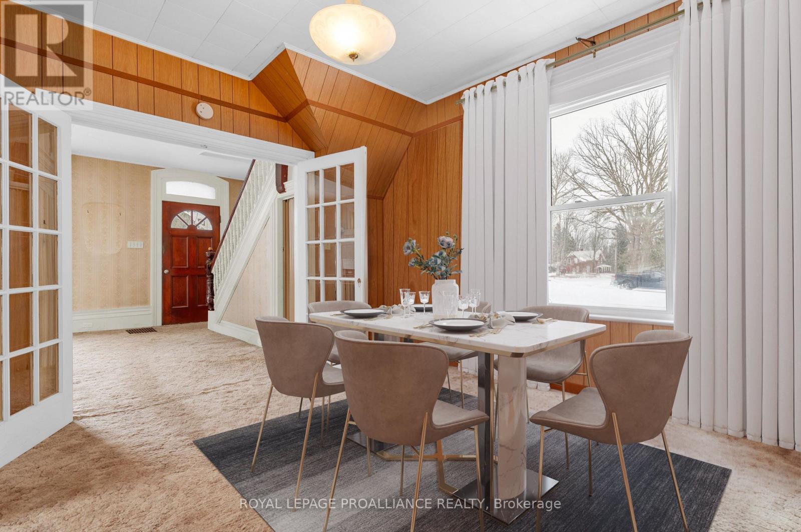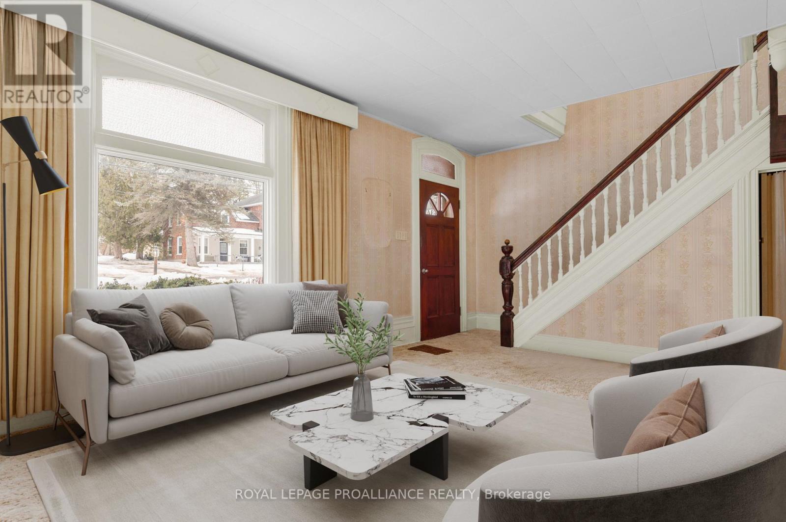 Located in the heart of the charming village of Stirling, this solid all-brick two-story century home sits on an oversized in-town lot with exceptional potential, including the possibility of severing the lot. Opportunities like this are rare, especially with full municipal services including water, sewer, and natural gas already available. This classic century home offers three bedrooms and two bathrooms, with hardwood flooring believed to be under the existing carpet, beautiful original trim, and a stunning staircase that reflects the character and craftsmanship of the era. The bright interior features large windows, many of which have been updated, allowing natural light to fill the home throughout the day. Outside, the detached double-car garage with loft provides excellent space for storage, a workshop, or future possibilities. Located just meters from the Heritage Trail and within walking distance to the shops, cafes, and amenities of downtown Stirling, the property is also only minutes from the mill Pond, the Trent River, and Oak Hills Golf Course. Enjoy the charm of small-town living while being just 20 minutes to Belleville or Quinte West. With its generous lot size, prime village location, and exciting development potential, this property offers a fantastic opportunity for homeowners, investors, or anyone looking to restore and enjoy a beautiful century home. (id:64974)