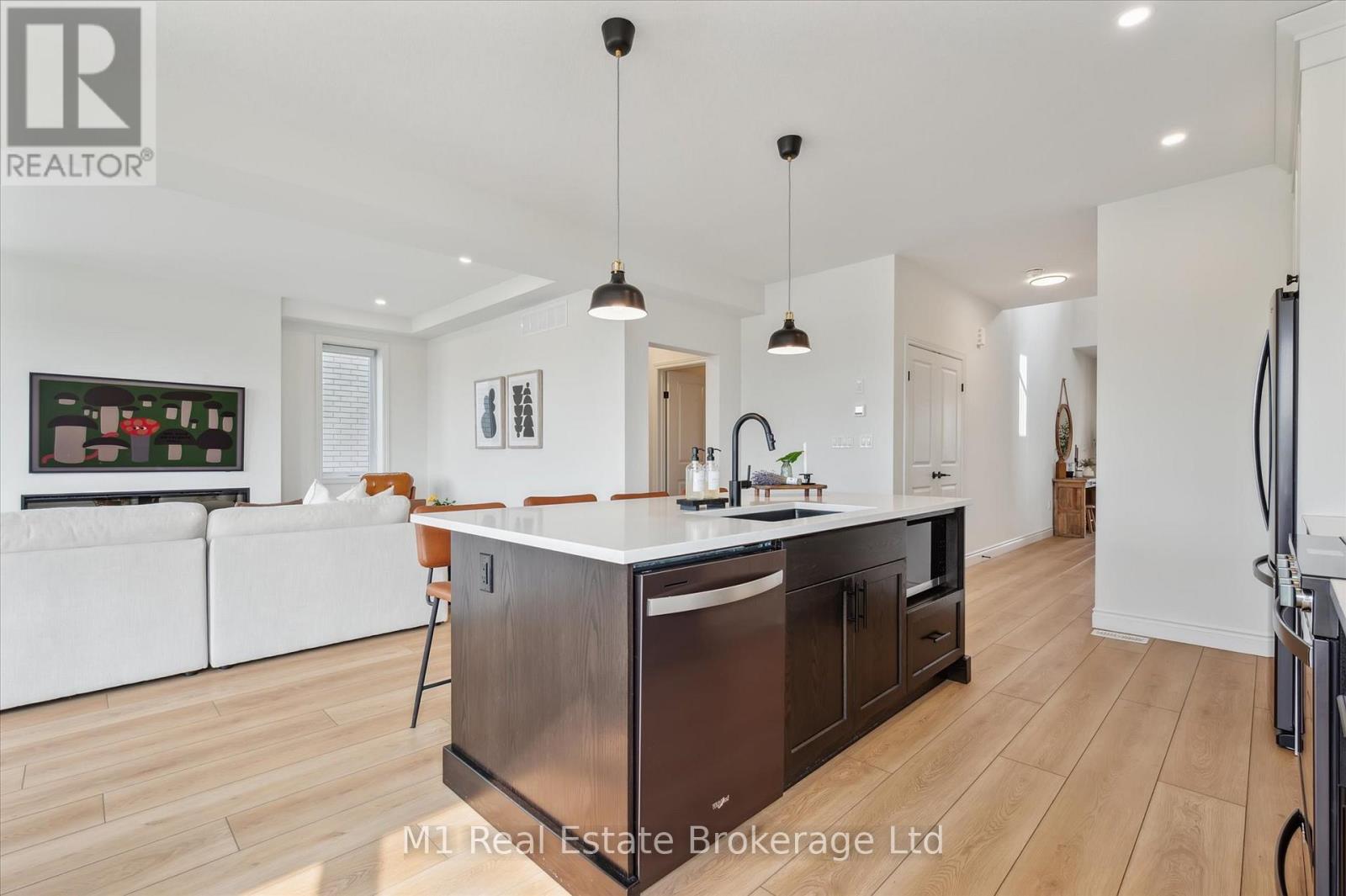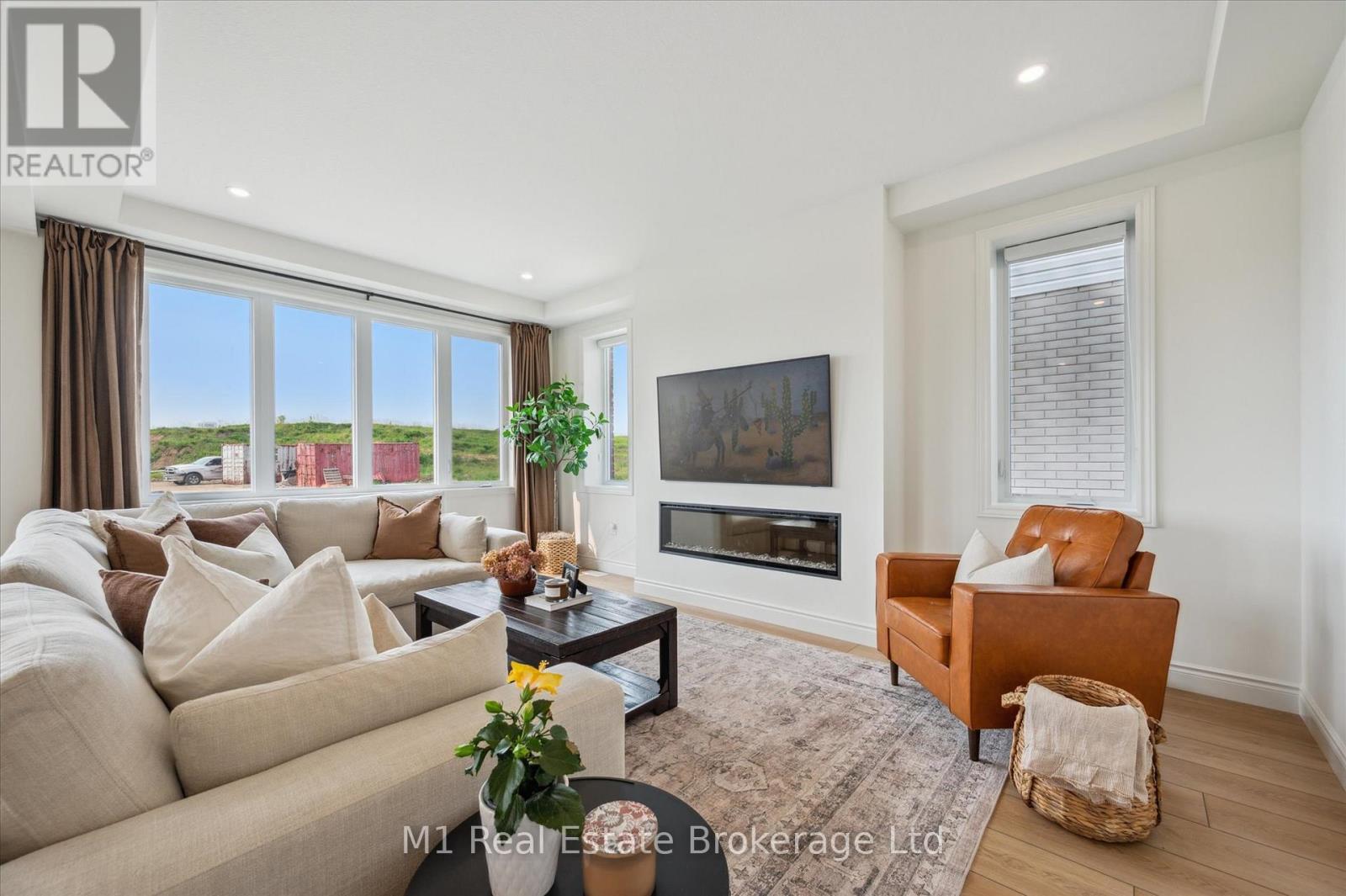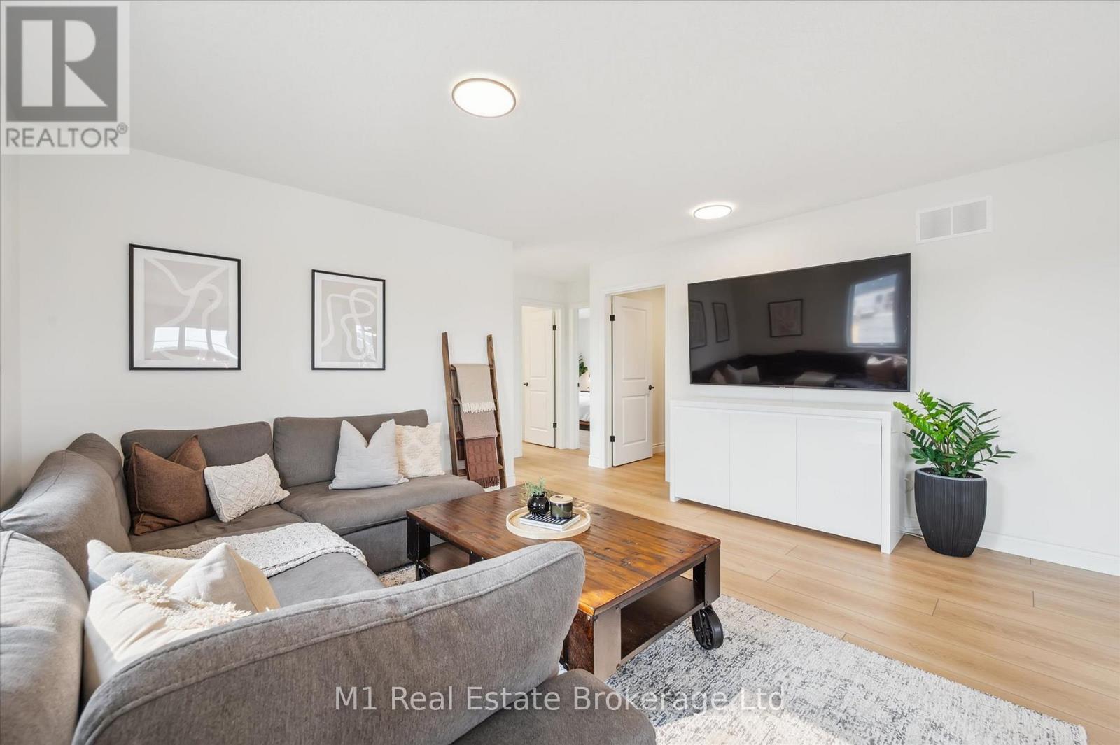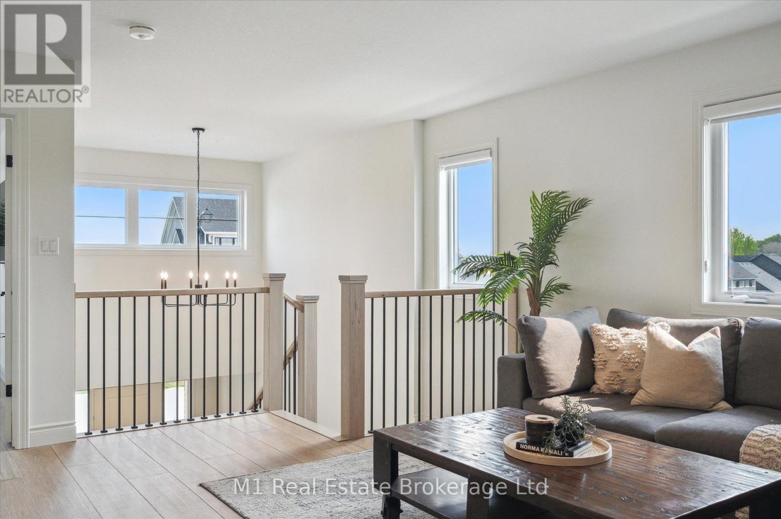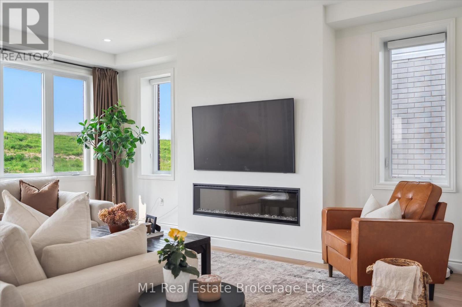 Step into this stunning, upgraded home in the heart of beautiful Elora. Built in 2024 by Granite Homes, this meticulously designed 3-bedroom, 2.5 bath home offers the perfect blend of modern luxury and everyday comfort. The gourmet kitchen features upgraded floor to ceiling cabinetry, granite countertops, and an extended island with ample storage, ideal for both cooking and entertaining. Enjoy the open concept living space, complete with wide plank luxury vinyl flooring, hardwood stairs, and an electric fireplace, adding warmth and ambiance. Upstairs; a bonus family room provides versatile space for a playroom, office, or media lounge. Natural light floods through the home through large windows, and custom window coverings add a refined touch. The unfinished basement is a blank canvas, featuring a bathroom rough-in, wet bar rough-in, legal egress window, and separate side entrance, offering incredible potential for a future in-law suite or income generating unit. Located in a charming, family friendly neighbourhood, you'll love being walking distance to downtown Elora's boutique shops, restaurants, and scenic trails that weave though this picturesque community. (id:64974)