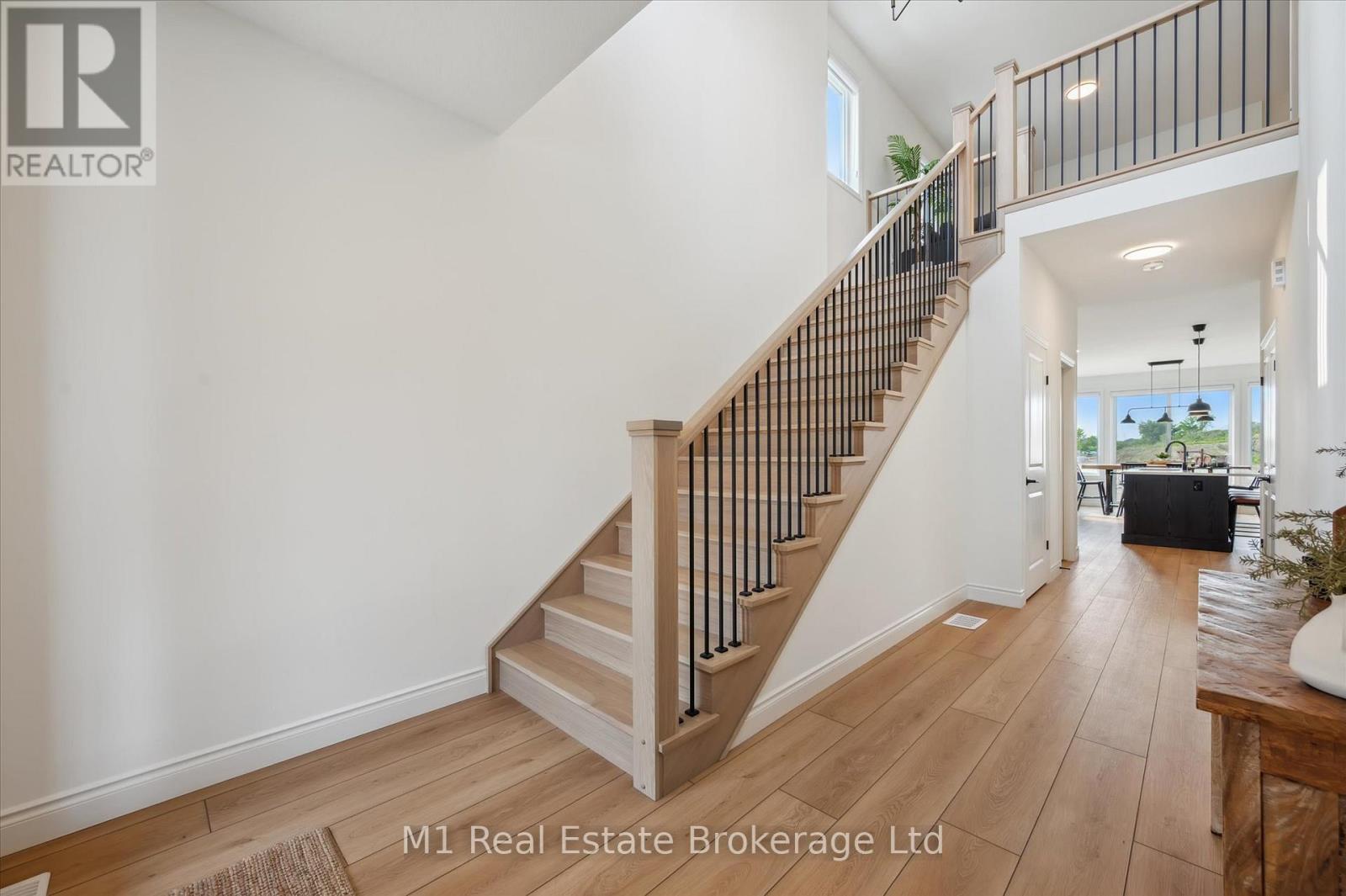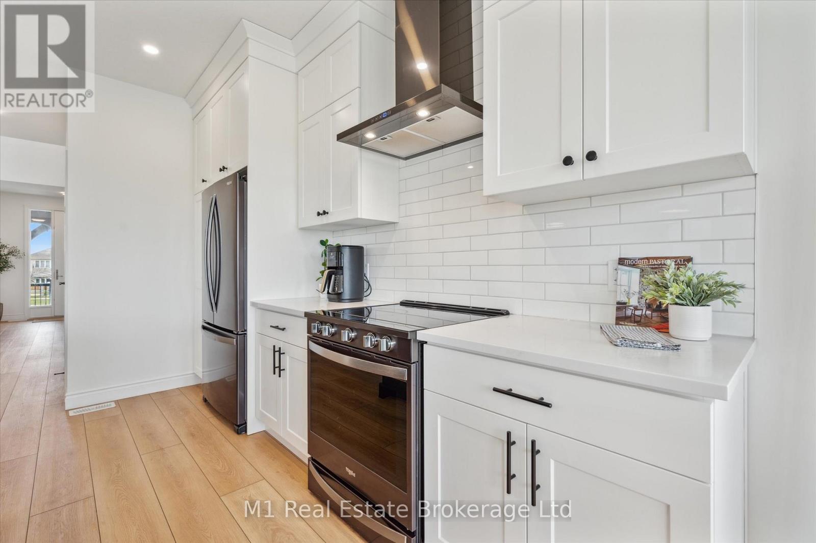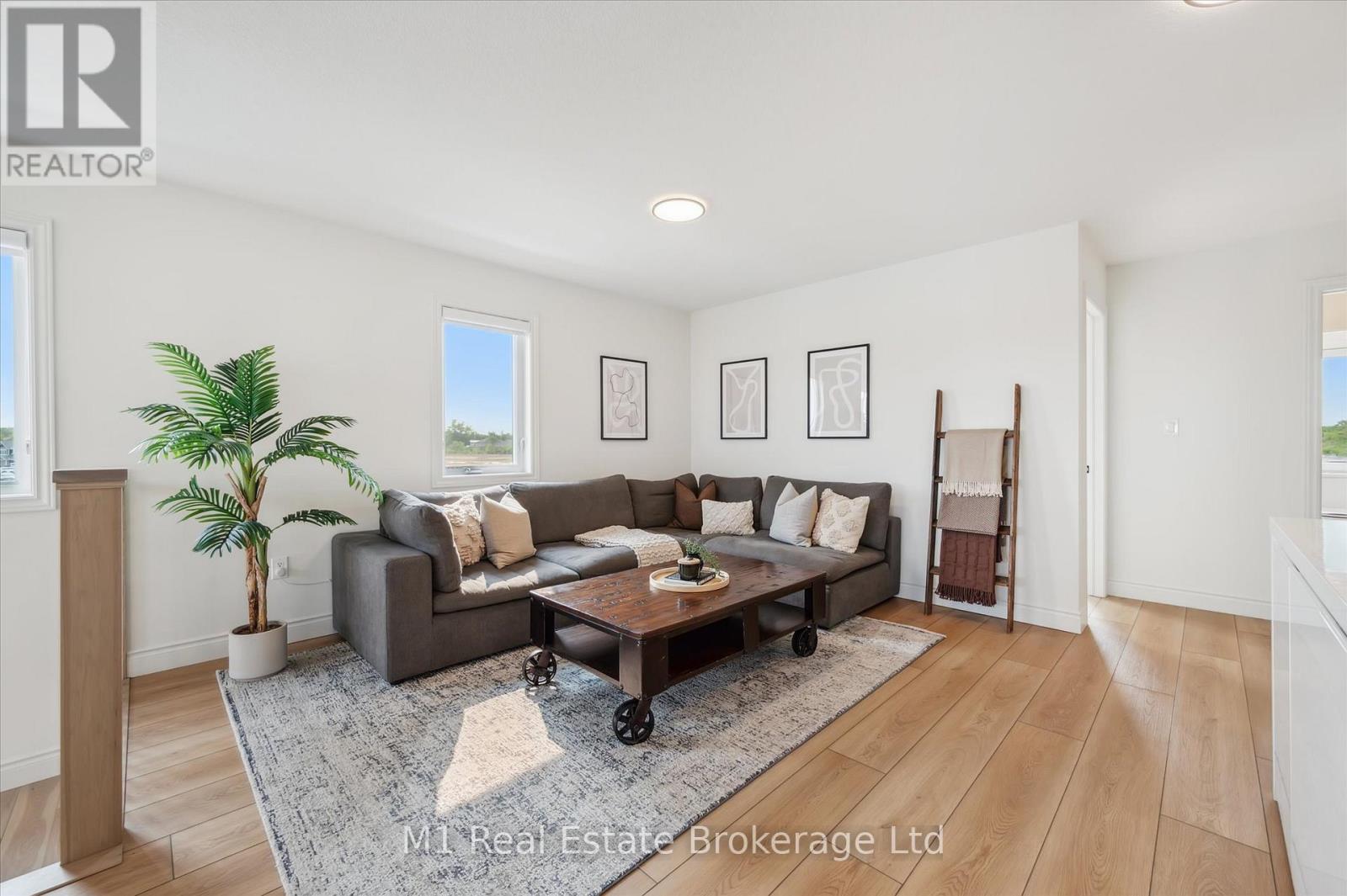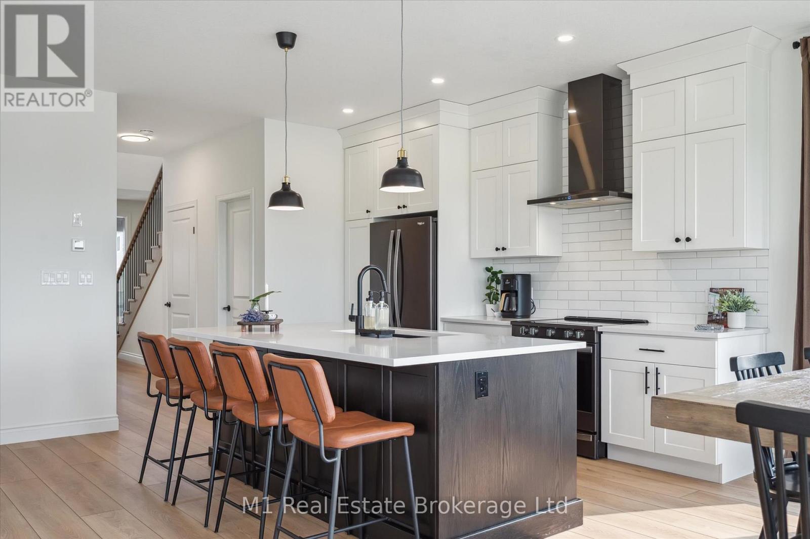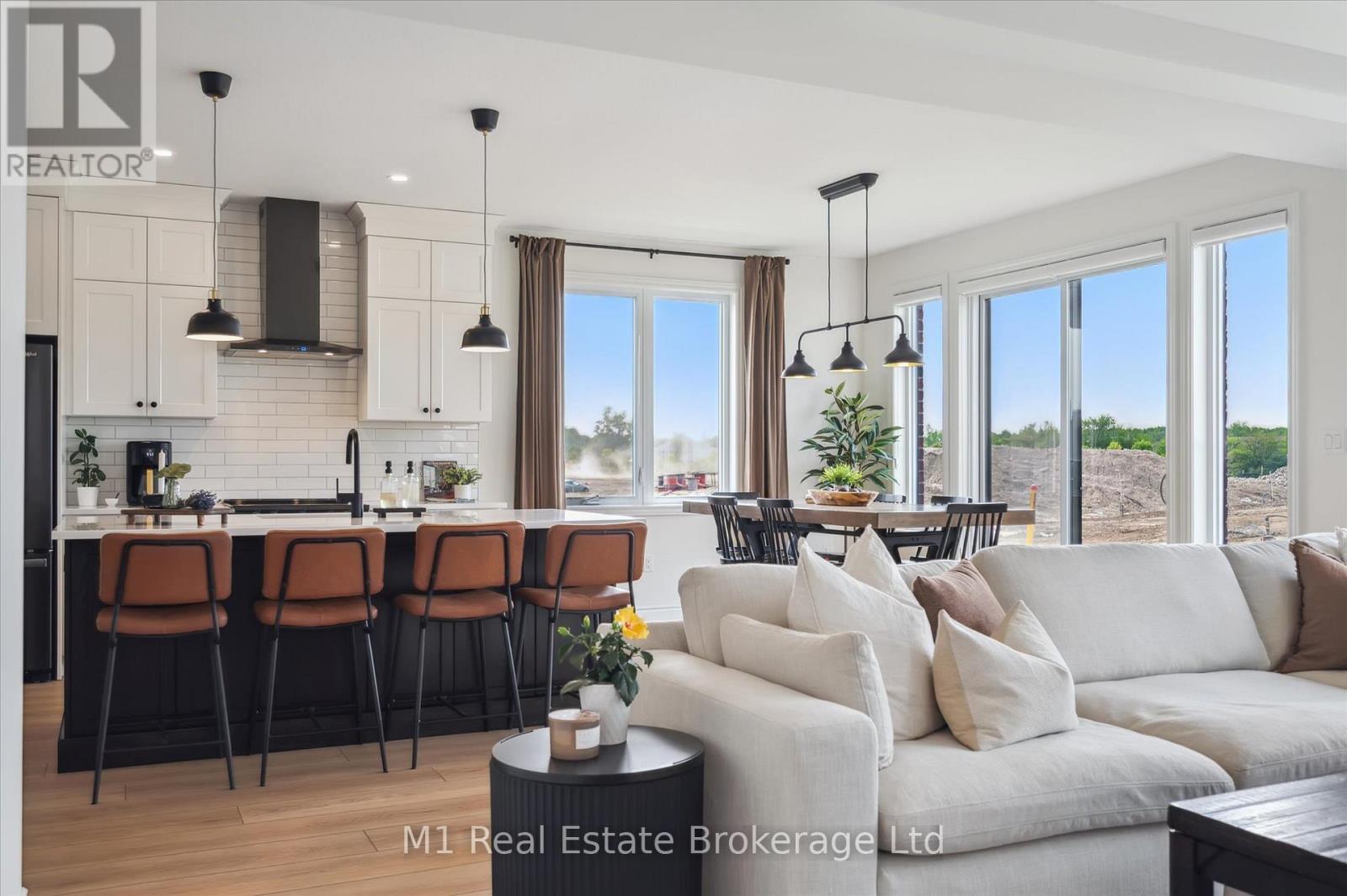 Step into this stunning, upgraded home in the heart of beautiful Elora. Built in 2024 by Granite Homes, this meticulously designed 3-bedroom, 2.5 bath home offers the perfect blend of modern luxury and everyday comfort. The gourmet kitchen features upgraded floor to ceiling cabinetry, granite countertops, and an extended island with ample storage, ideal for both cooking and entertaining. Enjoy the open concept living space, complete with wide plank luxury vinyl flooring, hardwood stairs, and an electric fireplace, adding warmth and ambiance. Upstairs; a bonus family room provides versatile space for a playroom, office, or media lounge. Natural light floods through the home through large windows, and custom window coverings add a refined touch. The unfinished basement is a blank canvas, featuring a bathroom rough-in, wet bar rough-in, legal egress window, and separate side entrance, offering incredible potential for a future in-law suite or income generating unit. Located in a charming, family friendly neighbourhood, you'll love being walking distance to downtown Elora's boutique shops, restaurants, and scenic trails that weave though this picturesque community. (id:64974)