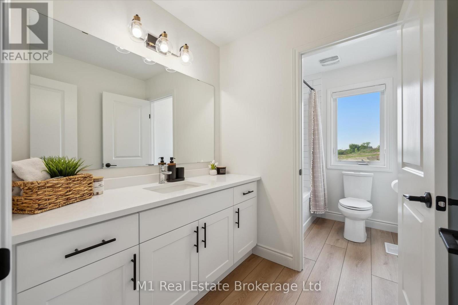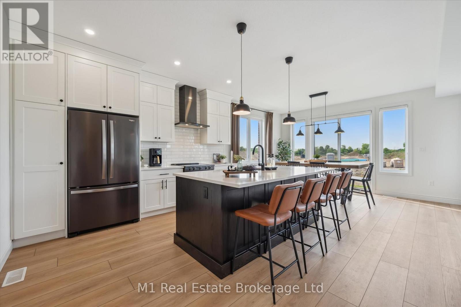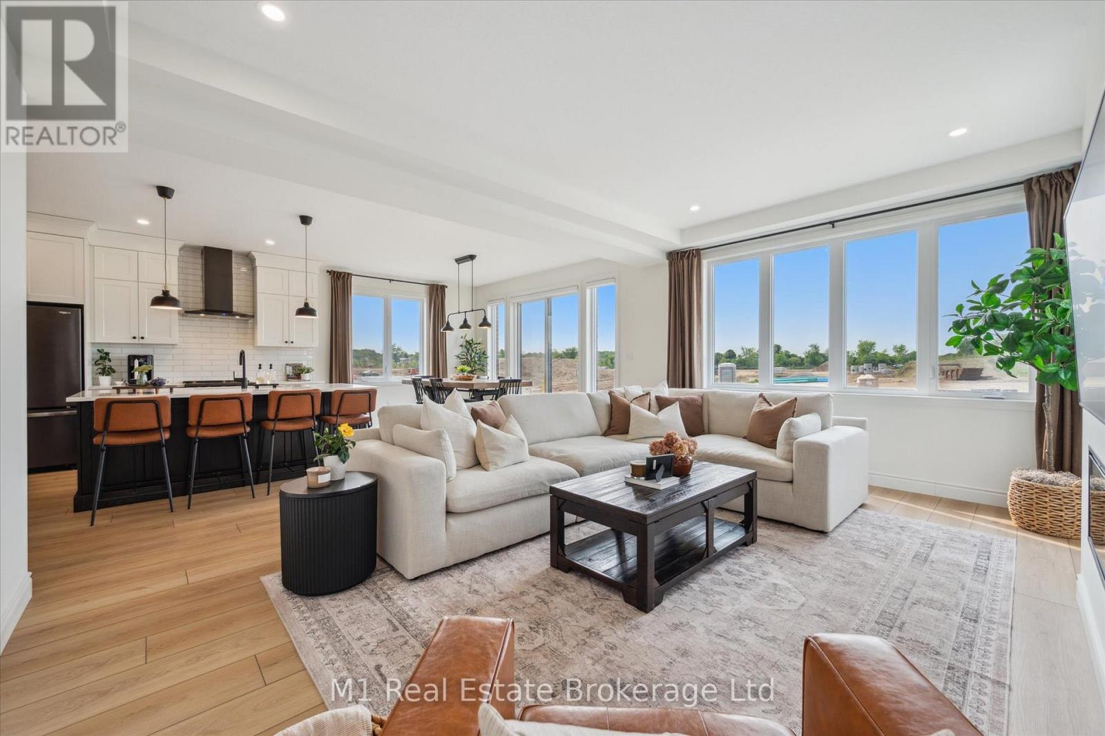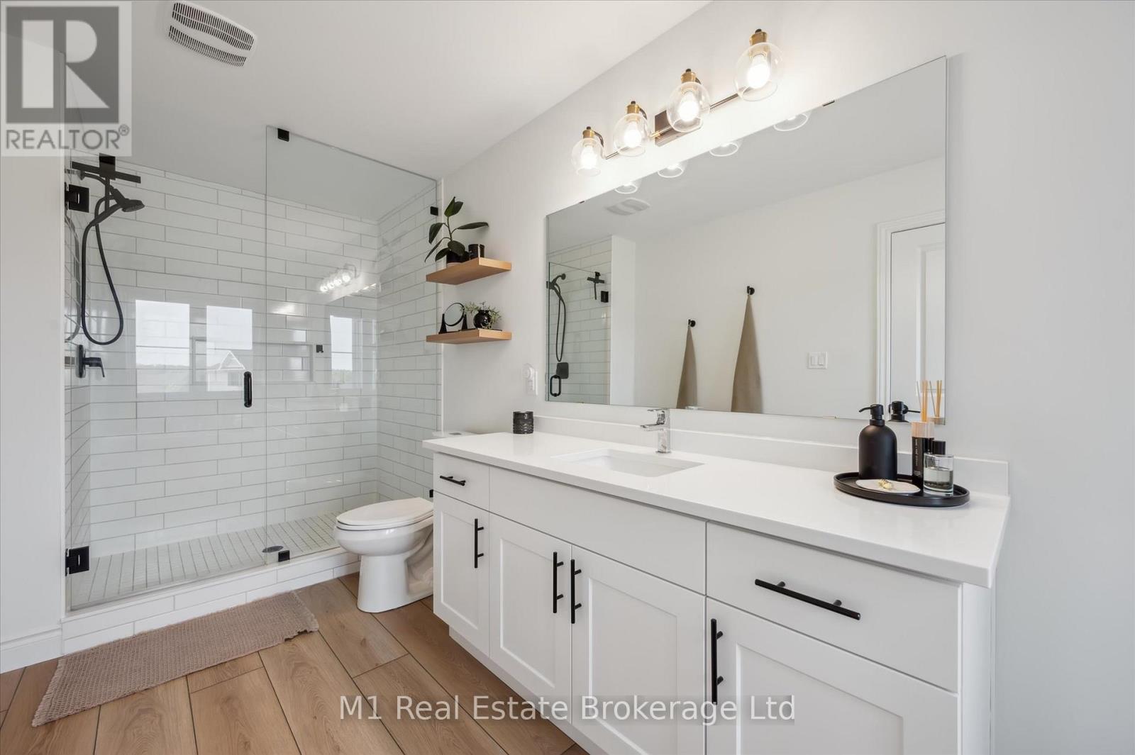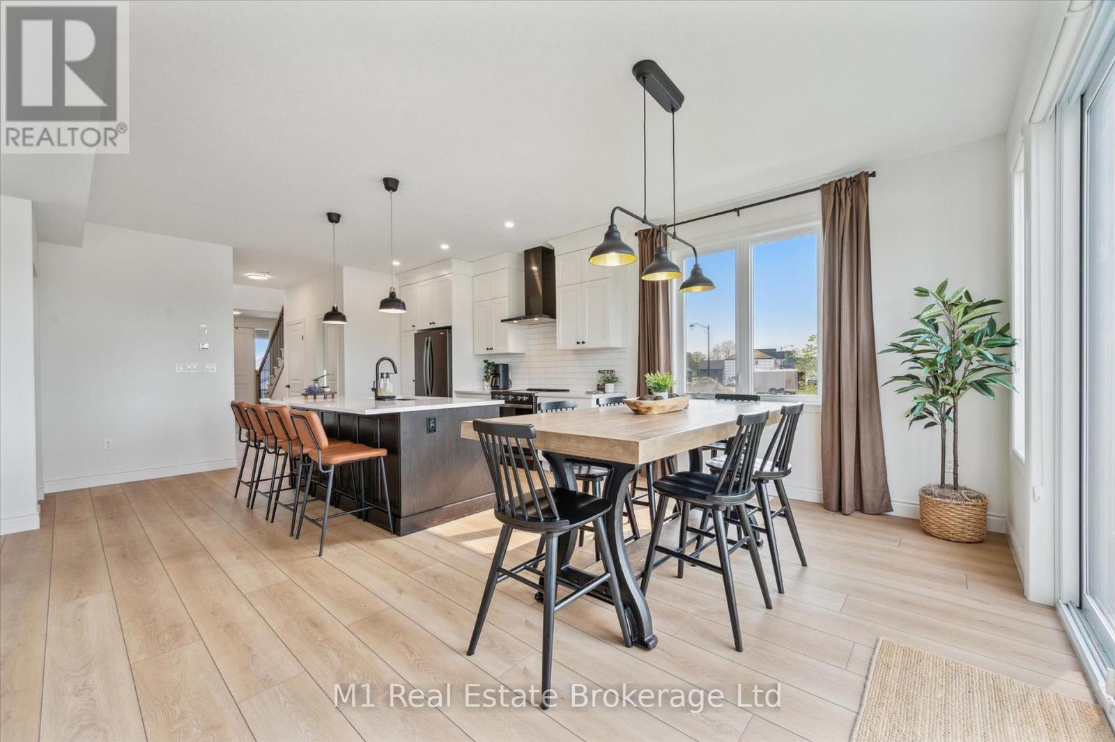 Step into this stunning, upgraded home in the heart of beautiful Elora. Built in 2024 by Granite Homes, this meticulously designed 3-bedroom, 2.5 bath home offers the perfect blend of modern luxury and everyday comfort. The gourmet kitchen features upgraded floor to ceiling cabinetry, granite countertops, and an extended island with ample storage, ideal for both cooking and entertaining. Enjoy the open concept living space, complete with wide plank luxury vinyl flooring, hardwood stairs, and an electric fireplace, adding warmth and ambiance. Upstairs; a bonus family room provides versatile space for a playroom, office, or media lounge. Natural light floods through the home through large windows, and custom window coverings add a refined touch. The unfinished basement is a blank canvas, featuring a bathroom rough-in, wet bar rough-in, legal egress window, and separate side entrance, offering incredible potential for a future in-law suite or income generating unit. Located in a charming, family friendly neighbourhood, you'll love being walking distance to downtown Elora's boutique shops, restaurants, and scenic trails that weave though this picturesque community. (id:64974)