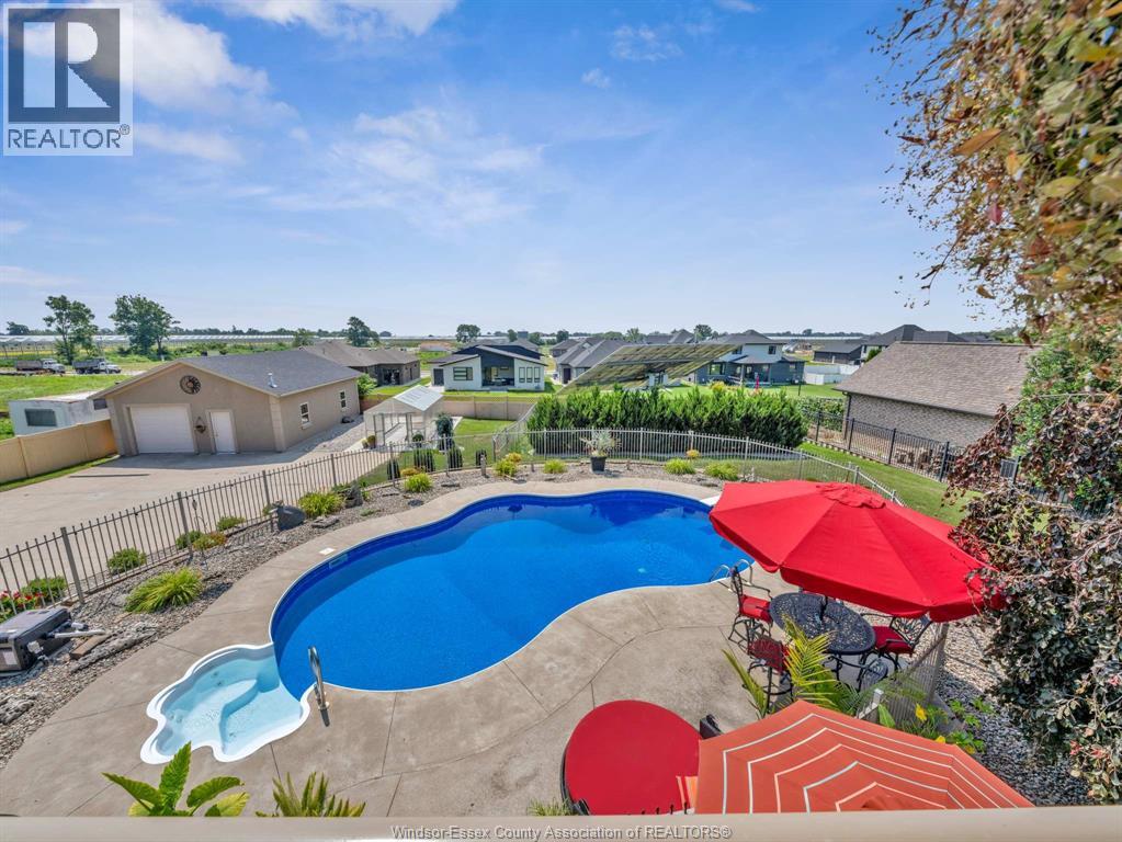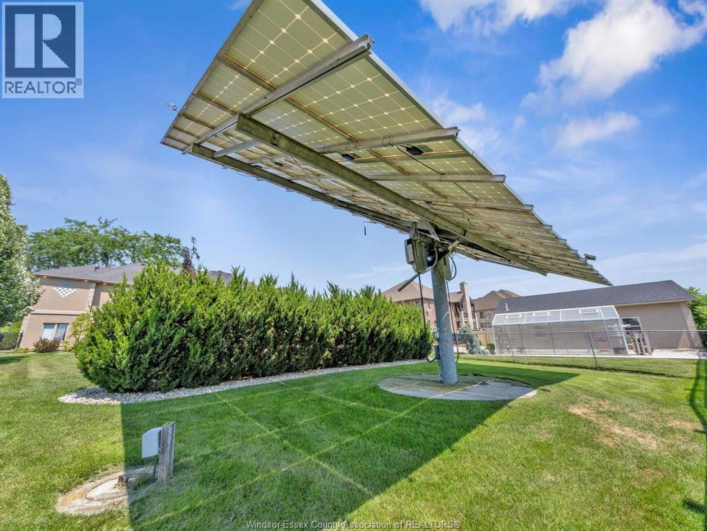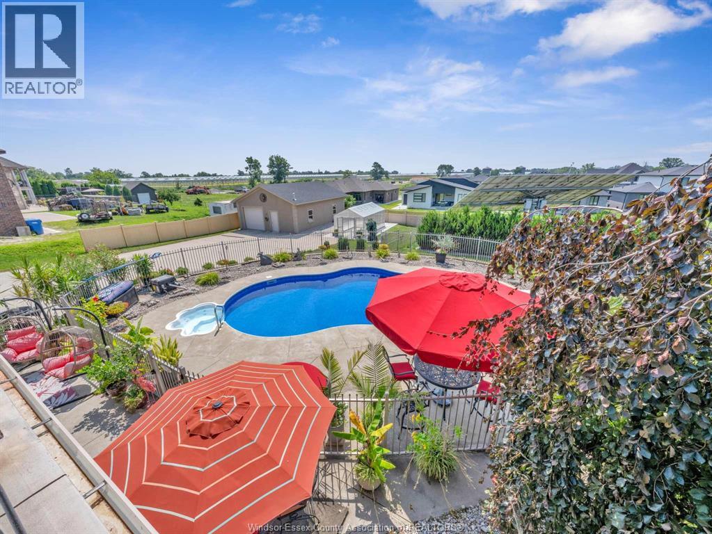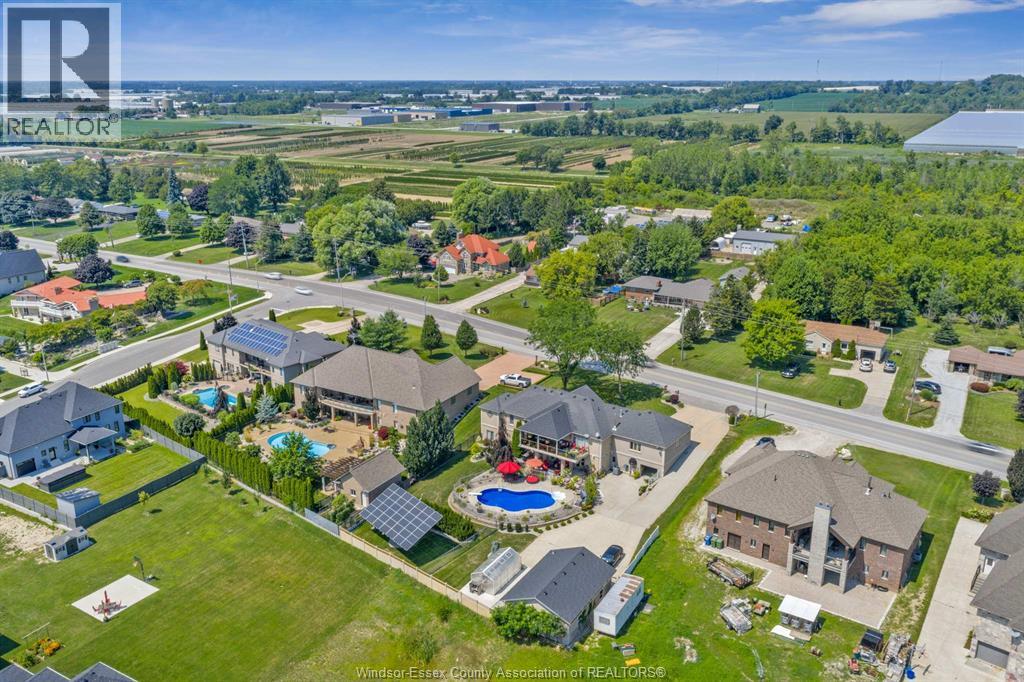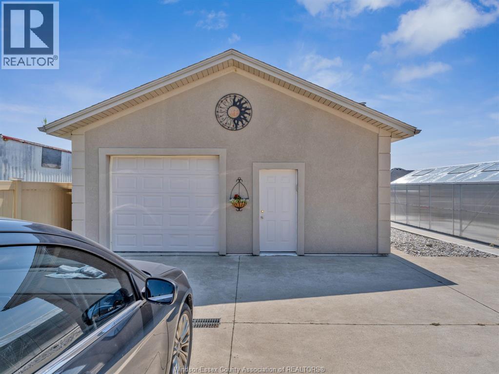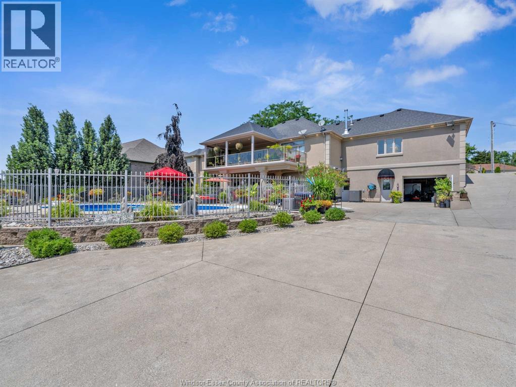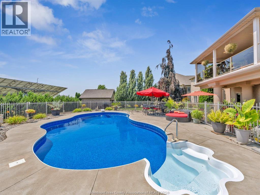 Two-Level Luxury Estate with Inground Pool, Lush Gardens, Shop, Greenhouse & Income Potential. A rare opportunity: two fully independent living spaces in one exquisite home—each with its own kitchen, living areas, bedrooms, & baths. This 5-bed, 4-bath estate features a gourmet kitchen w/ custom granite, cabinetry, walk-in pantry & custom floors. The main level offers a gas fireplace, main floor laundry, walkout to partially covered balcony, refined finishes & a serene primary suite w/dual walk-ins & spa-like ensuite. The lower level includes 2 bedrooms, a wood-burning fireplace & walkout to a resort-style yard. Enjoy a heated saltwater pool, rock fountain & irrigated gardens. Solar panels generate approx. $700–$750/month. A 25'×35' heated shop w/ water/power, utility-serviced greenhouse & two garages (2.5-car up, 1-car down) complete the offering. Uncompromising detail throughout. Just minutes from the boutique shops and charming eateries of downtown Kingsville or Leamington. Enjoy nearby fresh produce stands, explore Colasanti’s Tropical Gardens, and sip your way through Mastronardi Estate Winery and Aleksander Estate Winery—all just around the corner. This isn’t just a home—it’s a lifestyle. Nearly 5,000 total sq ft. Ask about features and updates. (id:64974)