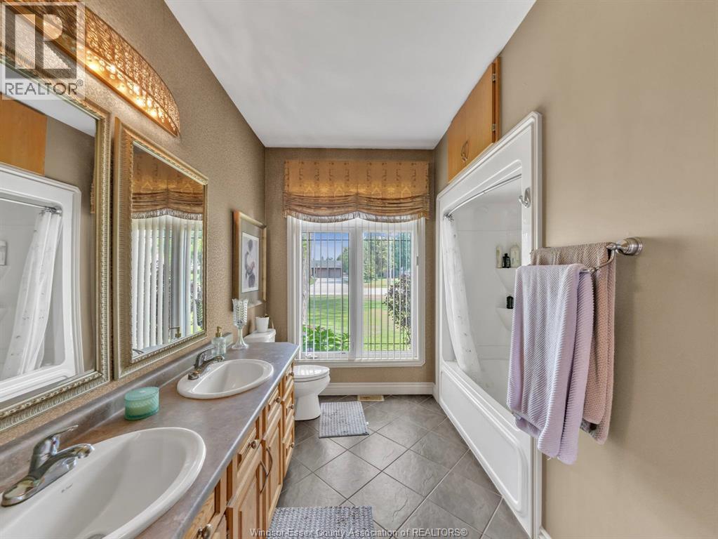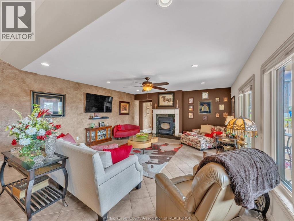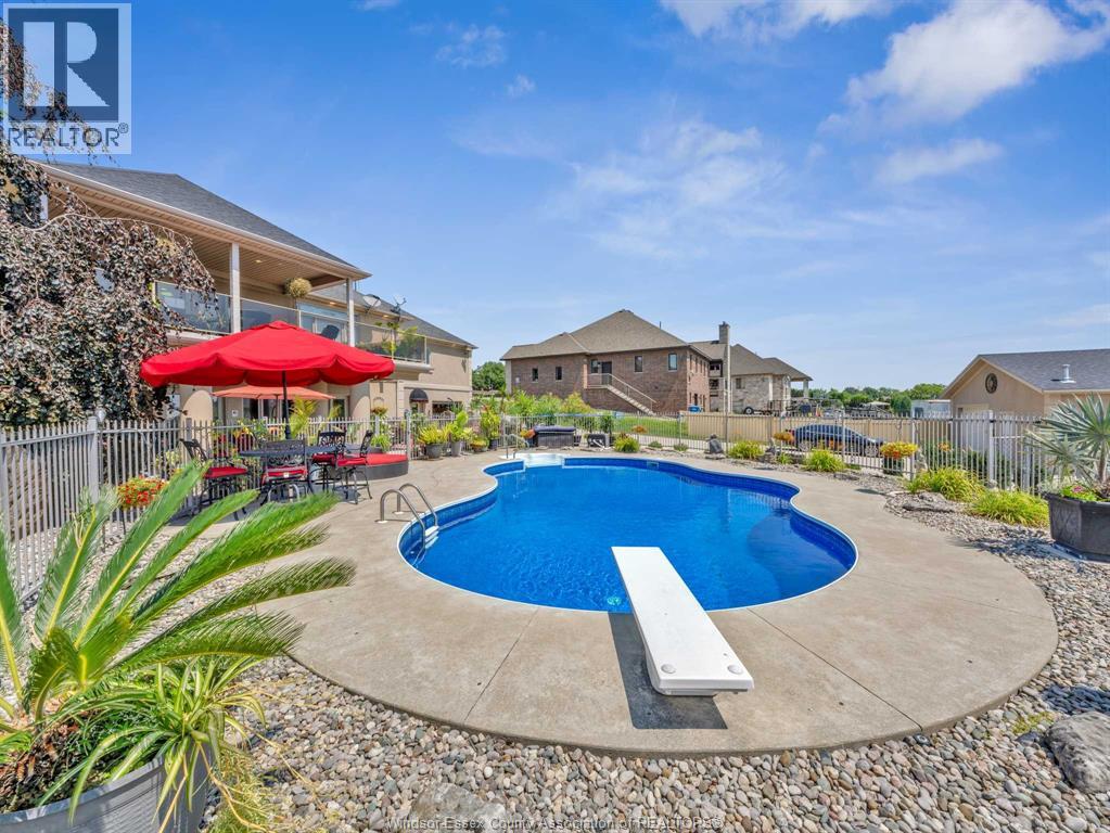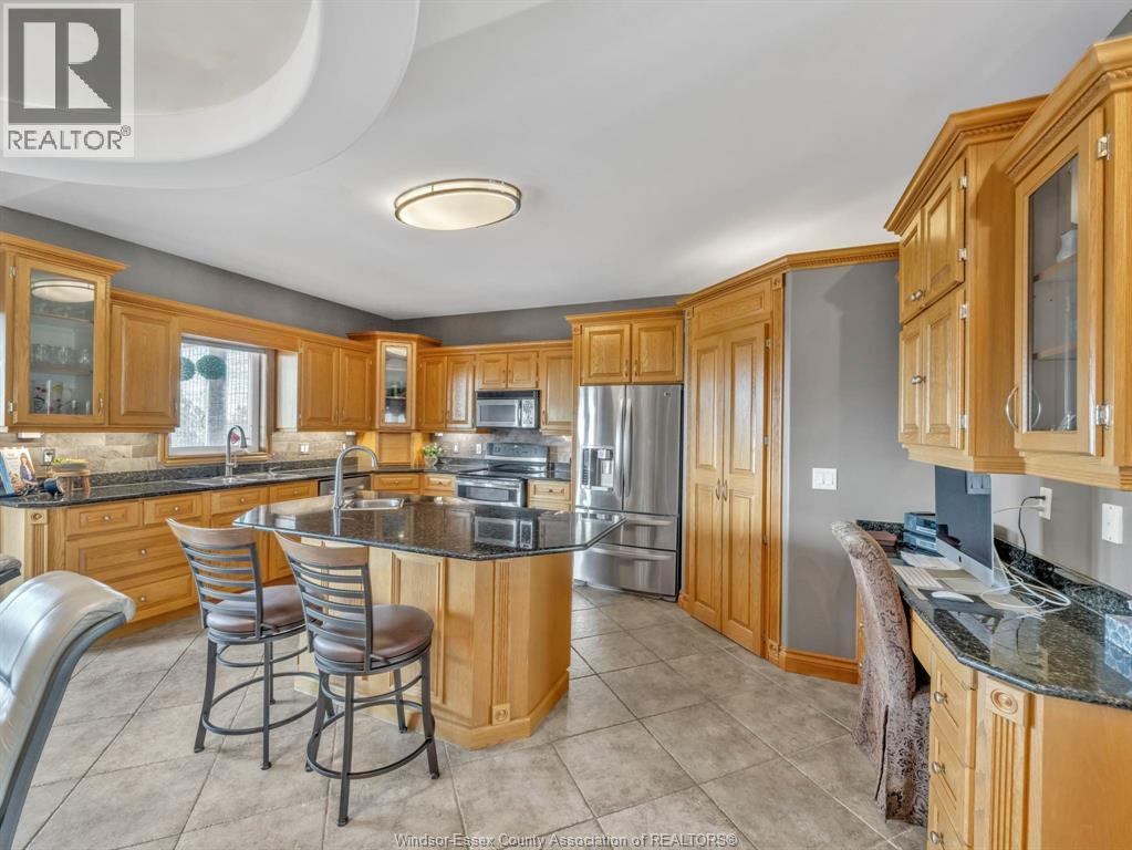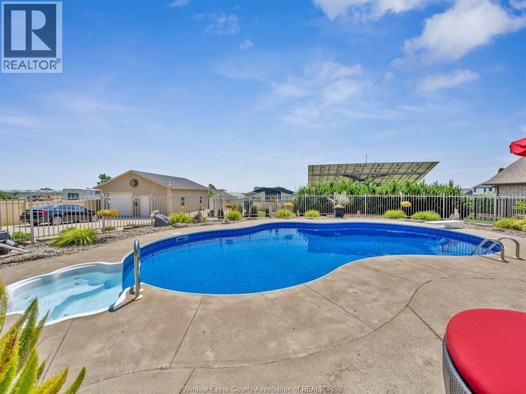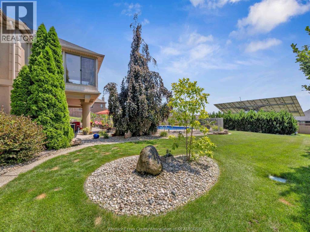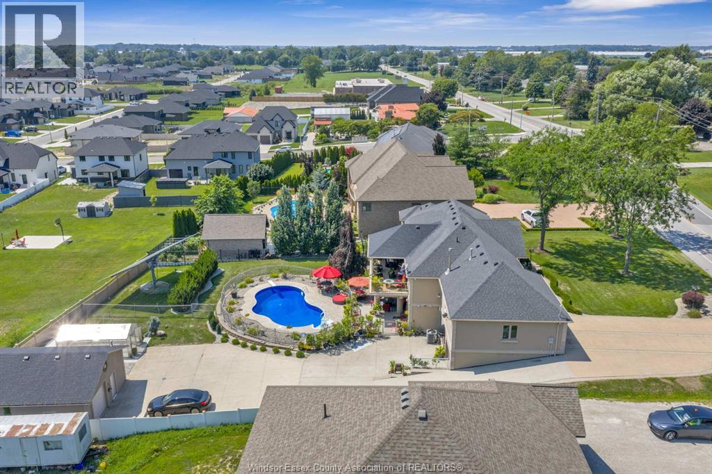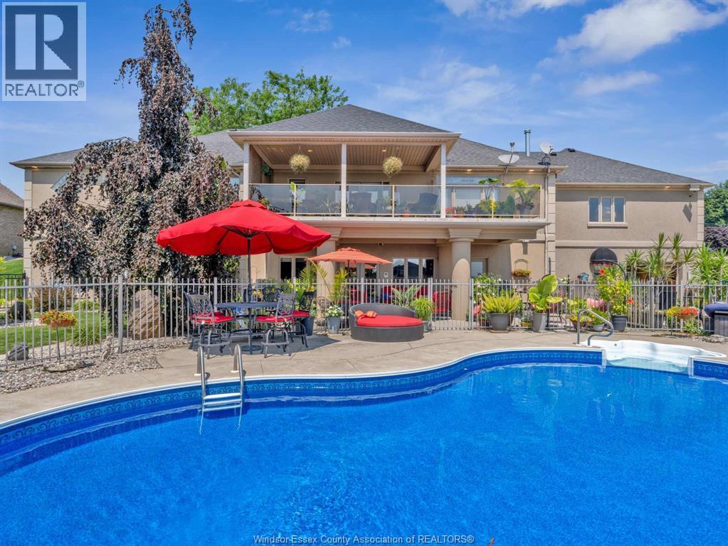 Two-Level Luxury Estate with Inground Pool, Lush Gardens, Shop, Greenhouse & Income Potential. A rare opportunity: two fully independent living spaces in one exquisite home—each with its own kitchen, living areas, bedrooms, & baths. This 5-bed, 4-bath estate features a gourmet kitchen w/ custom granite, cabinetry, walk-in pantry & custom floors. The main level offers a gas fireplace, main floor laundry, walkout to partially covered balcony, refined finishes & a serene primary suite w/dual walk-ins & spa-like ensuite. The lower level includes 2 bedrooms, a wood-burning fireplace & walkout to a resort-style yard. Enjoy a heated saltwater pool, rock fountain & irrigated gardens. Solar panels generate approx. $700–$750/month. A 25'×35' heated shop w/ water/power, utility-serviced greenhouse & two garages (2.5-car up, 1-car down) complete the offering. Uncompromising detail throughout. Just minutes from the boutique shops and charming eateries of downtown Kingsville or Leamington. Enjoy nearby fresh produce stands, explore Colasanti’s Tropical Gardens, and sip your way through Mastronardi Estate Winery and Aleksander Estate Winery—all just around the corner. This isn’t just a home—it’s a lifestyle. Nearly 5,000 total sq ft. Ask about features and updates. (id:64974)