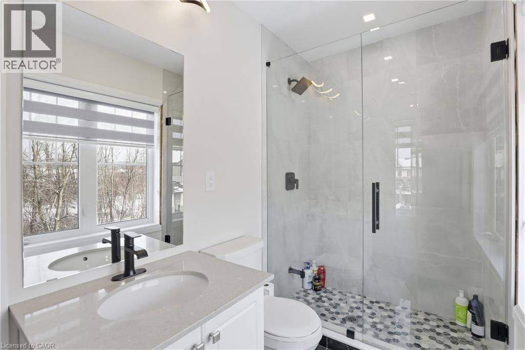 Welcome to this stunning end-unit freehold townhouse located on the highly desirable Stoney Creek Mountain, just steps from Heritage Green. Offering 1,677 sq ft of beautifully finished living space, this 3-bedroom, 3-bathroom home delivers the feel of a detached home with the convenience of townhouse living. Thoughtfully designed and finished to the nines, this home features quality upgrades throughout, including a brand-new walk-in shower and modern, stylish finishes that make the space feel move-in ready from day one. The end-unit layout provides added privacy and natural light, enhancing the overall sense of space and comfort. Located in a new, family-friendly development in Stoney Creek, this home is perfect for buyers looking for a true freehold townhouse experience — no condo fees, functional layout, and a neighbourhood built for long-term living. Close to parks, schools, shopping, and quick highway access, this is an ideal opportunity for families, professionals, or downsizers alike. A turnkey home in a prime Stoney Creek location — this one checks all the boxes. (id:64974)