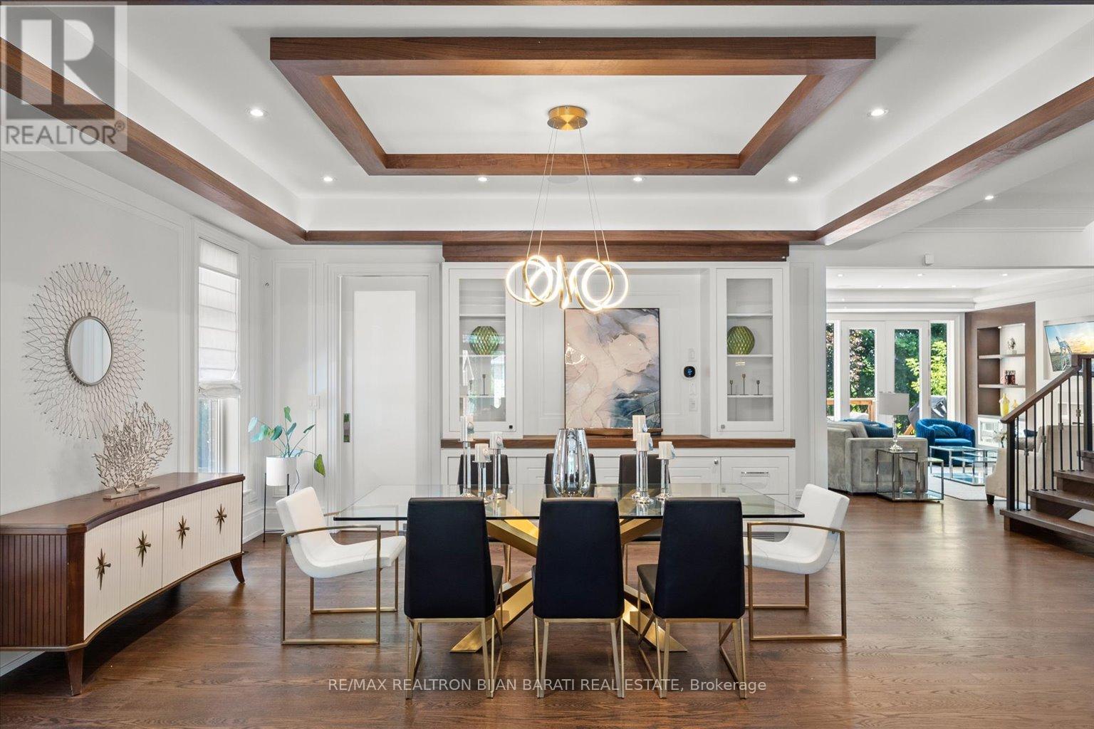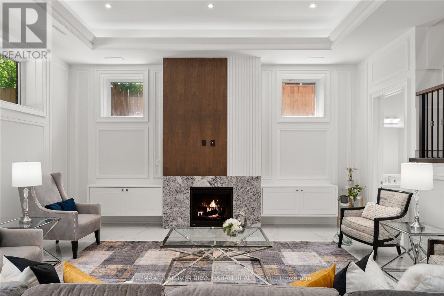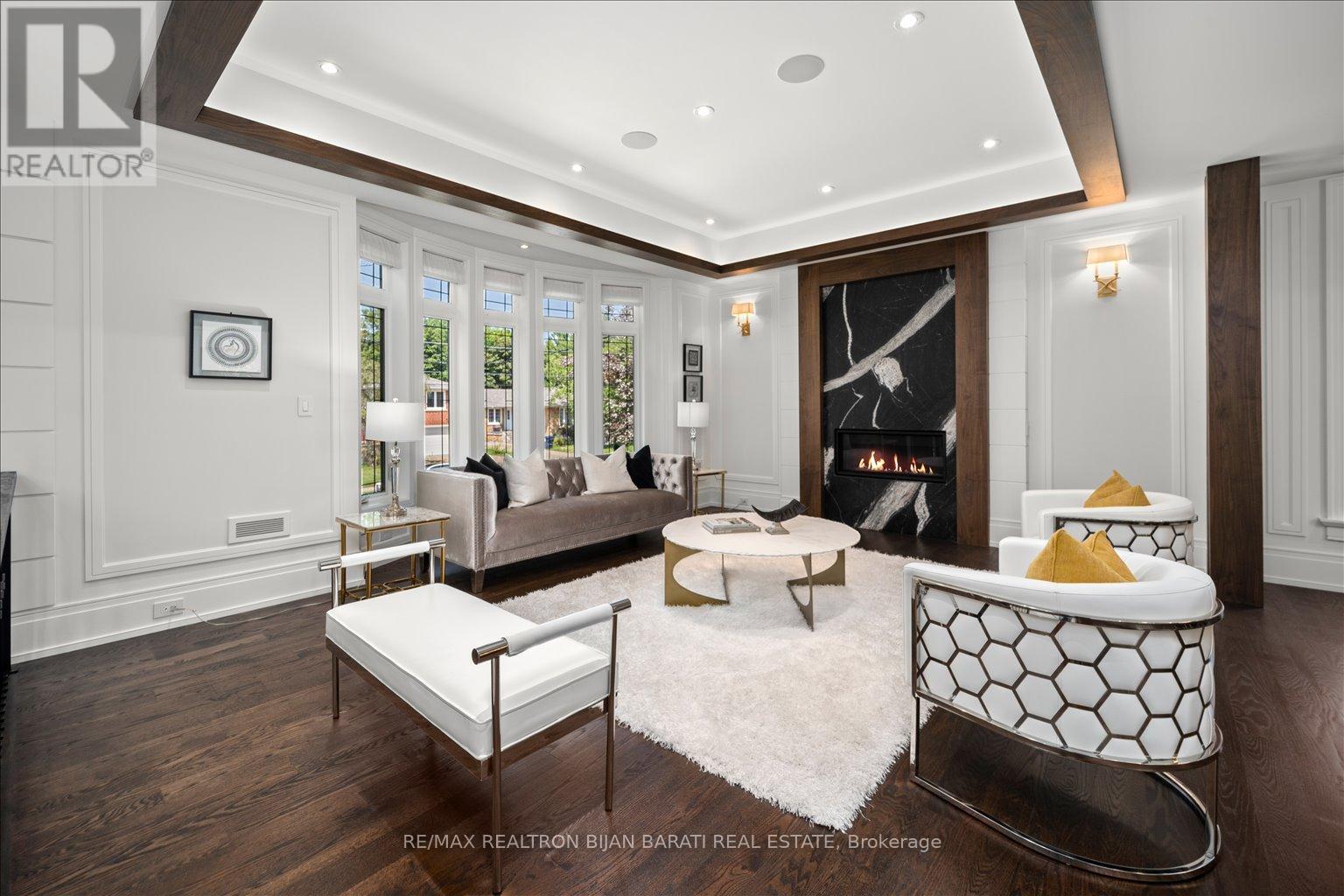 Masterfully Built In 2021 With Extremely Detailed Design On A Deep Pool Sized Lot, Backing Onto The Quiet Part of Caswell Park! Impeccable Finishings and Unparalleled Features: Large Size Principal Rooms, Walnut Accent in Walls and Ceilings, Marble Slabs in Foyer Entrance, Wide Oak Hardwood and Porcelain Flooring, Coffered/Dropped Ceiling & Ropelights with Soaring Cling Height > Library/Foyer:14', Basement Rec Rm:12', Main & 2nd Flr:10' !! Contemporary Crown Moulding, Full Panelled Wall In Library, Foyer, Hallways, Living & Dining Room, and Basement Recreation Room. High-End Millwork:Built-In Wall Units, Cabinetry, Closets & Custom Headboard In 4Bedrooms. Gas Fireplaces & Natural Stone Mantels, Washlet Toilets(Toto) for All Washrooms.Gourmet Kitchen Includes State-Of-The Art Wolf&Sub-Zero Appliances, Cabinets&Granite C/Top.Large Master Bedroom with Fireplace, Boudoir W/I Closet & 7-Pc Heated Floor Ensuite W/Steam Sauna! Open Rising Staircase With Night Lights & Skylight Above. Spacious Family Room W/O to Deck & Patio & Fully Fenced Lovely Backyard with 3Gates! Pre-Cast Facade with Bricks in Back and Sides. Professional Finished Walk-Out Heated Floor Basement Includes Huge Recreation Room with Wetbar, Gas Fireplace, 2nd Powder Rm, Bedroom, 4Pc Ensuite, and A Large Roughed In Second Laundry Includes All Cabinetry & Counter Top! (id:64974)