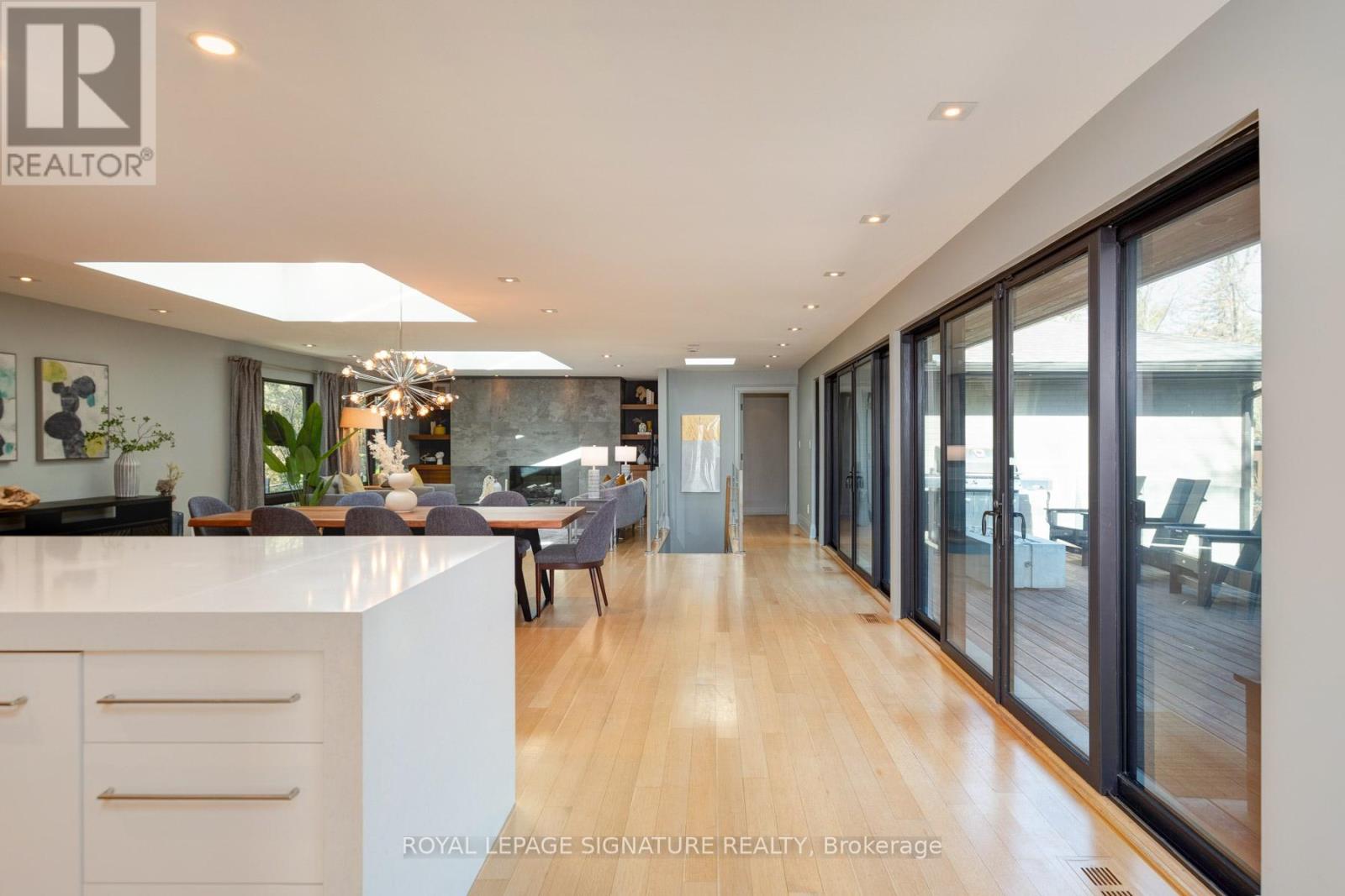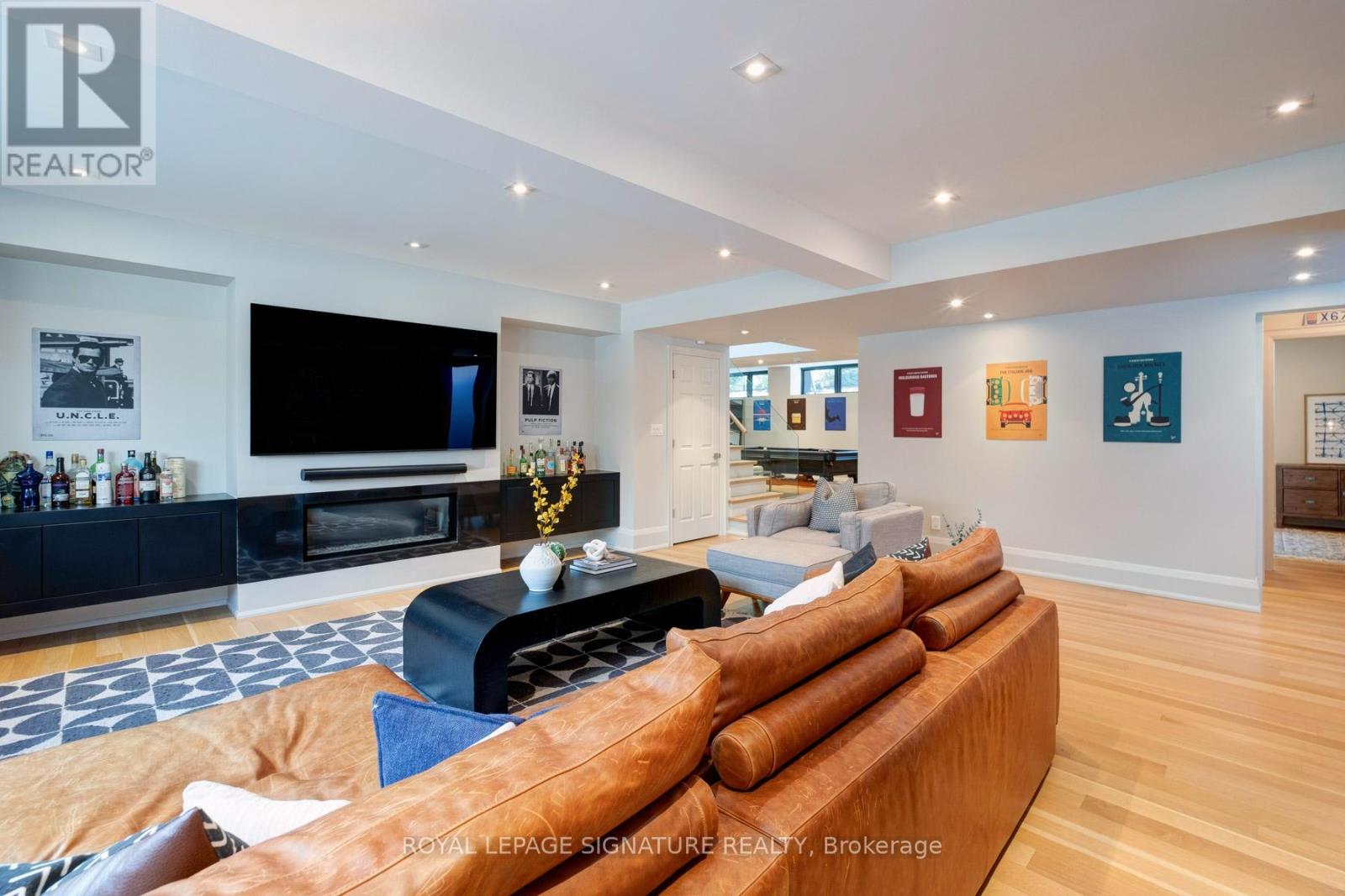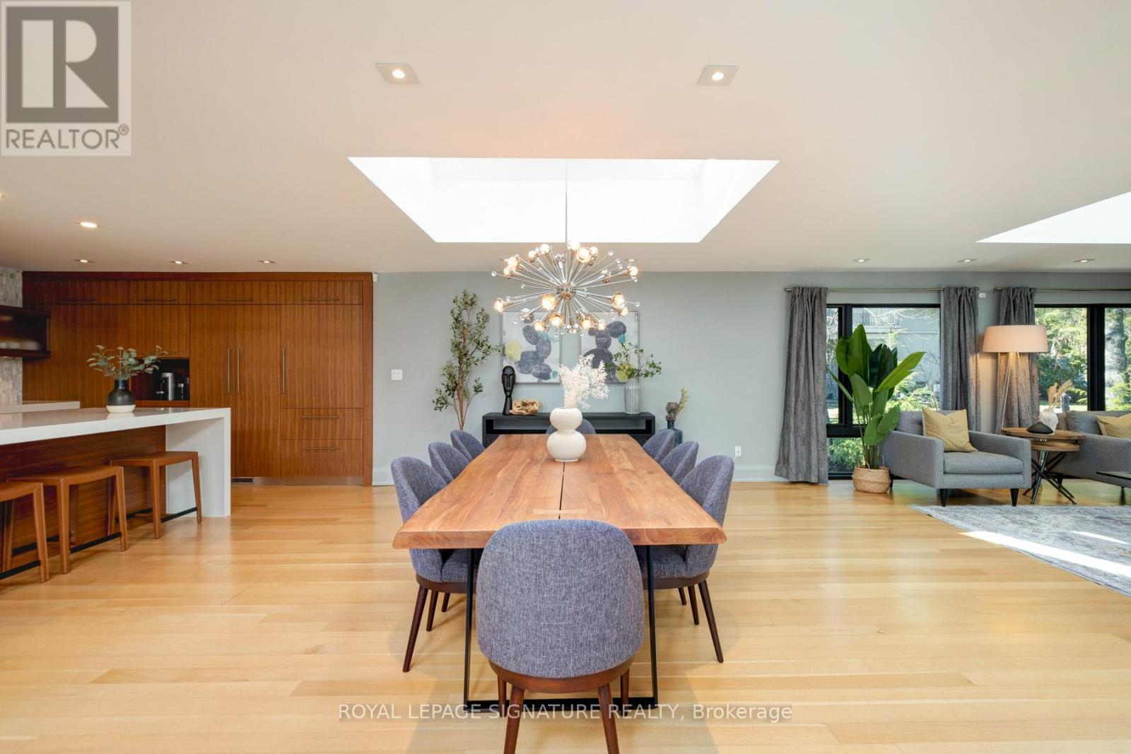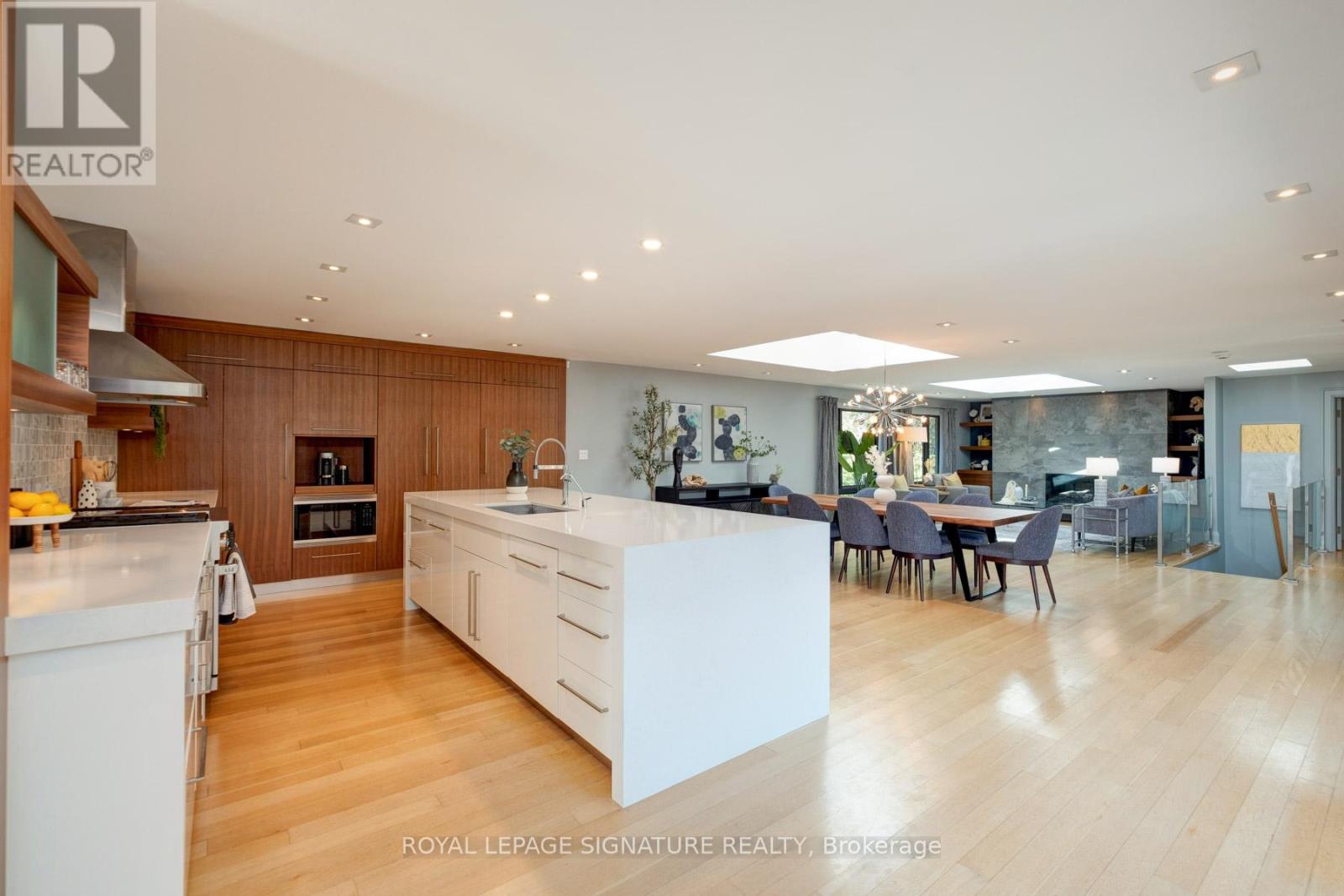 In this prestigious Oakville community, homes of this calibre rarely come to market. Welcome to 185 Morrison Rd - a meticulously maintained luxury residence on a picturesque lot, where every detail has been considered and nothing has been overlooked.At the heart of this modern home is a stunning walnut kitchen outfitted with top-of-the-line appliances including Wolf, Sub-Zero, and Miele. A dedicated pantry, appliance garage, integrated appliances, and abundant storage make this a kitchen that functions as beautifully as it looks. It flows directly into a large combined dining and living area anchored by a gas fireplace, a layout designed for effortless entertaining. Double sliding glass doors open fully onto the deck, creating true indoor-outdoor living through the spring and summer months.The main floor primary suite is a rare and desirable offering, ideal for those who appreciate single-level living or simply value separation from the rest of the home. Overlooking the pool and landscaped grounds, it features a generous walk-in closet and a spa-calibre bathroom with an oversized soaker tub, double vanity, separate shower, and water closet.Upstairs, two additional bedrooms each offer built-in closets and their own ensuite bathrooms thoughtfully appointed for children, guests, or anyone who values privacy and comfort equally.The lower level is expansive & fully realized: a home gym, pool table area with wood-burning fireplace, large recreation room with gas fireplace, full bathroom, and a dedicated office or guest suite. Space for every need.Step outside and the 101x149 foot lot delivers a fully landscaped backyard designed for resort-style living features a sparkling pool, pergola, outdoor dining area with a natural gas BBQ hookup, fire table, and a generous deck. It is a space that will be used and loved in every season.Top-ranked school district. Walking distance to Lake Ontario. A truly exceptional home in one of Oakville's most prestigious neighbourhoods. (id:64974)