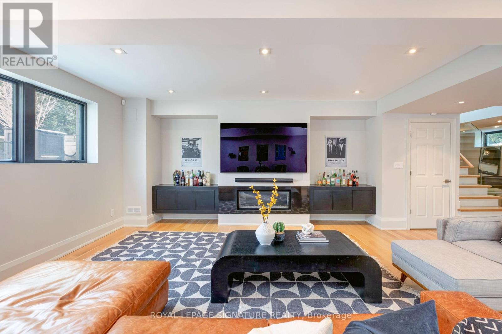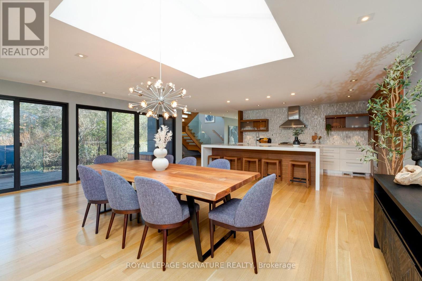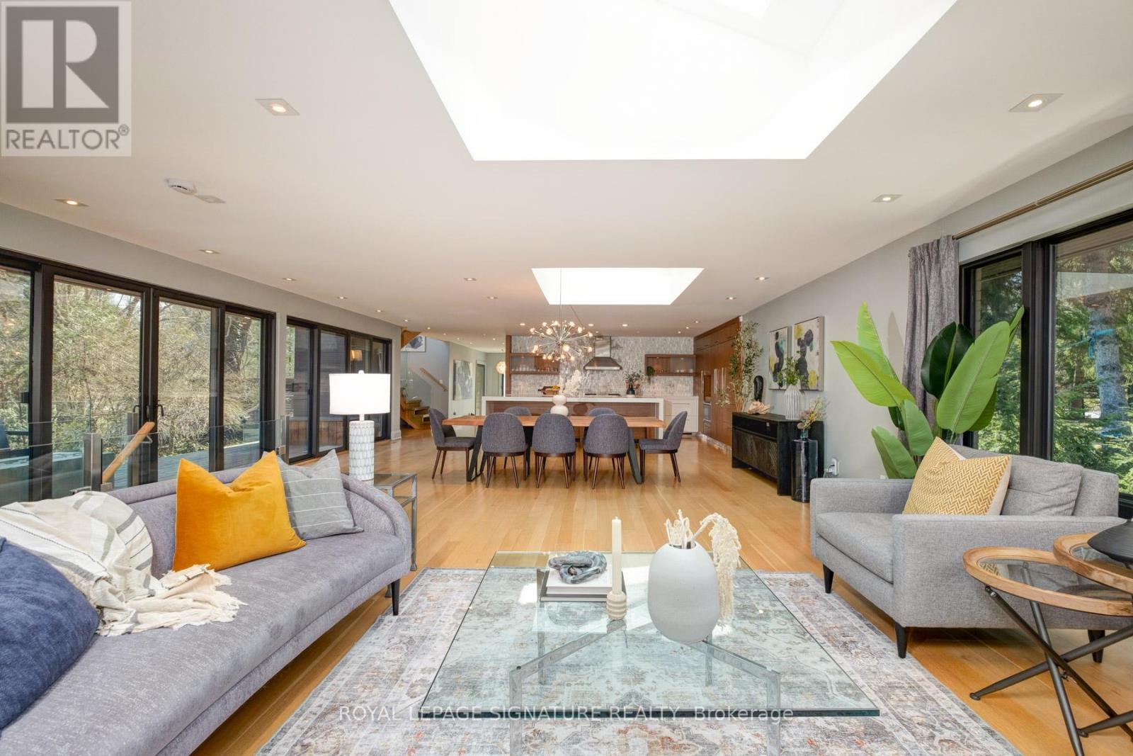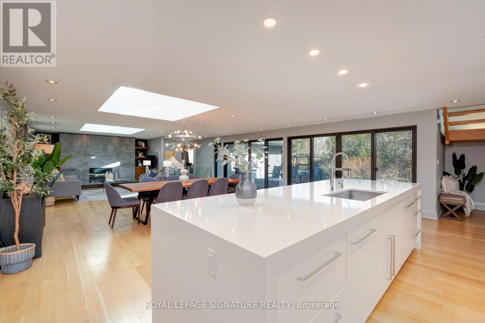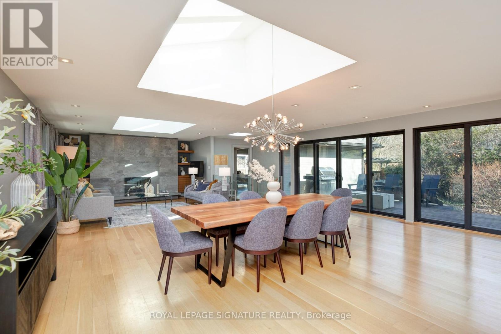In this prestigious Oakville community, homes of this calibre rarely come to market. Welcome to 185 Morrison Rd - a meticulously maintained luxury residence on a picturesque lot, where every detail has been considered and nothing has been overlooked.At the heart of this modern home is a stunning walnut kitchen outfitted with top-of-the-line appliances including Wolf, Sub-Zero, and Miele. A dedicated pantry, appliance garage, integrated appliances, and abundant storage make this a kitchen that functions as beautifully as it looks. It flows directly into a large combined dining and living area anchored by a gas fireplace, a layout designed for effortless entertaining. Double sliding glass doors open fully onto the deck, creating true indoor-outdoor living through the spring and summer months.The main floor primary suite is a rare and desirable offering, ideal for those who appreciate single-level living or simply value separation from the rest of the home. Overlooking the pool and landscaped grounds, it features a generous walk-in closet and a spa-calibre bathroom with an oversized soaker tub, double vanity, separate shower, and water closet.Upstairs, two additional bedrooms each offer built-in closets and their own ensuite bathrooms thoughtfully appointed for children, guests, or anyone who values privacy and comfort equally.The lower level is expansive & fully realized: a home gym, pool table area with wood-burning fireplace, large recreation room with gas fireplace, full bathroom, and a dedicated office or guest suite. Space for every need.Step outside and the 101x149 foot lot delivers a fully landscaped backyard designed for resort-style living features a sparkling pool, pergola, outdoor dining area with a natural gas BBQ hookup, fire table, and a generous deck. It is a space that will be used and loved in every season.Top-ranked school district. Walking distance to Lake Ontario. A truly exceptional home in one of Oakville's most prestigious neighbourhoods. (id:64974)