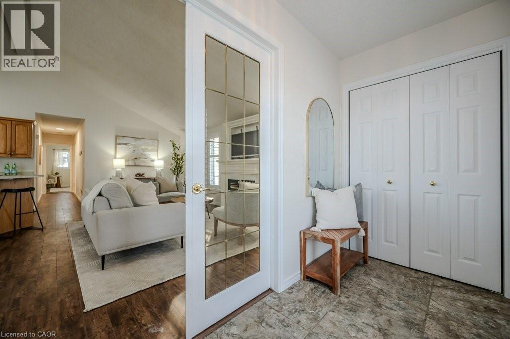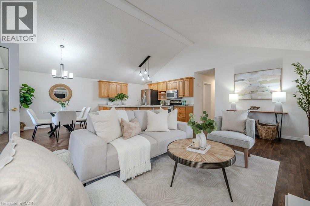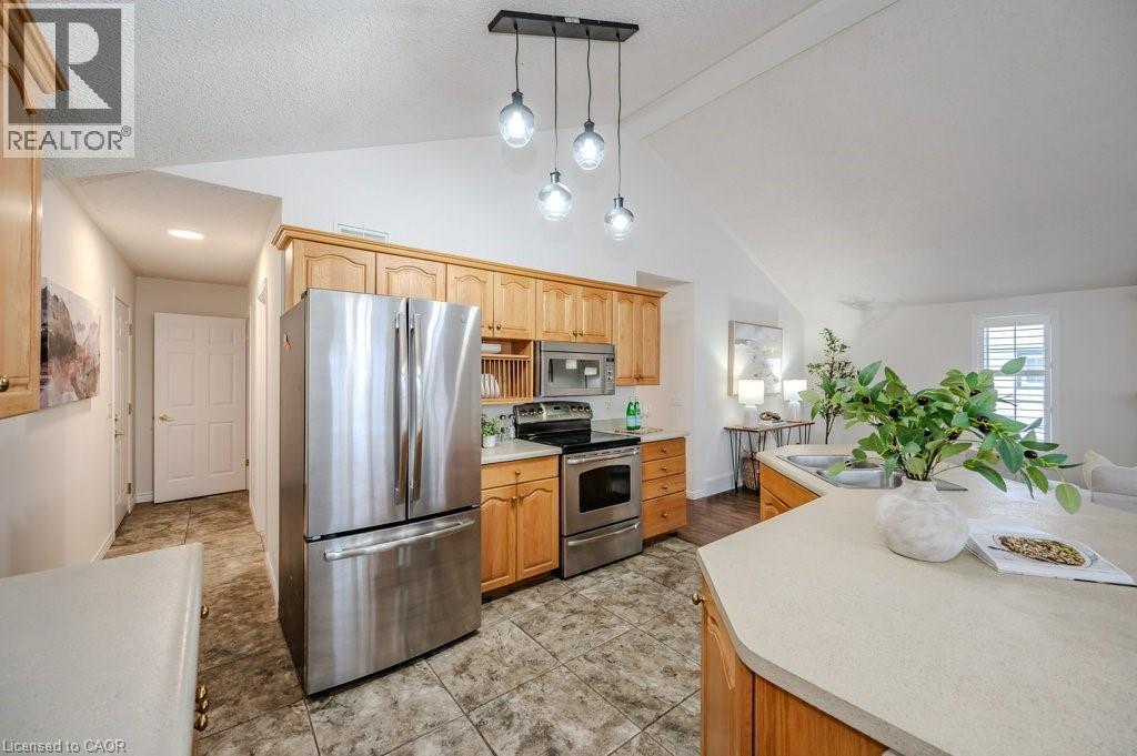 OPEN HOUSE SATURDAY FEB 7 - 2:00pm - 4:00pm! Charming DETACHED BUNGALOW with SOARING ceiling and TANDEM GARAGE in QUIET ADULT LIFESTYLE community of Martin Grove Village. Open concept layout with double vaulted ceiling and lots of natural light. Central kitchen with island and great counter space. You'll love the separate workspace/beverage area with additional cupboards and countertop. Spacious living room with gas fireplace and lovely windows with California shutters. Large primary bedroom with amazing walk-in closet. Second bedroom with double closet is spacious as well--this room could also be a great office or craft room. Large main floor bathroom has 2 sinks, large vanity, separate shower and amazing premier walk-in tub for your convenience! Main floor laundry with lots of storage and laundry sink. And there's more! Basement has a 3 pc bathroom, plus a finished bonus room which could be nice office, hobby room, workout area, etc. The rest of the basement provides a huge amount of storage space or so many possibilities for your personal touch. You'll love relaxing or visiting with family and friends on your private back deck--it spans almost the width of the house, has a gas line for barbeque, and lovely open space behind--no back neighbours! Do you have a motorcycle or extra stuff? You'll love the extra long garage--can fit 2 cars tandem, or one large vehicle and lots of extra storage space/workshop, recreational vehicle storage, etc. Fantastic location--quiet area, minutes from the St. Jacob's Market, Highway 85, Conestoga Mall and all that Waterloo has to offer! Low overall cost of living and live in style! Come see this hidden gem! (id:64974)