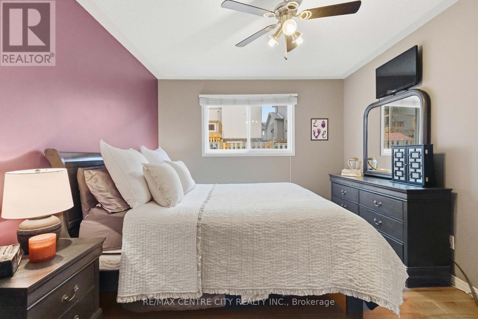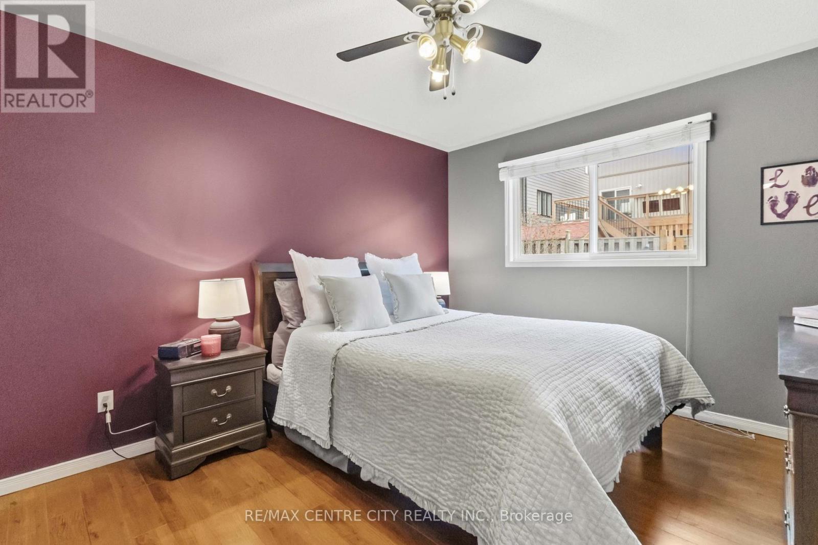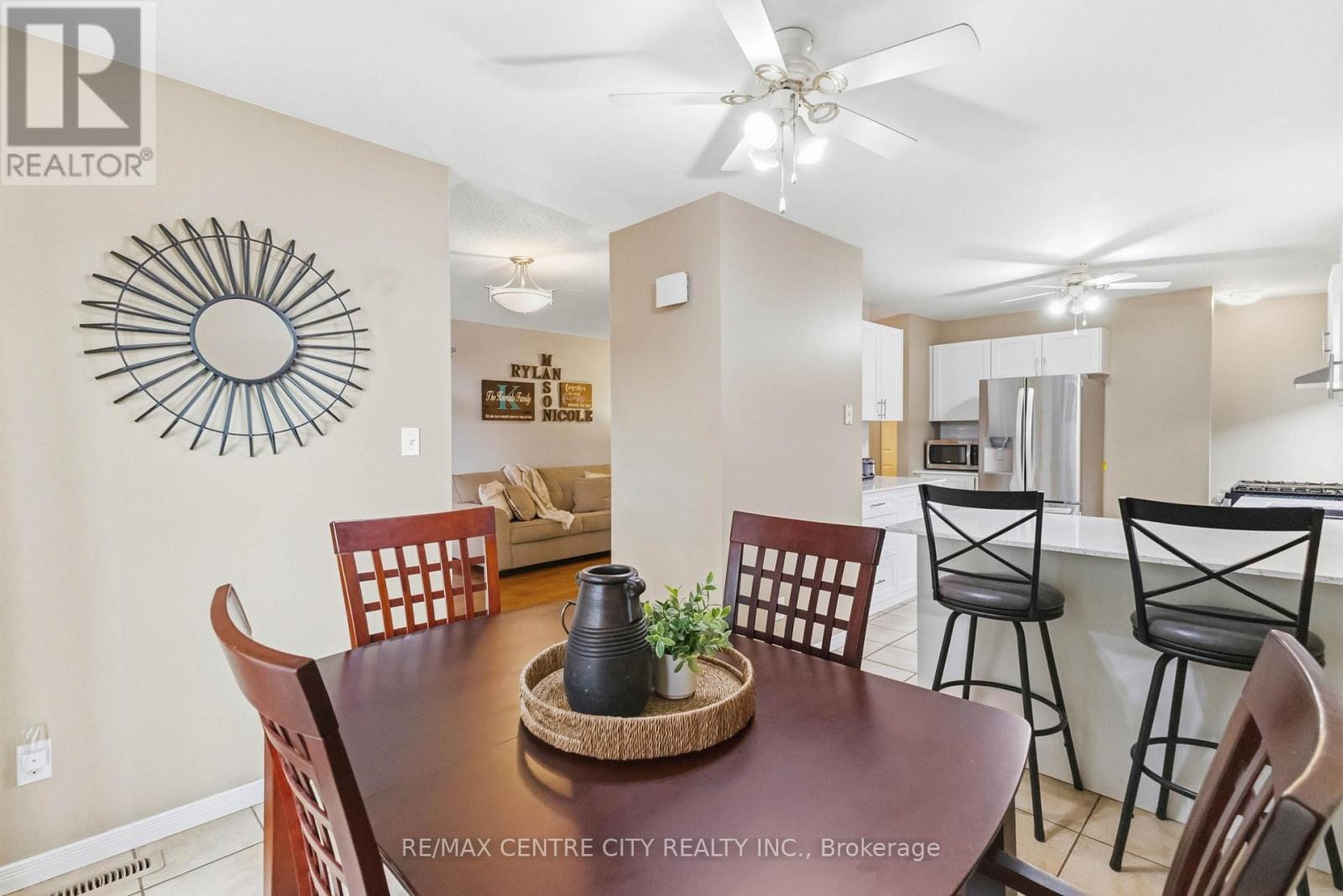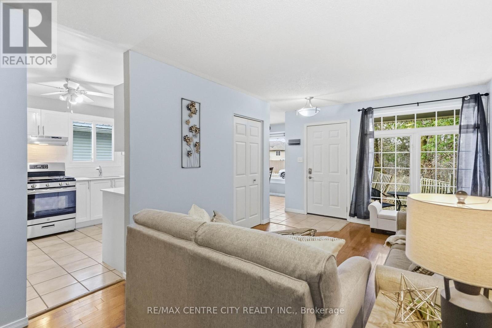 This is the one! Tucked at the end of a quiet street, this affordable bungalow is updated throughout, move-in ready, and waiting for YOU! Conveniently located in East London, appreciate the quick access to major arteries and the 401 for easy commuting. A cozy front porch offers a warm welcome, the perfect place to start the day with a coffee or unwind as you watch the sun set. The living room features an oversized window providing plenty of natural light as well as warm-toned hardwood flooring. A comfortable dining area ensures plenty of space for convenient family meals and gatherings with loved ones, adjacent to a tastefully updated kitchen (2023) including stylish new cabinetry, chic quartz counter tops, tiled subway backsplash and stainless steel appliances with gas stove. Continue down the hall to discover three bedrooms with convenient hard surface flooring as well as a full, modern bathroom. A fully finished lower level ensures plenty of room to sprawl, where you'll find a generous family room with updated vinyl plank flooring, gas fireplace, and multiple large windows to keep this space bright. An additional full bathroom includes a walk-in shower, and a bonus room ensures you have room for guests to crash, your home office, or hobbies to remain contained. Ample storage can be found alongside the utility and laundry room. Side access from the kitchen leads to a private patio and pergola, overlooking the landscaped and fully fenced yard, where there is plenty of room for outdoor fun, campfires, gardening and play. Other updates include: furnace/AC (2024) and roof shingles (2016). With nothing to do but unpack and enjoy, this charming home offers great value and easy living at an incredible price point! (id:64974)