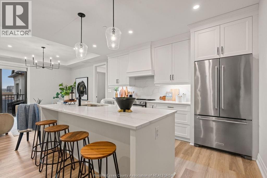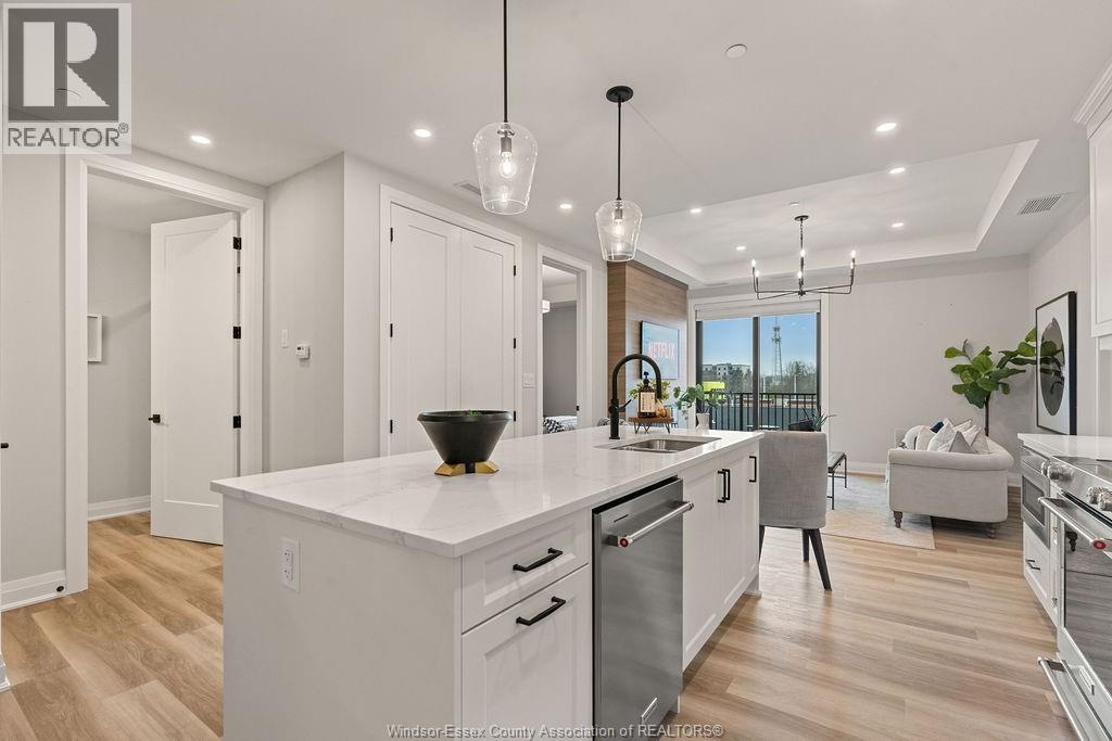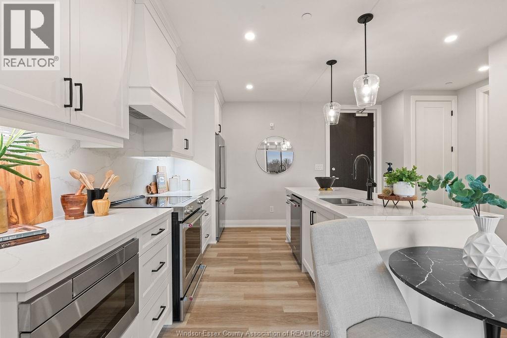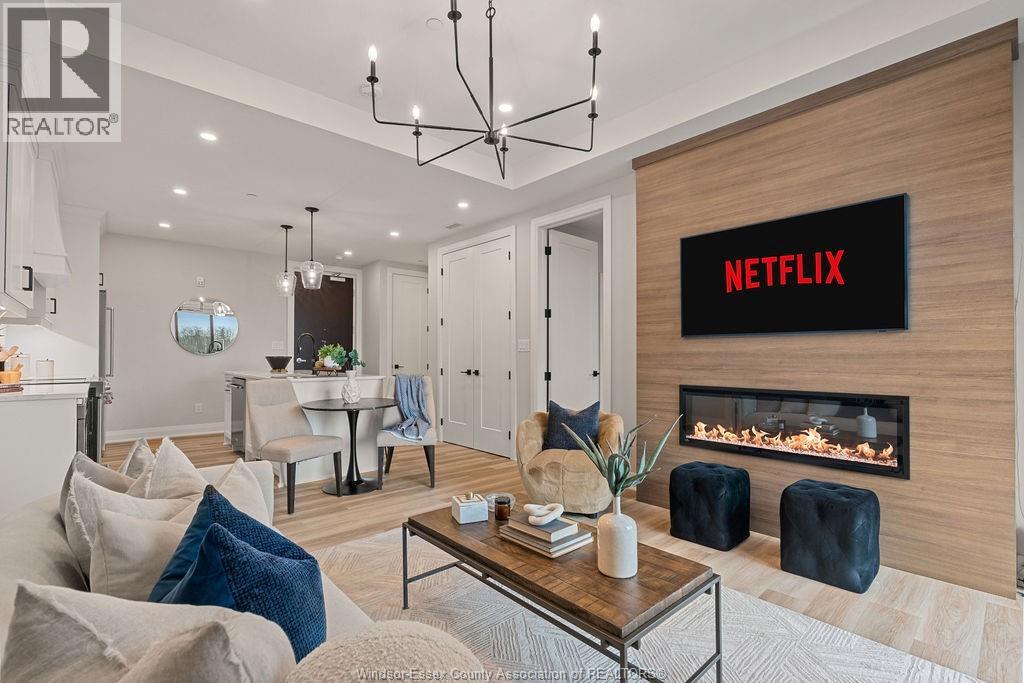 Experience effortless living in this top-floor condo, perfectly situated in sought-after LaSalle. Designed with downsizers and retirees in mind, this elegant 2-bedroom, 2-bathroom suite offers the ideal blend of comfort, style, and convenience. Quiet surroundings meet beautifully finished interiors. The open-concept layout features a gourmet kitchen with an island, stainless steel KitchenAid appliances, and stone countertops—perfect for casual meals or entertaining family and friends. The inviting great room showcases a tray ceiling and a sleek linear fireplace, creating a warm and welcoming space to relax. The spacious primary suite offers a true escape, complete with an ensuite and a walk-in closet with custom shelving. Thoughtful extras include in-suite laundry with added storage, a walk-in pantry, an assigned parking space, a storage locker. Step outside and enjoy being just moments from shopping, dining, and everyday amenities—everything you need is close at hand, making day-to-day living simple and stress-free. Move-in ready with nothing to do but enjoy. (id:64974)