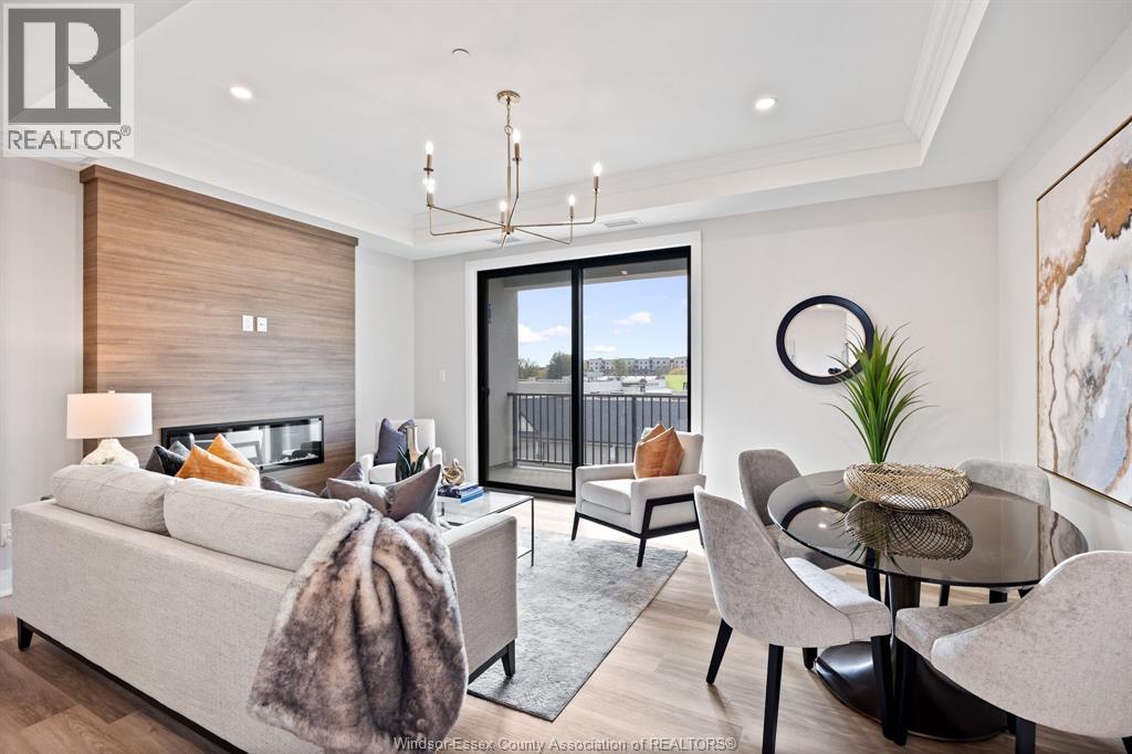 BEST VALUE IN LASALLE!! LIMITED INVENTORY! UPSCALE BOUTIQUE CONDOMINIUM LOCATED IN THE HEART OF LASALLE’S TOWN CENTRE. RENOWNED TIMBERLAND HOMES, WELL KNOWN FOR QUALITY AND CRAFTSMANSHIP, HAS PUT HIS STAMP ON THIS PROJECT. LOADED WITH ARCHITECTURAL DETAIL INSIDE AND OUT. THIS UNIT OFFERS 1 BEDROOMS, 1 BATH AND PROFESSIONALLY APPOINTED FINISHES THROUGHOUT. GORGEOUS KITCHEN WITH LARGE SIT UP ISLAND, STAINLESS STEEL KITCHEN AID APPLIANCES INCLUDED & STONE COUNTERS. GREAT ROOM IS COMPLETE WITH TRAYED CEILING AND WOOD CLAD 50’ LINEAR FIREPLACE. PRIMARY SUITE HAS LARGE WALK IN CLOSET WIHT LAMINATE SHELVING. IN-SUITE LAUNDRY WITH STACKED WASHER & DRYER THAT ARE ALSO INCLUDED. THIS SUITE COMES WITH ONE ASSIGNED PARKING SPOT PLUS A STORAGE LOCKER. PRIVATE GARAGES ARE AVAILABLE. FIRST TIME HOME BUYERS SAVE UP TO $41,000. (id:64974)
