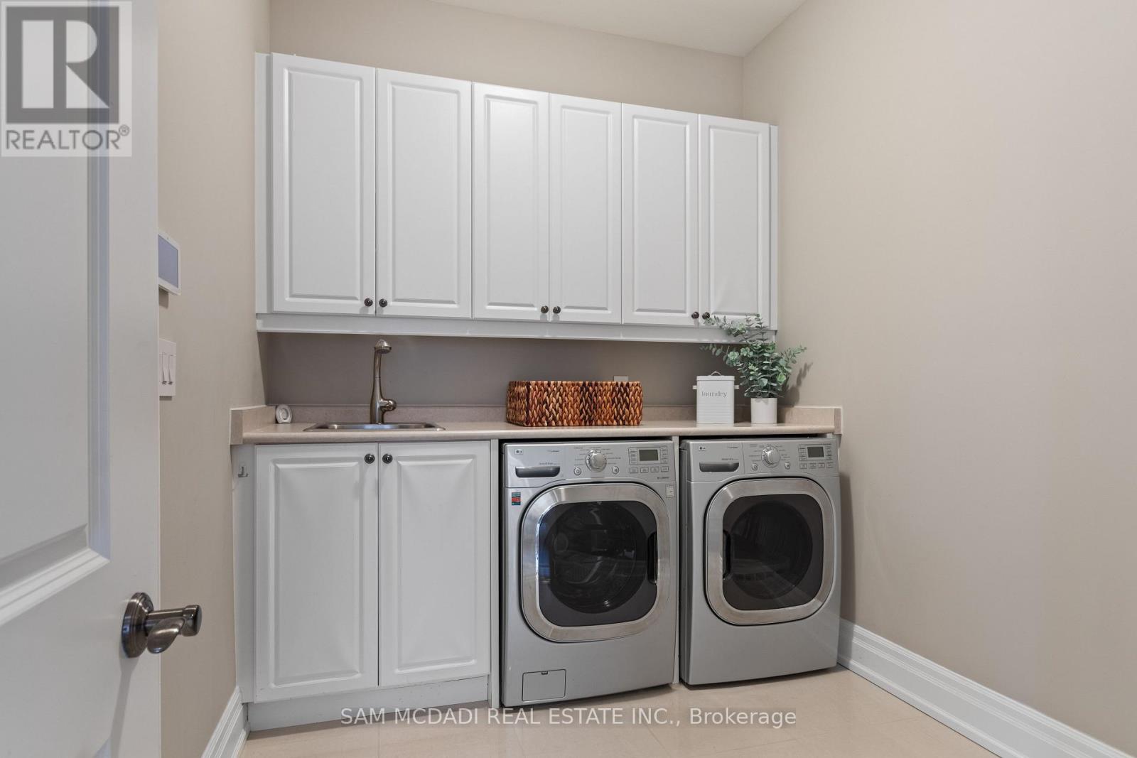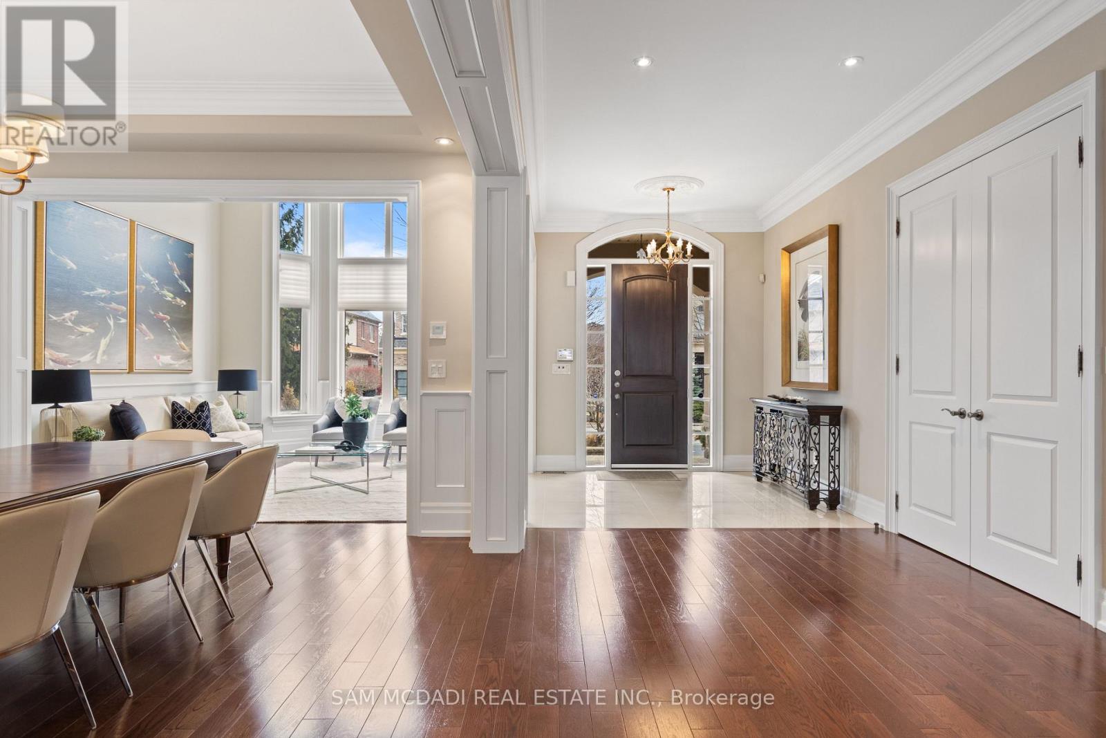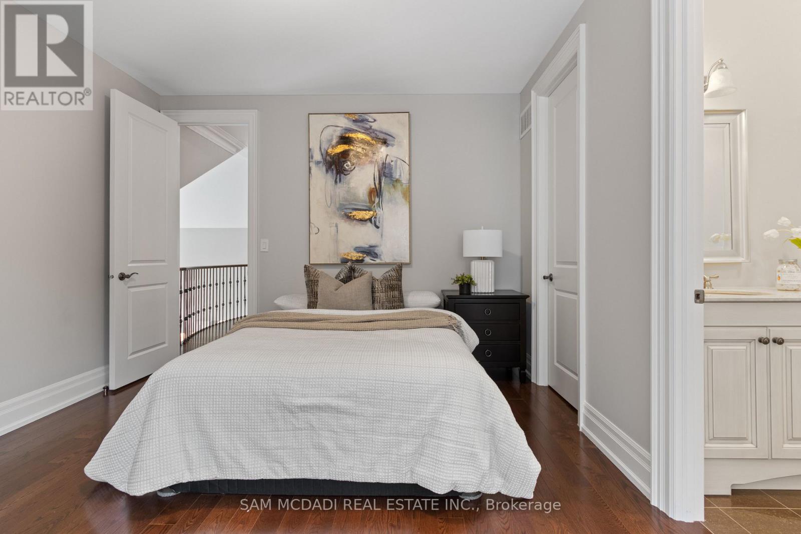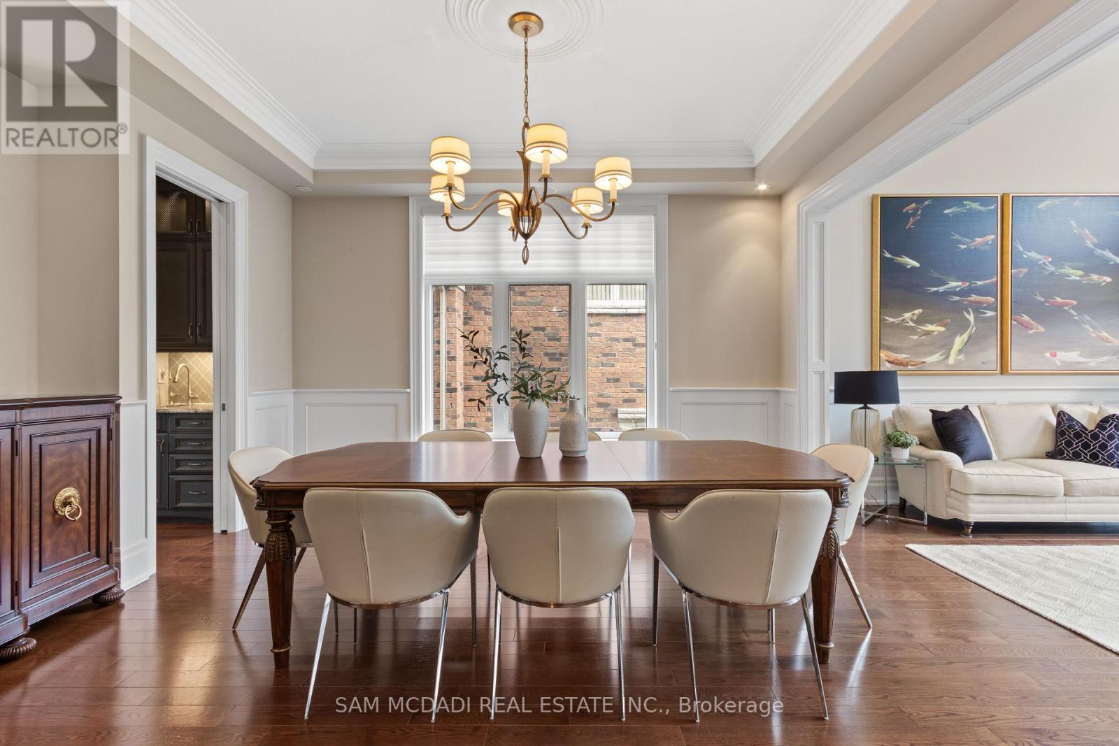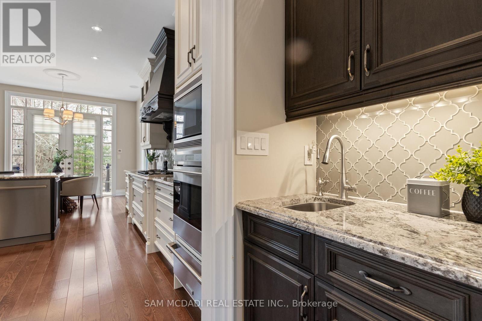 Welcome to this exceptional, executive residence on a quiet court in one of Mississauga's most sought-after enclaves. Backing onto a serene, private forest setting, this home offers the perfect blend of luxury, comfort, and timeless design ideal for discerning buyers seeking refined main-floor living. The moment you enter, you are greeted by a grand foyer with soaring 10-ft ceilings, elegant crown moulding, custom wainscoting and architectural detailing that carries throughout the home. The formal living and dining rooms impress with cathedral ceilings, designer lighting, and upscale finishes perfect for entertaining in style. At the heart of the home is a chef-inspired kitchen featuring premium appliances, custom cabinetry with illuminated uppers, a large granite peninsula and a seamless flow into the breakfast area and great room. The open-concept layout is enhanced by expansive windows showcasing tranquil views of the lush backyard and forest beyond. Designed with convenience and long-term comfort in mind, the main floor primary suite is a true retreat. Boasting a vaulted ceiling, spa-like ensuite with soaker tub and glass shower and a custom walk-in closet, this space offers privacy and ease of living rarely found in homes of this caliber. The upper level features a spacious loft area and generously sized bedrooms, including a private ensuite and a Jack & Jill bath ideal for family or guests. The professionally finished basement extends the living space with 9-ft ceilings, a guest bedroom with ensuite, a large recreation room with fireplace, a den, and a well-appointed kitchenette perfect for extended family or entertaining. Outdoors, enjoy a beautifully landscaped property complete with a two-tier deck, custom pergola and elegant stonework all backing onto nature for ultimate privacy. This is a rare offering combining luxury, functionality, and an ideal layout for those seeking the ease of main-floor living without compromising on space or elegance. (id:64974)
